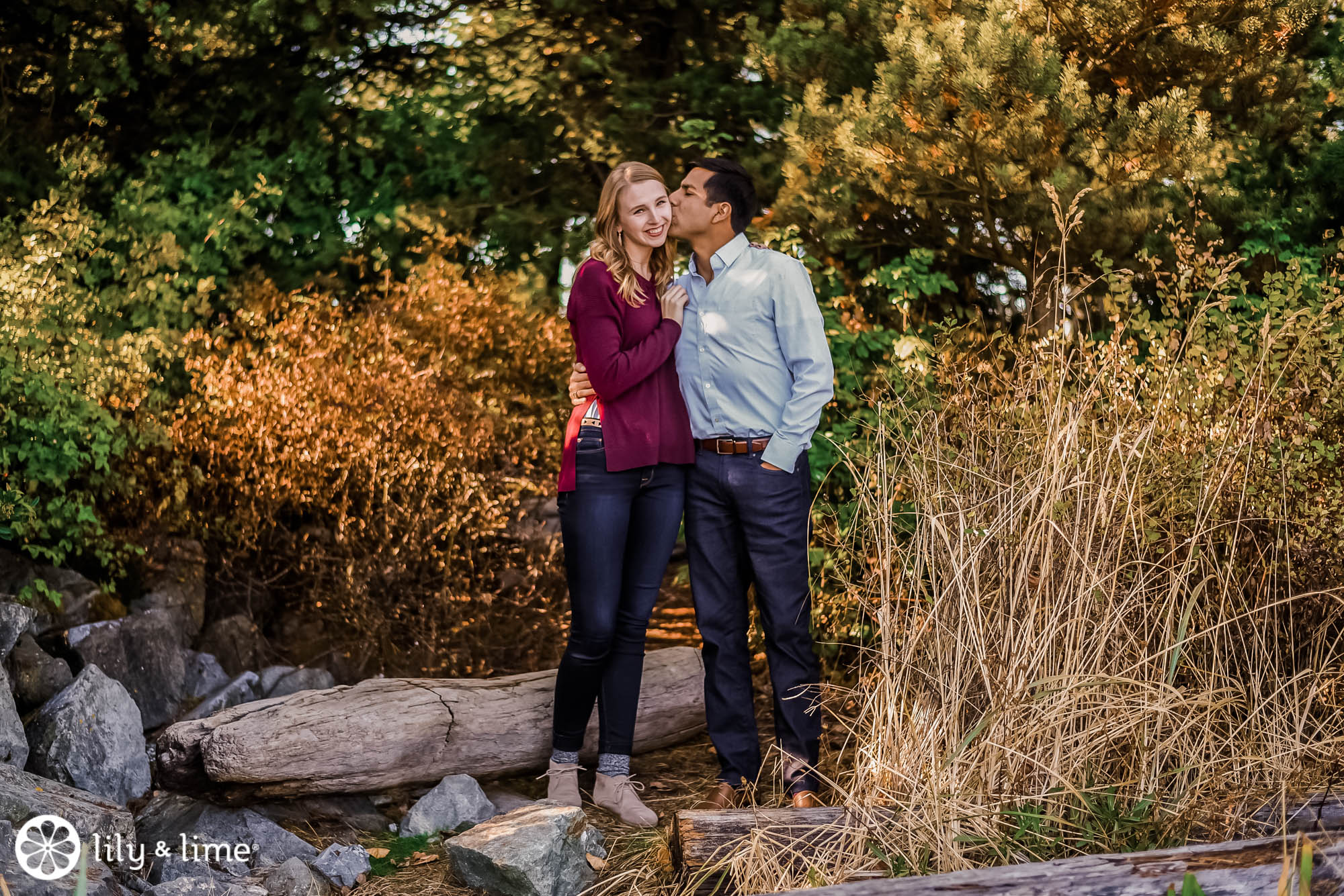 We love the way Abby threw a chunky plaid scarf on over her dress, and we love the costume changes this couple had. If you're looking for additional photo variety with your engagement photos, we recommend two fall outfits for a session -- one formal and one casual.