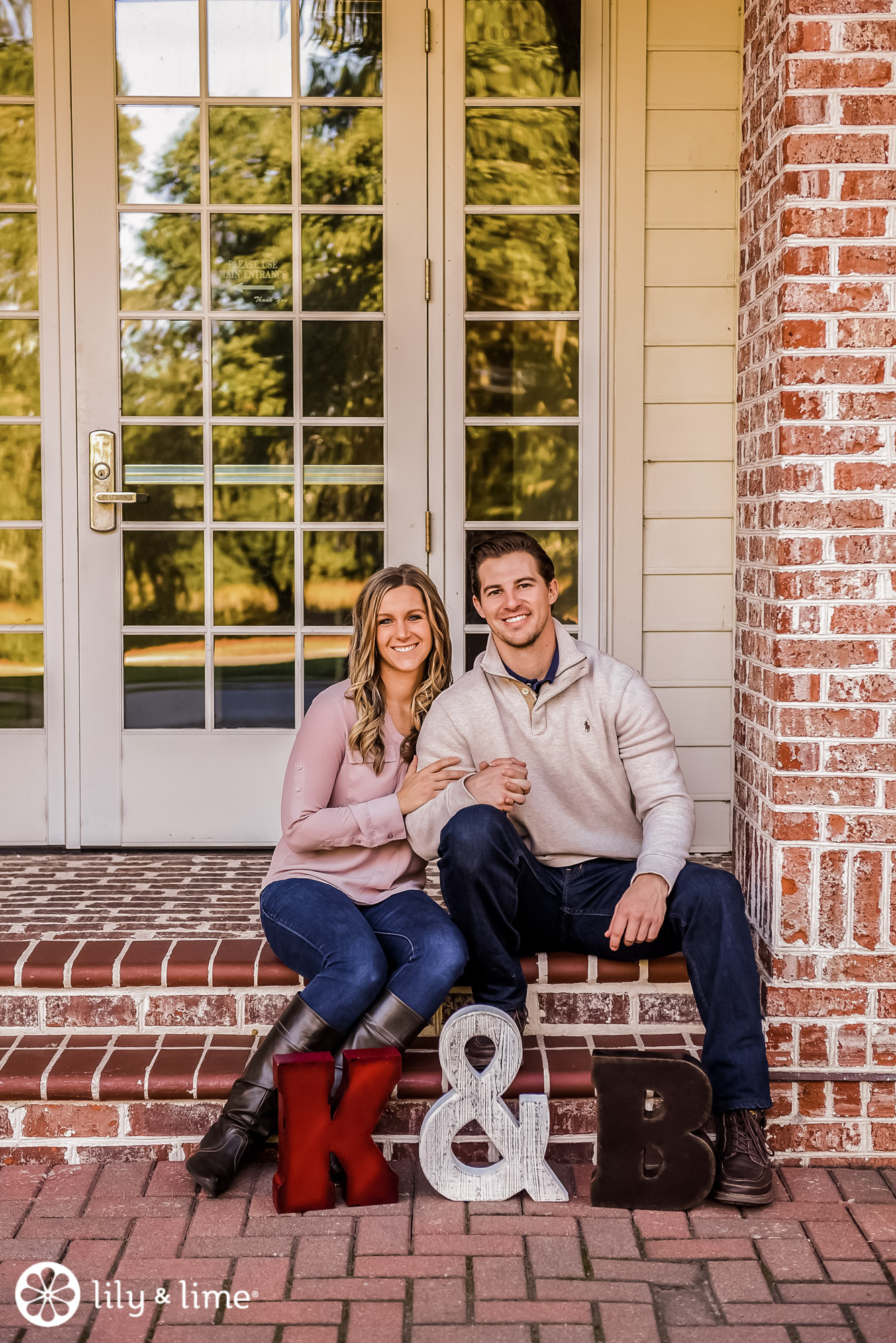 We love the Charleston engagement locations Kelsey and Brantley chose. They really captured a lot of Charleston charm. You can also follow their lead and use some engagement session props. Try some initial props with colors inspired by the season for a monogrammed touch!