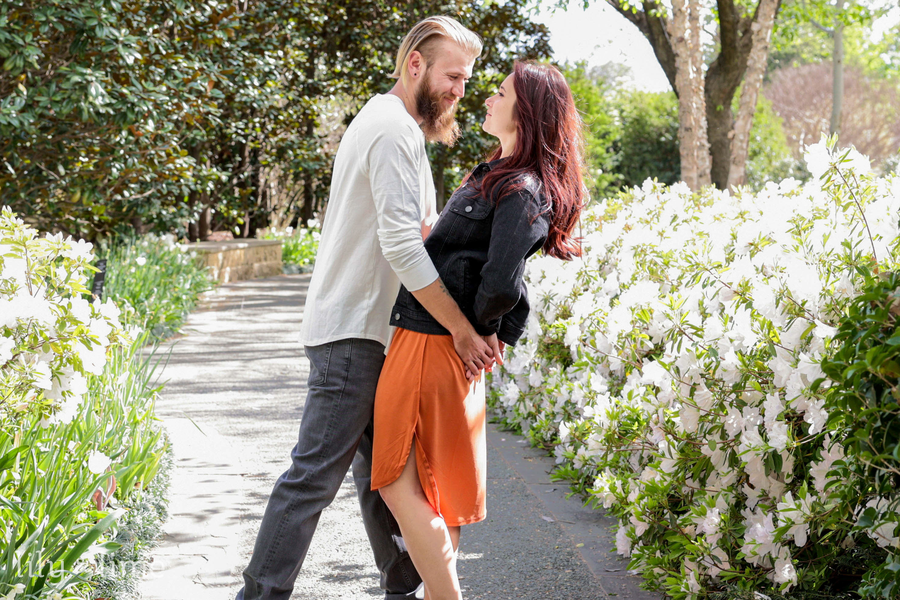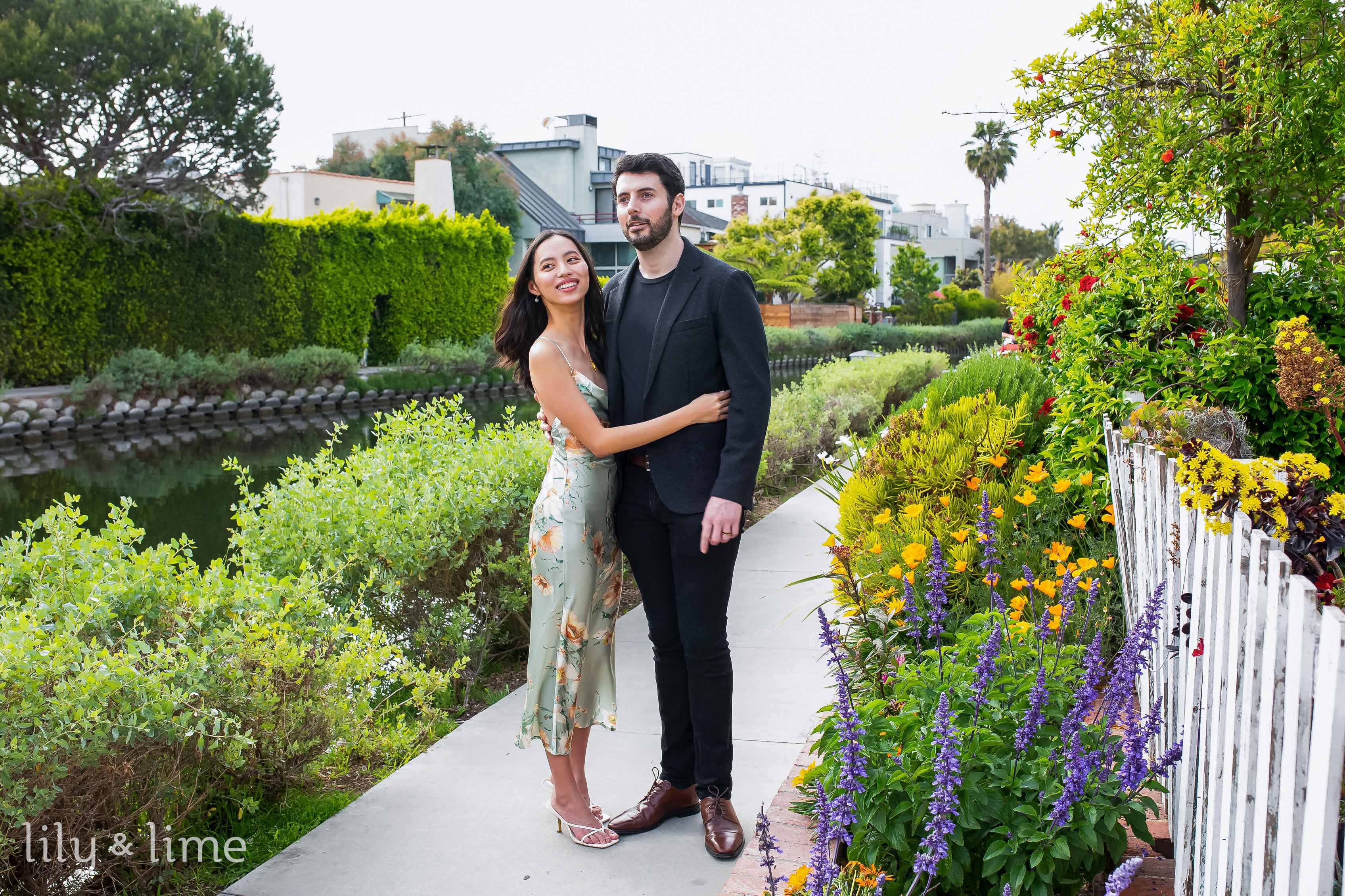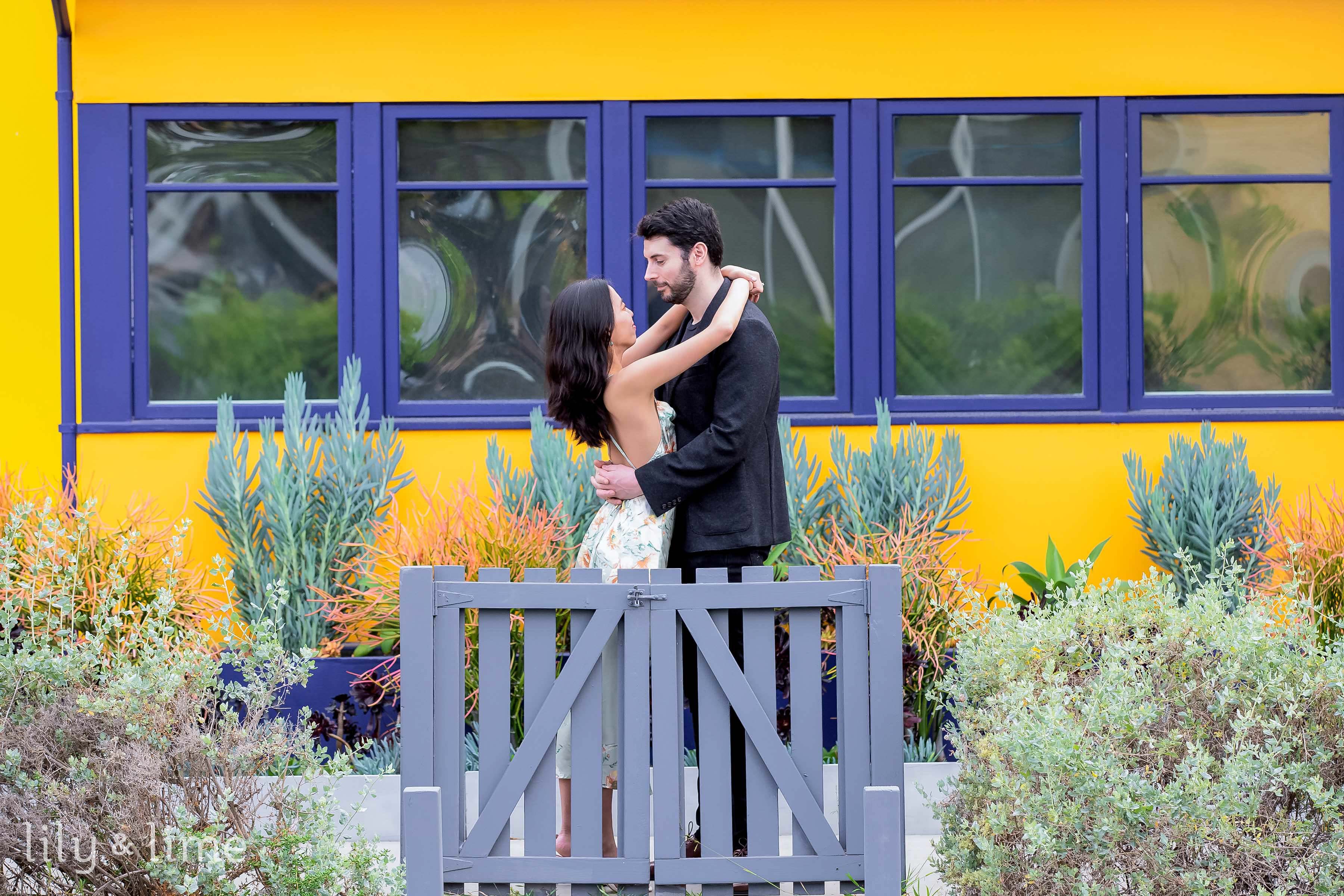 A city park proposal is another great idea for those who prefer to stay close to home! It is also perfect for a colorful engagement session if the park is located nearby multicolored graffiti works or murals. You can plan a romantic picnic or a stroll through a nearby park and propose in a scenic spot. You could also arrange for a surprise flash mob or hire a musician to serenade your partner for a more grand proposal idea. You can also plan a romantic visit to a nearby garden and propose among the beautiful flowers and greenery. This way you can arrange for a private garden tour or hire a professional couple photographer to capture the special moment. This idea is perfect for couples who love nature and want a peaceful and romantic setting for their proposal.