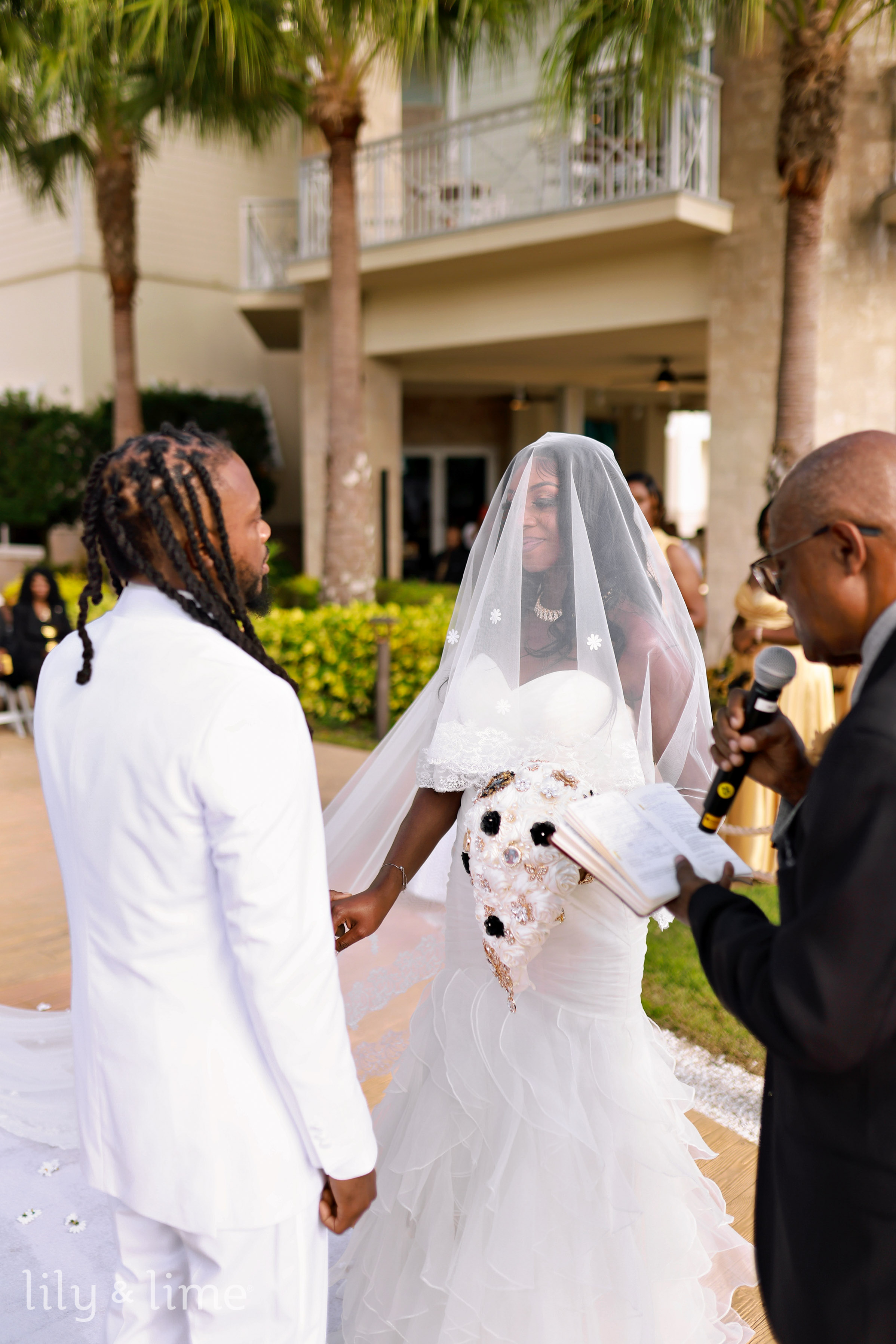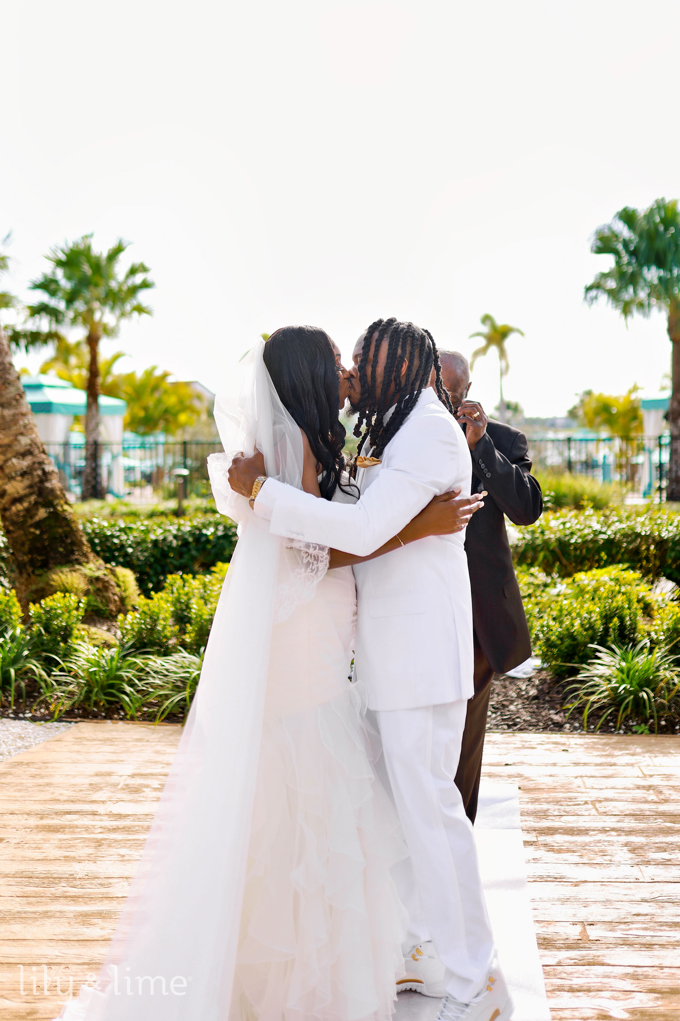 What made this venue even more special was its versatility. Whether it was the couple’s intimate first look by the lagoon, the heartfelt ceremony under the open sky, or the lively reception in the grand ballroom, Margaritaville provided the perfect setting for every part of their day. The resort’s vibrant yet serene atmosphere allowed Jacalyn and Tarell’s love to shine through in every photograph.