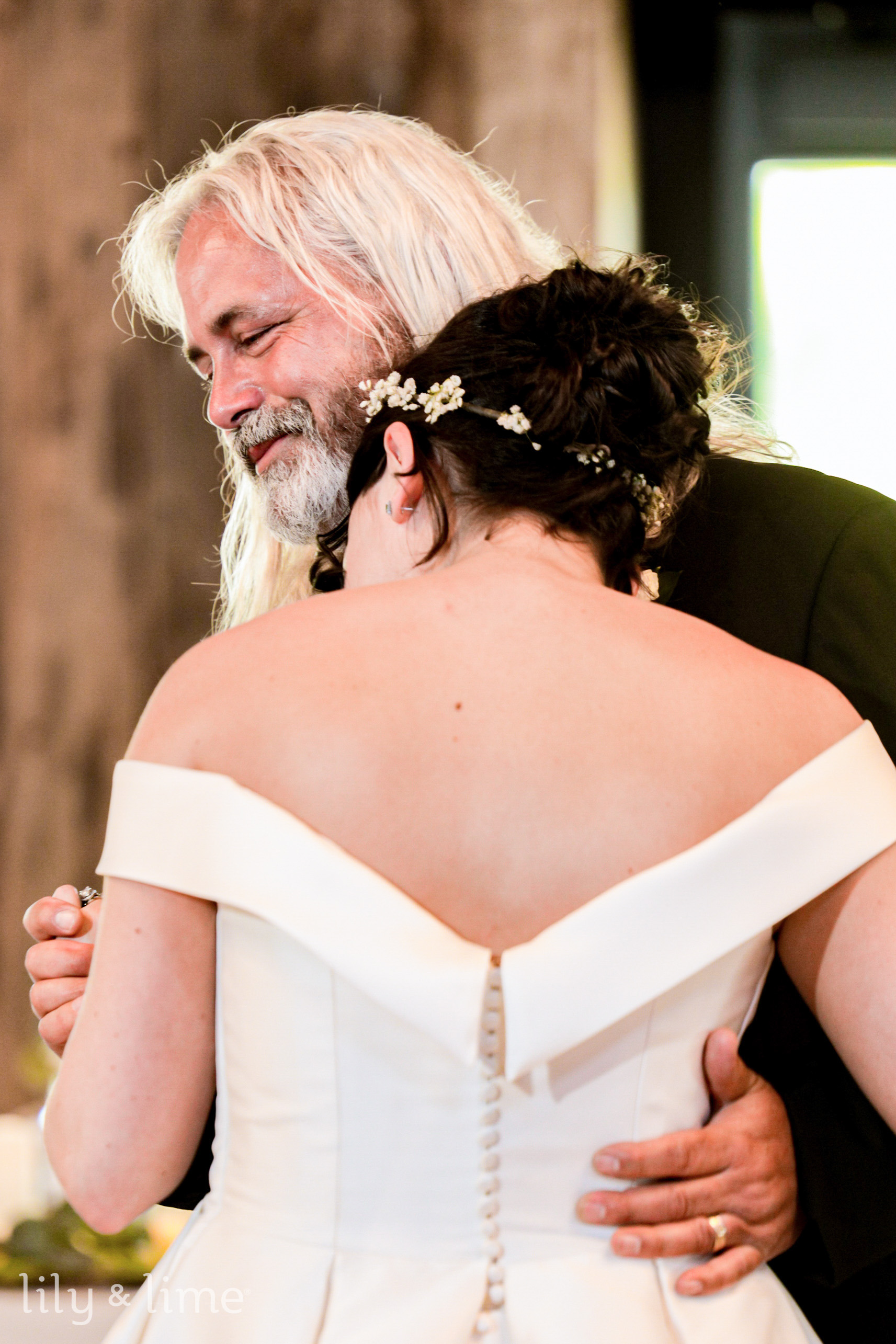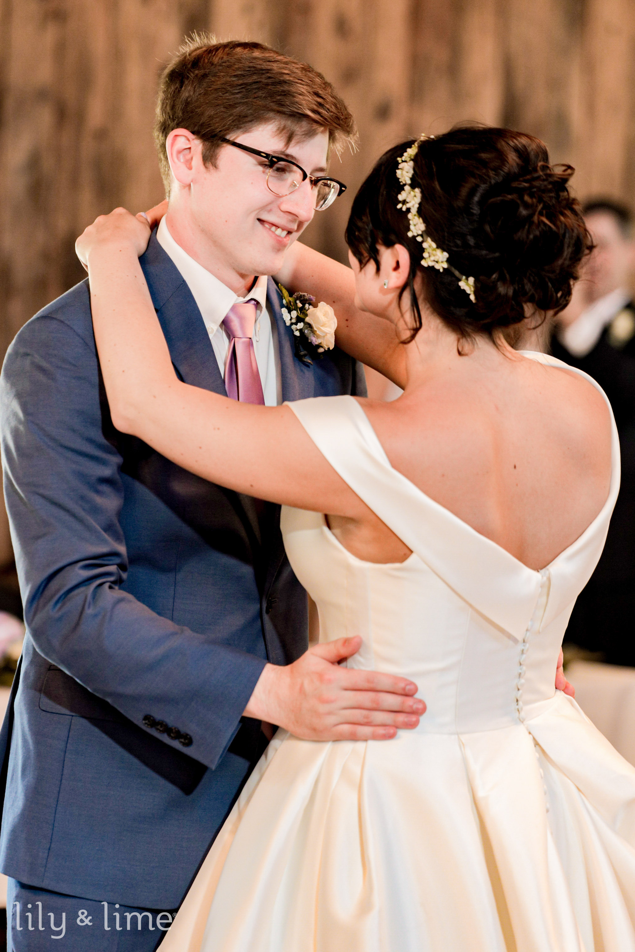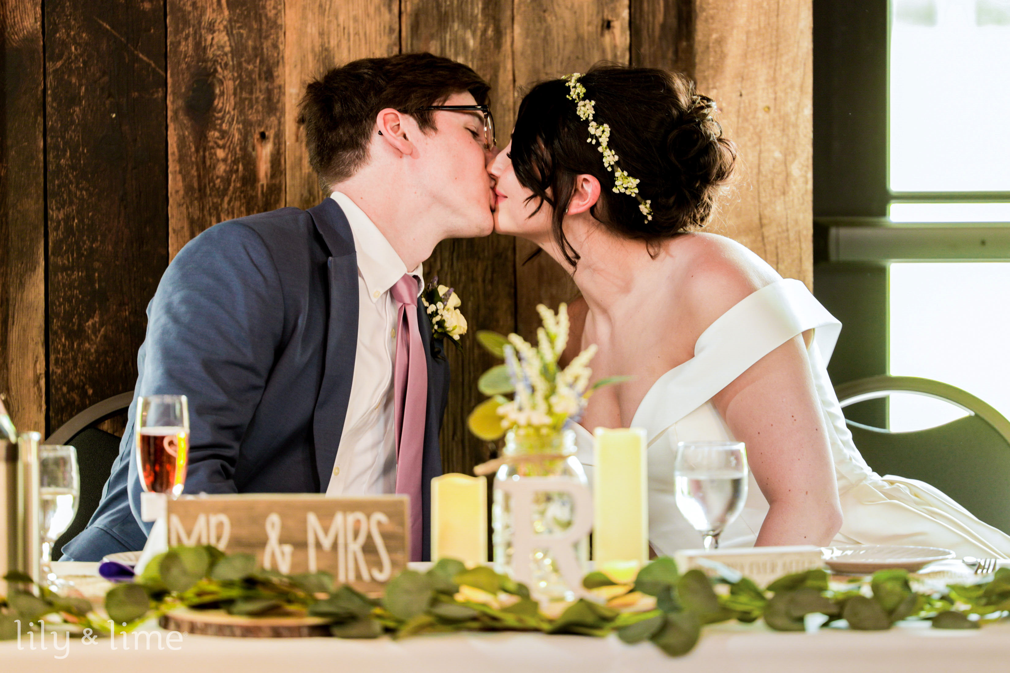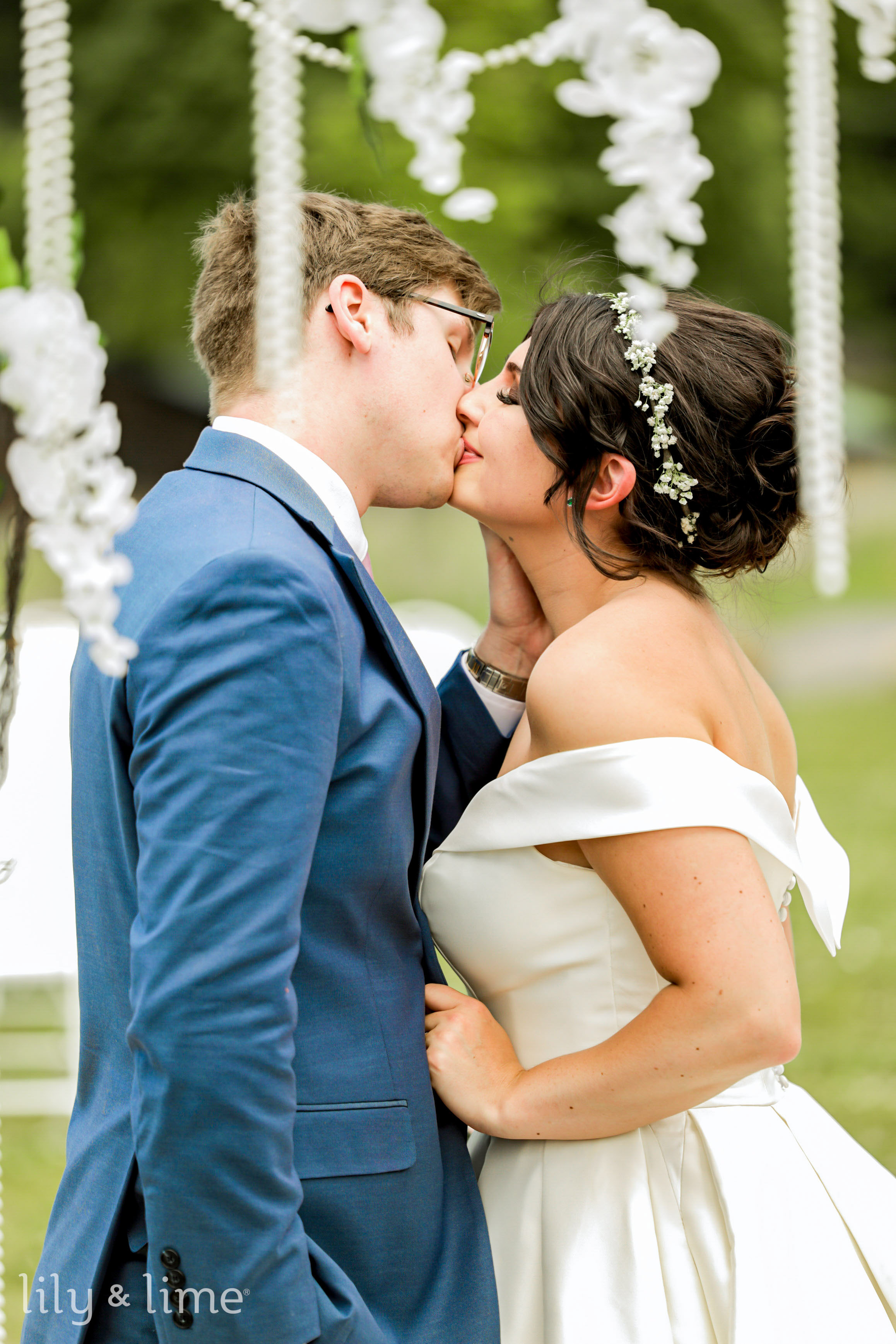 After everybody got ready, our wedding photographers came through and captured some lovely shots of the bride for her bridal portraits along with some sentimental shots with her mother and father. The bride and groom had a no-look first look, which was precious and made for a crucial moment that they will treasure forever. After those captures, it was soon time for the ceremony. The officiant and Alex waited at the arch, while AbbyGrace made an entrance and both her parents accompanied her down the aisle. The arch was a simple wooden arbor adorned with simple white blooms and made a fitting backdrop for the duo. Our gorgeous bride soon joined her groom at the arbor, and soon they exchanged their vows and sealed the deal with a kiss. As the duo walked back down the aisle, the guests cheered them on! It was then that Alex swooped his new bride down and kissed her again, and the moment was captured beautifully by our wedding photographers in Cleveland.