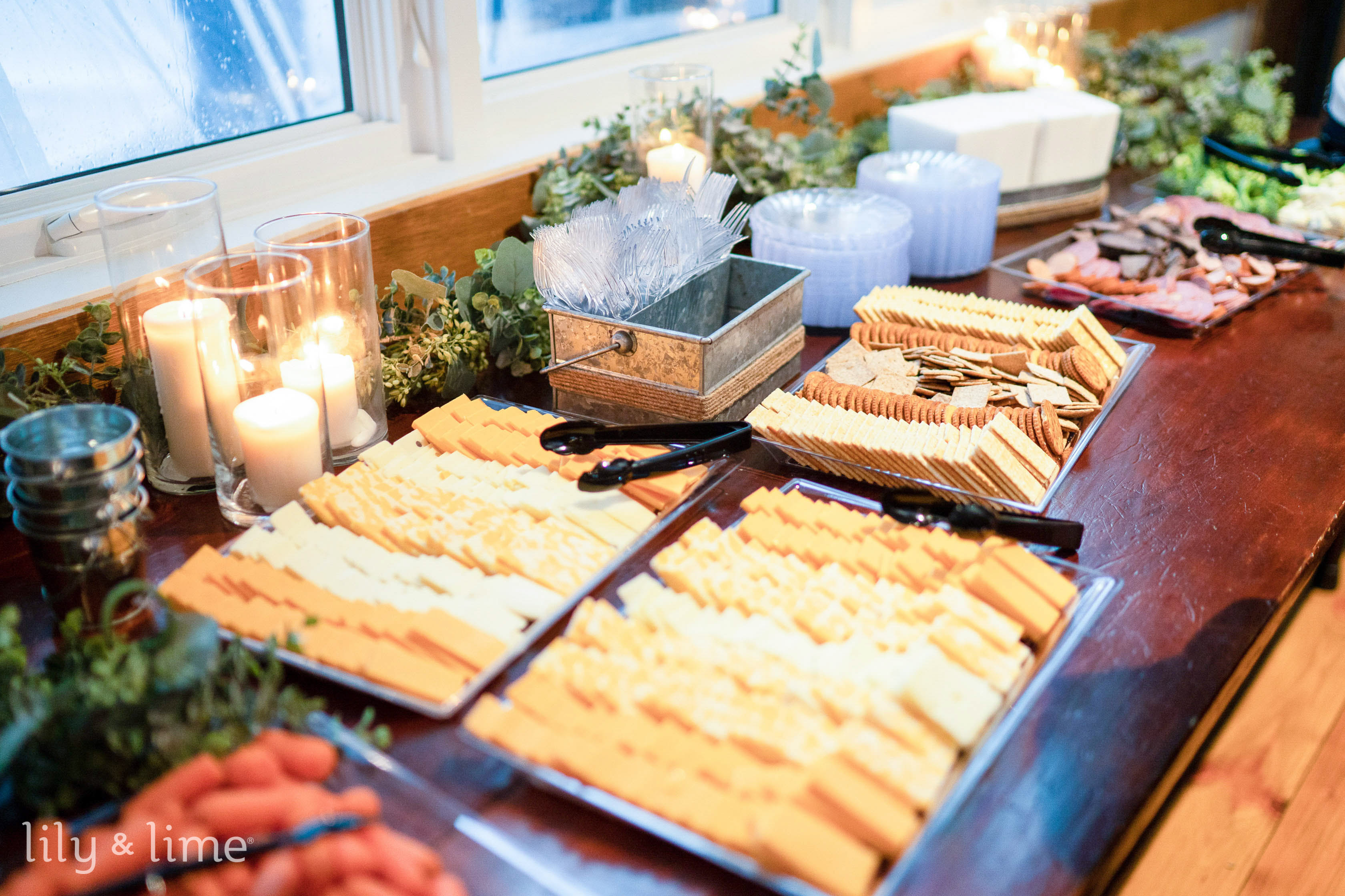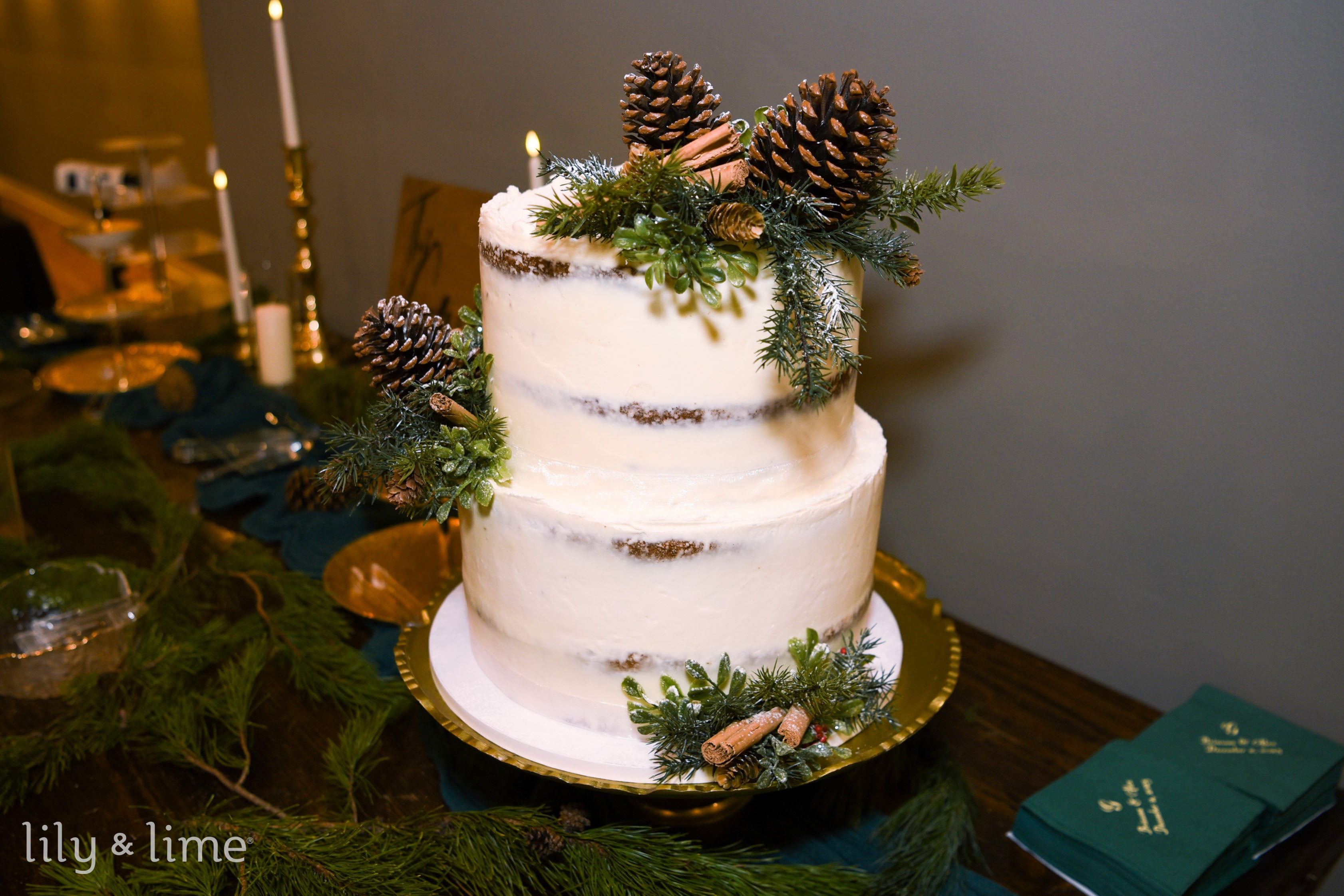 Opt for an intimate gathering by hosting your celebration in a venue with a roaring fireplace. Arrange plush seating with cozy blankets, and use rustic décor, like wooden accents and pinecones. Set up a self-serve hot cocoa station alongside other breakfast bar wedding ideas with toppings like whipped cream and marshmallows.