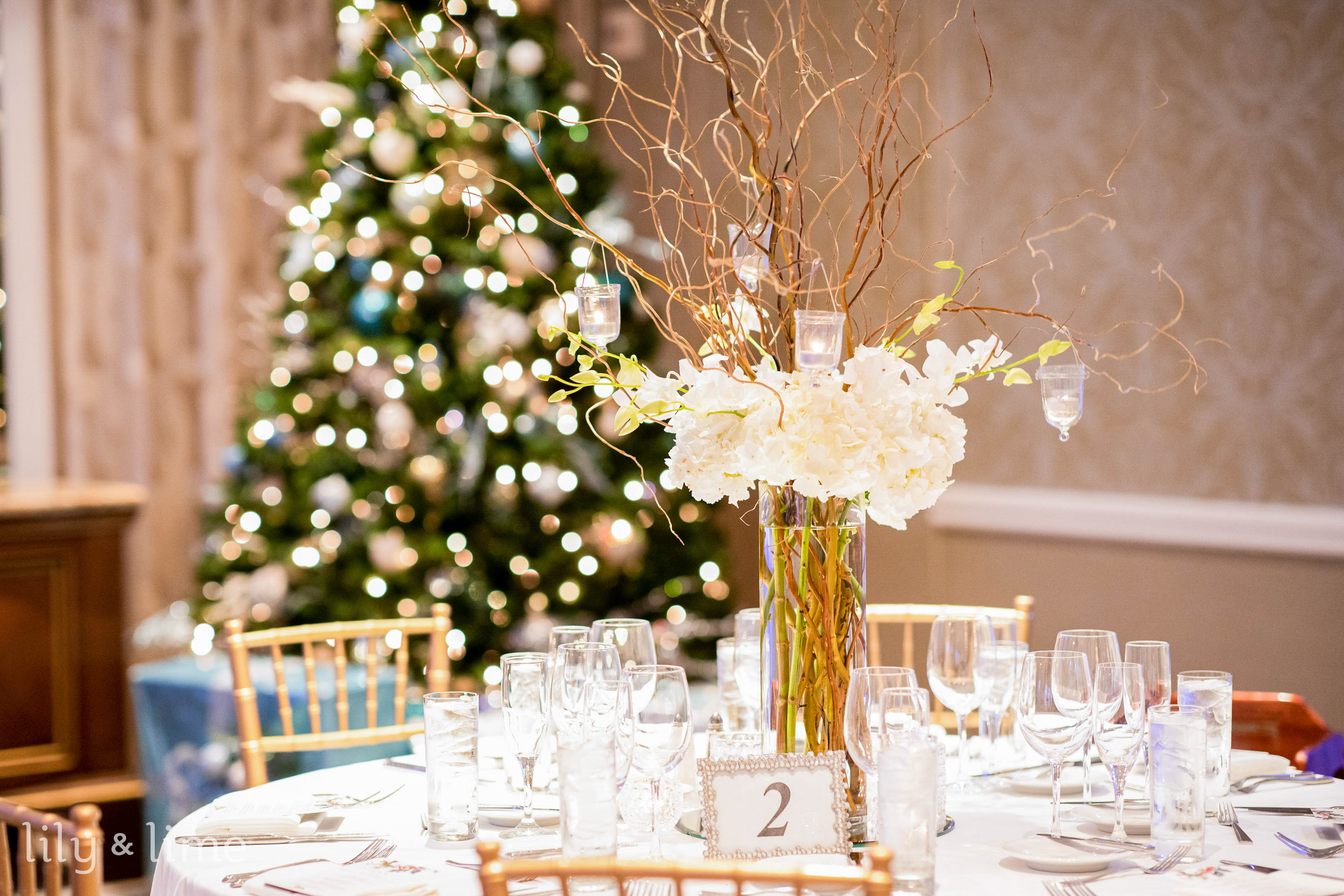 Choose a picturesque barn venue and style it with natural elements like wooden lanterns, dried florals, and burlap runners. Add twinkle lights and hanging greenery for a magical ambience. Serve comfort meals such as a soup bar and warm pies to heighten the cozy winter-chic vibe.