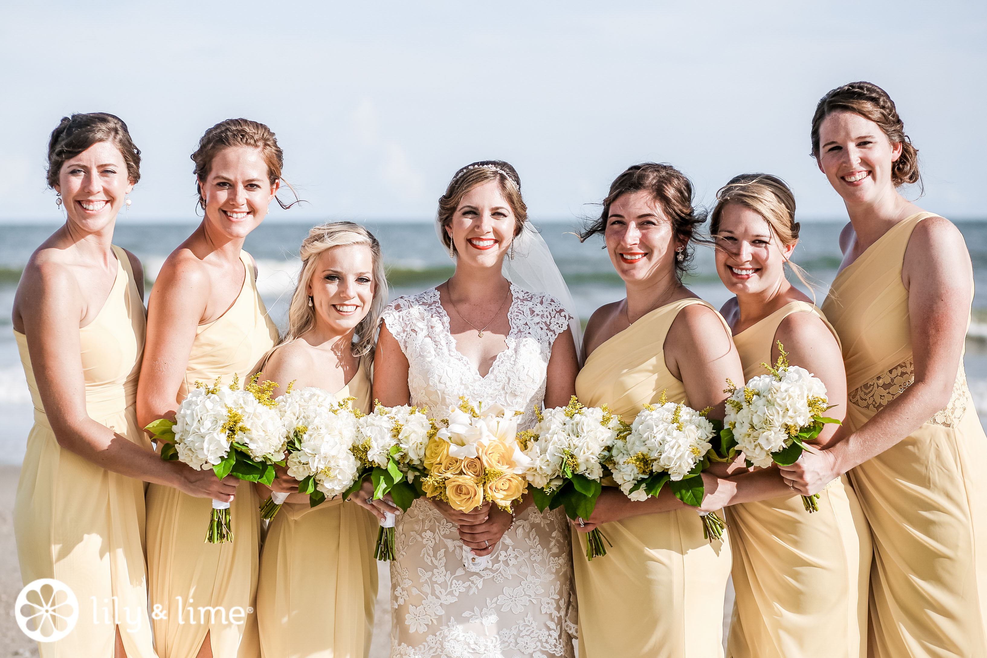 If retro is more of your type and ’50s is the theme for your beach wedding, then you can consider wearing something short with a poofy skirt, which is just a perfect wedding dress attire for a beach wedding, as it won’t drag in the sand and get dirty. And will also give great and unique bridal photography opportunities to our talented wedding photographers to capture you in the most glamorous and beautiful frames. For your lovely bridal party or we say bridesmaids, you can pick something bright and cheerful to elevate the overall look and feel of your beach wedding celebration.