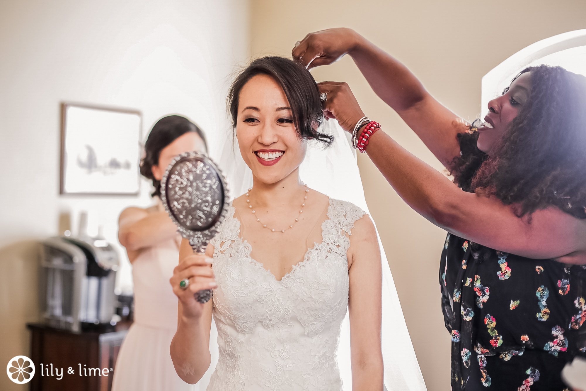 We love that the mismatched bridesmaid’s dresses are still in vogue as their looks complemented the effect of the chic and elegant wedding.