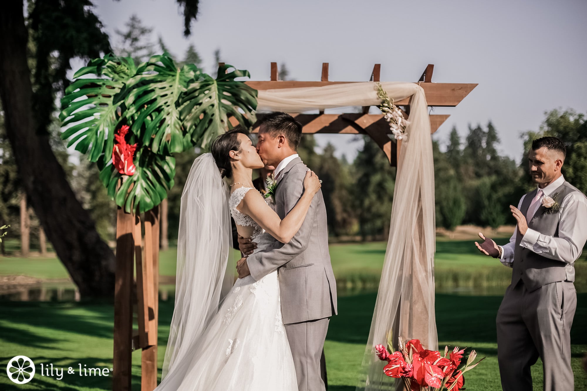 Their Seattle Wedding Photography session had the newlyweds nestled against the lush green plains of the Inglewood Golf Club. Their Seattle wedding photographer took perfect advantage of the club’s suburban structure and made use of the abundant lighting provided by the great outdoors.