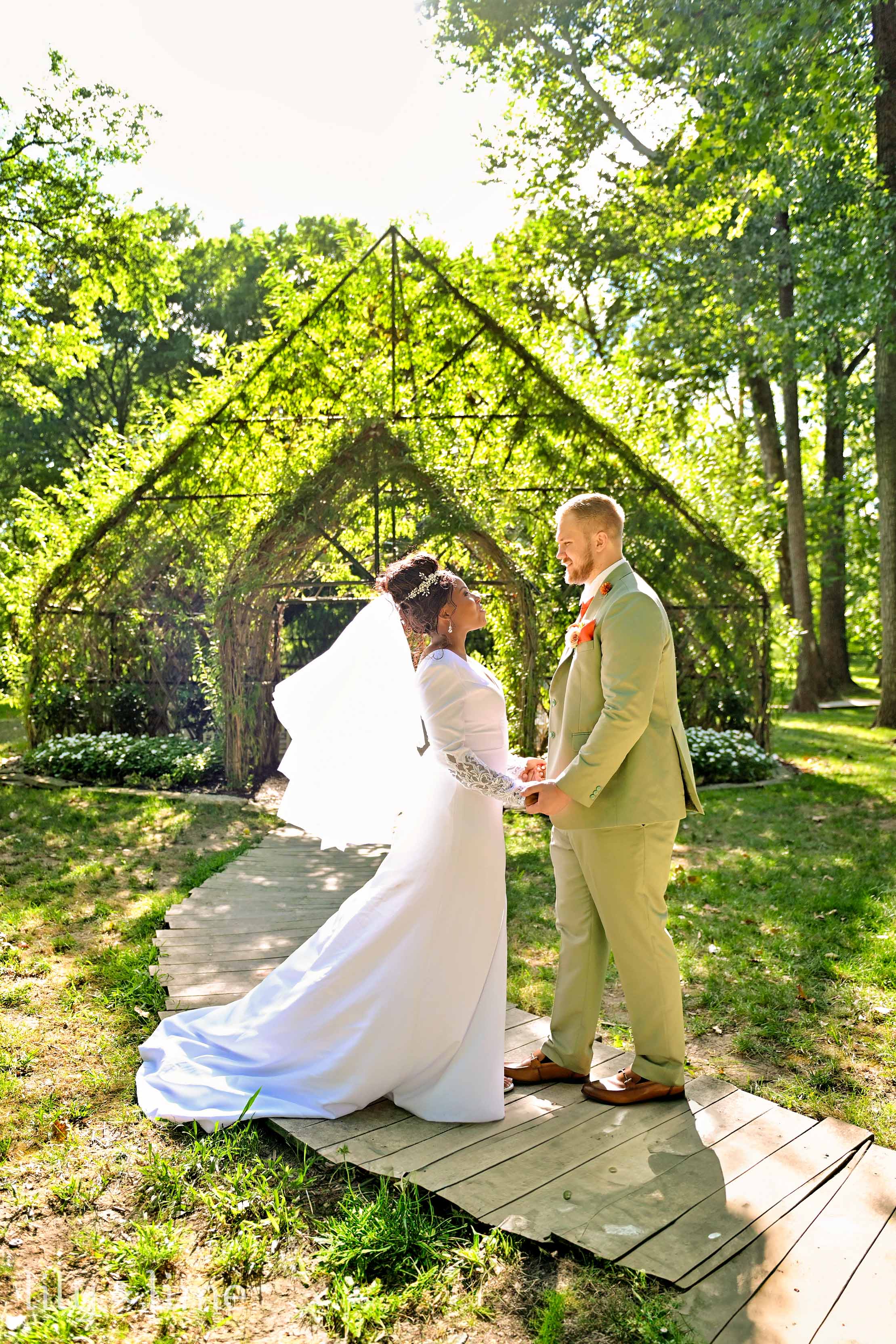 For couples who appreciate nature and want a softer, more romantic feel for their wedding photos, Indianapolis has a wealth of parks and gardens to choose from. Newfields, a 152-acre campus that includes the Indianapolis Museum of Art, offers a stunning variety of backdrops. From the formal gardens of the Lilly House to the whimsical art installations at the 100 Acres Art & Nature Park, this location allows for a mix of floral, romantic portraits and creative, modern shots. The vibrant plant life and carefully curated landscapes provide endless opportunities for photos filled with color and life.