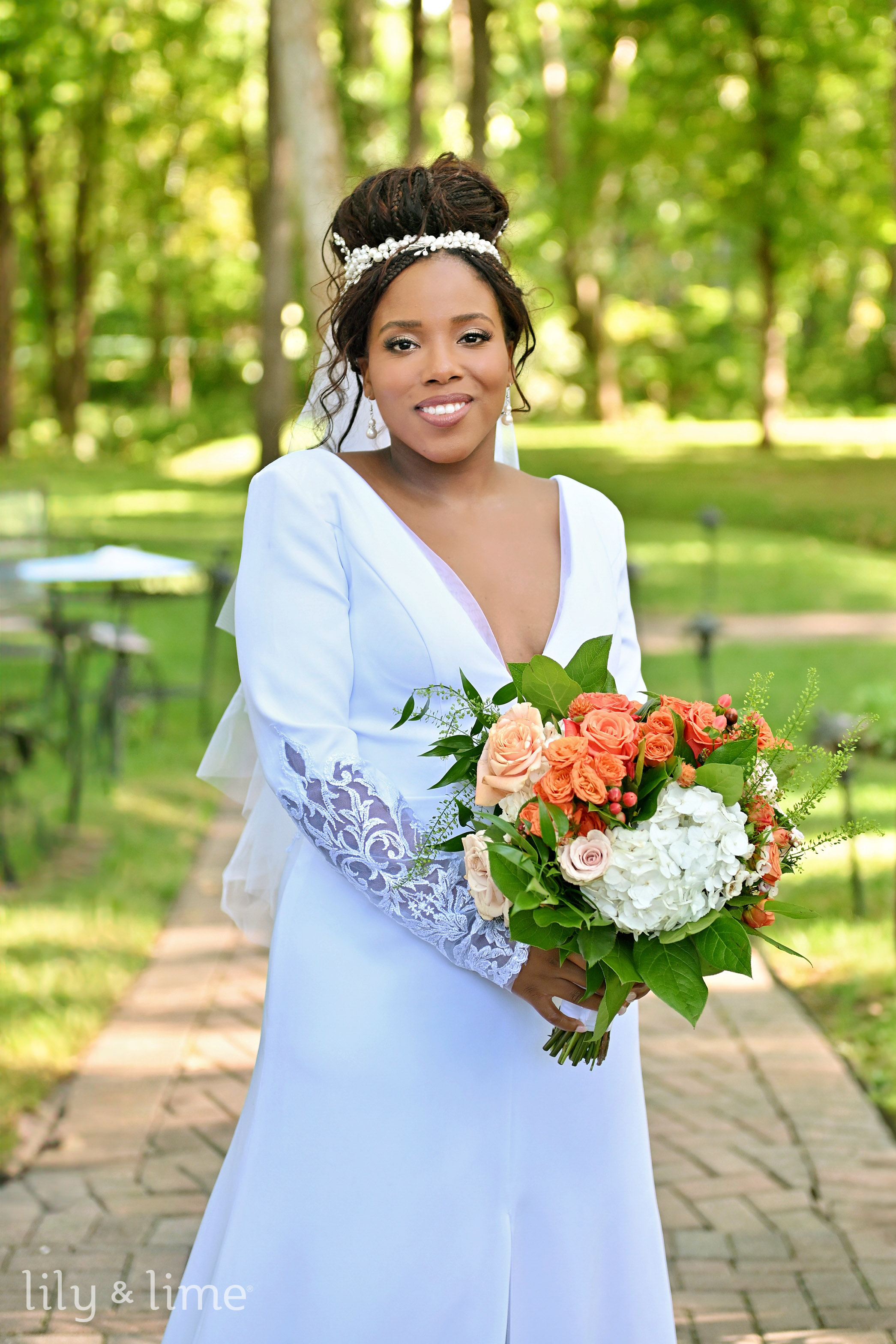 Jyra and Nikita's Indianapolis wedding was a day painted in the warm, rich hues of late summer, a perfect reflection of their love story. The day began with an air of quiet excitement as both bride and groom prepared in their respective suites. Our wedding photographers in Indianapolis captured these serene, anticipatory moments—the laughter, the thoughtful glances, and the final adjustments. Nikita was a vision of grace in a long-sleeved A-line wedding dress featuring a delicate V-neck and off-the-shoulder details. Her look was perfected with an elegant bridal bun, a sparkling tiara, a shoulder-length veil, and soft, neutral makeup. She held a stunning bouquet bursting with white, orange, and fresh greenery. Jyra was equally dapper, getting ready for his big day in a two-piece sage green wedding suit, paired with a crisp white shirt, shiny brown shoes, a rust-colored necktie, and an orange boutonniere.