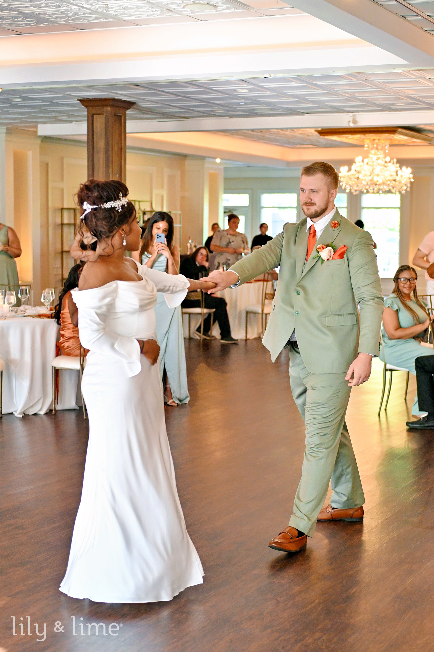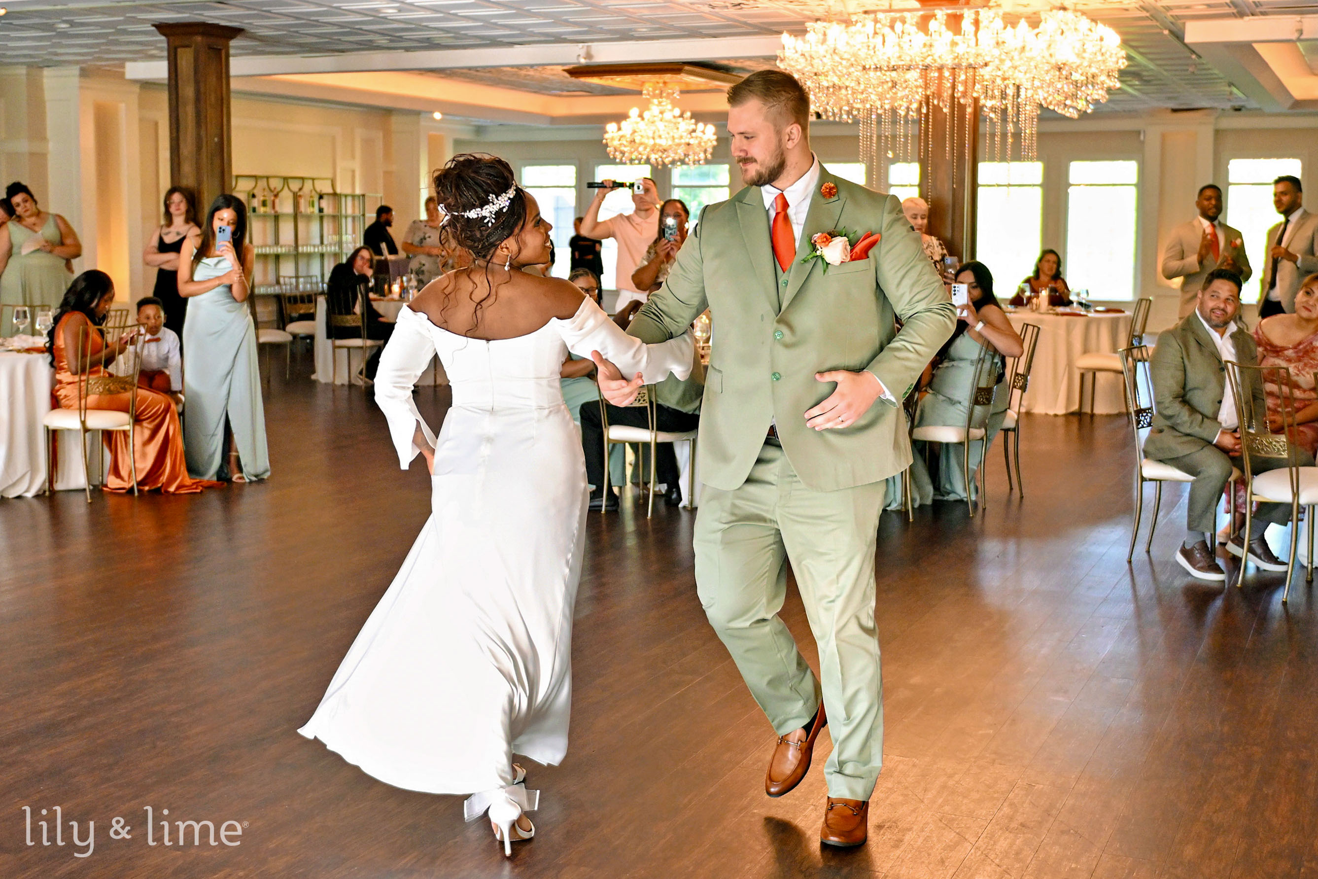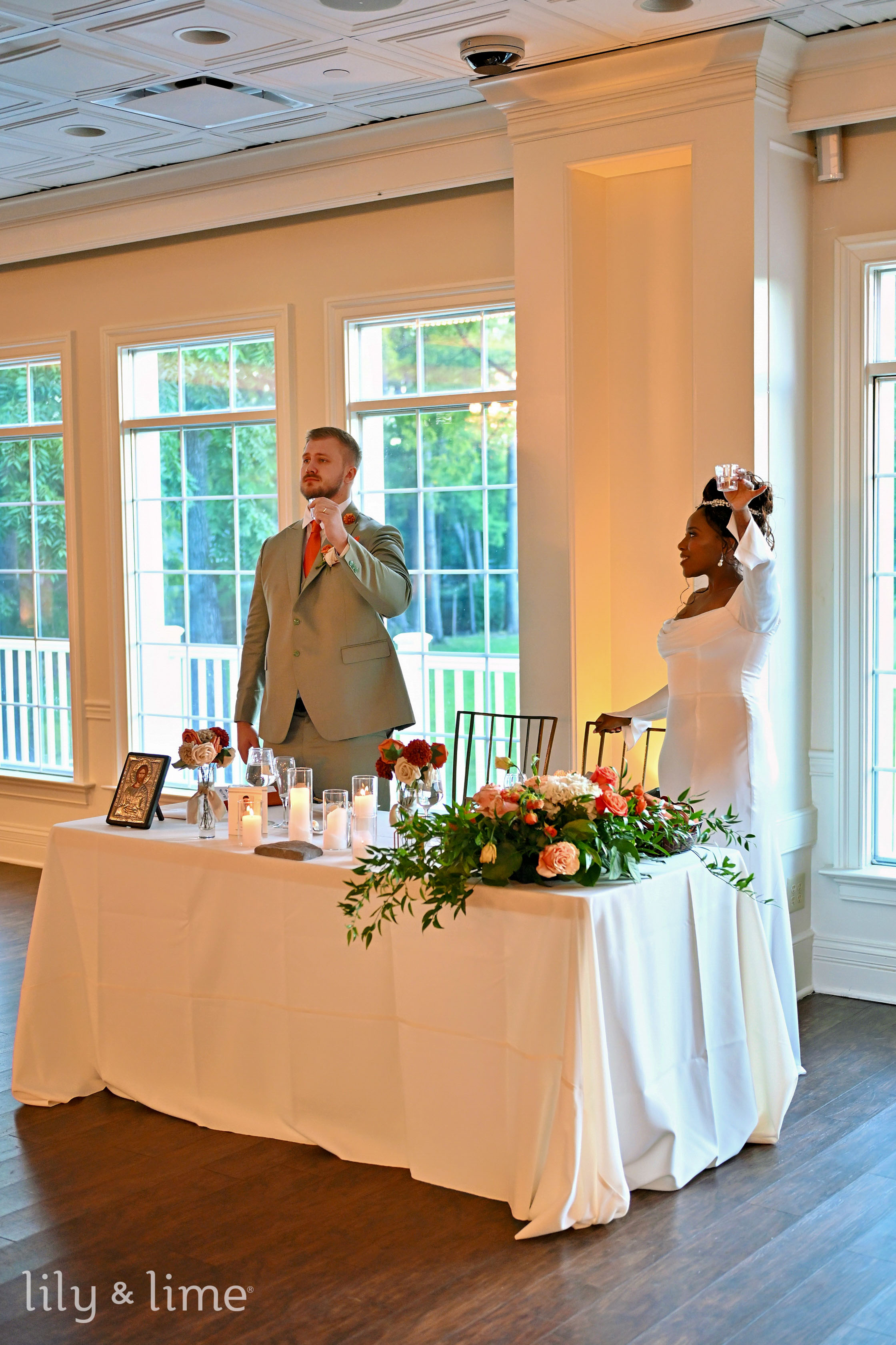 The celebration continued with an afternoon reception in an elegant indoor space. The room was aglow with white column candles in glass holders and crystal chandeliers that cast a warm light on the wooden flooring. Tables were adorned with rust and green floral arrangements and settings that matched the wedding's color palette. The reception was a whirlwind of joy, with our team capturing key moments like the heartfelt toasts, the sweet cake-cutting, and a first dance that was pure magic. The dance floor was alive with energy, concluding a perfect day. This Indianapolis wedding was a unique and beautiful affair, a testament to Jyra and Nikita's love, and it was an honor to preserve every cherished memory.