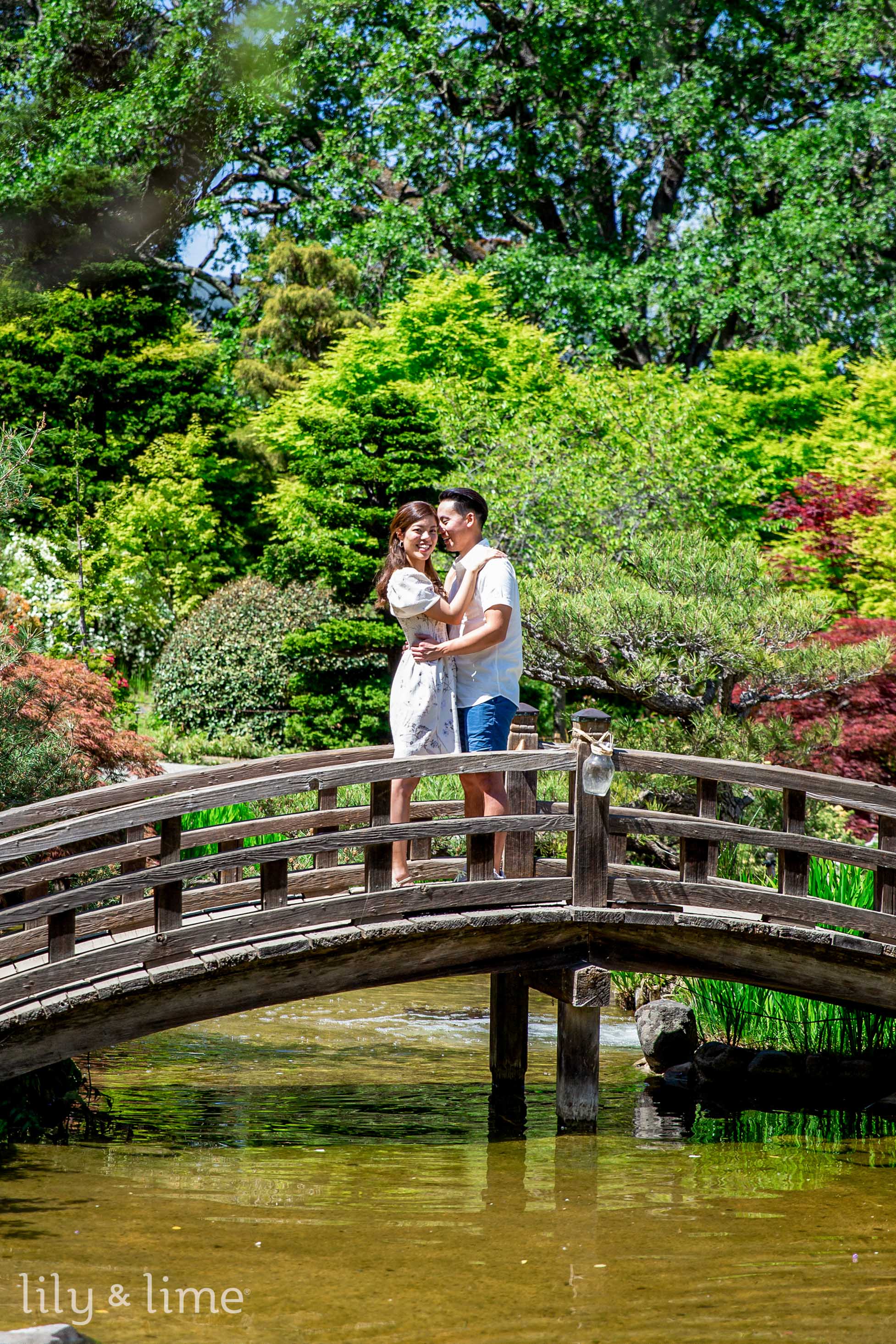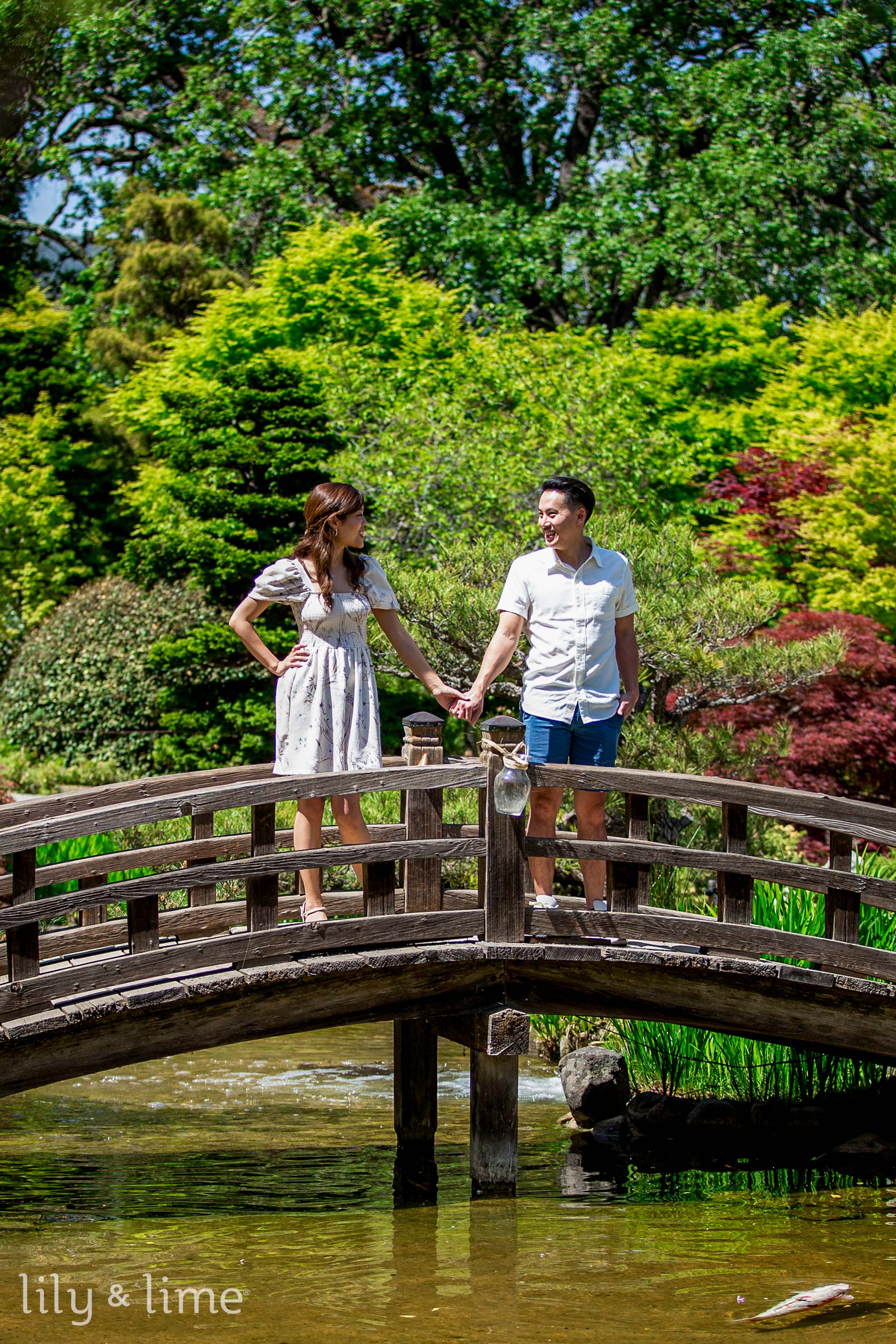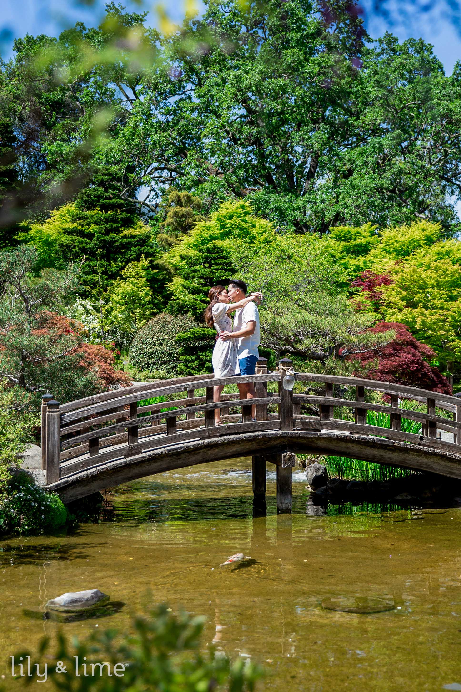This beautiful city houses many treasures, and one of them is the beautiful Japanese Tea Garden. Nestled within the iconic Golden Gate Park, the Japanese Tea Garden is a tranquil oasis in the heart of San Francisco. Spanning over five acres, this enchanting garden is a beloved attraction that showcases the beauty of Japanese aesthetics and provides visitors with a serene escape from the bustling city. Stepping into the Japanese Tea Garden is like entering a different world. The garden's meticulously manicured landscapes, traditional Japanese architecture, and serene water features create a sense of peace and harmony. Every element of the garden is thoughtfully designed to evoke a sense of tranquility and contemplation, which makes it the perfect photo shoot spot in the city. We love the myriad colors in the garden, which truly added many charming details to Kana and Alvin’s beautiful outdoor engagement photo session. The winding paths in the garden are exactly what makes you want to meander through them and see many beautiful shrubs. This garden is made of delicate cherry blossom trees, colorful and vibrant azaleas, and meticulously pruned bonsai trees that adorn the landscape, creating a breathtaking display of colors and textures. Serene koi ponds filled with gracefully swimming fish add to the garden's soothing ambiance, while elegant stone lanterns and arched bridges enhance the traditional Japanese aesthetic.
