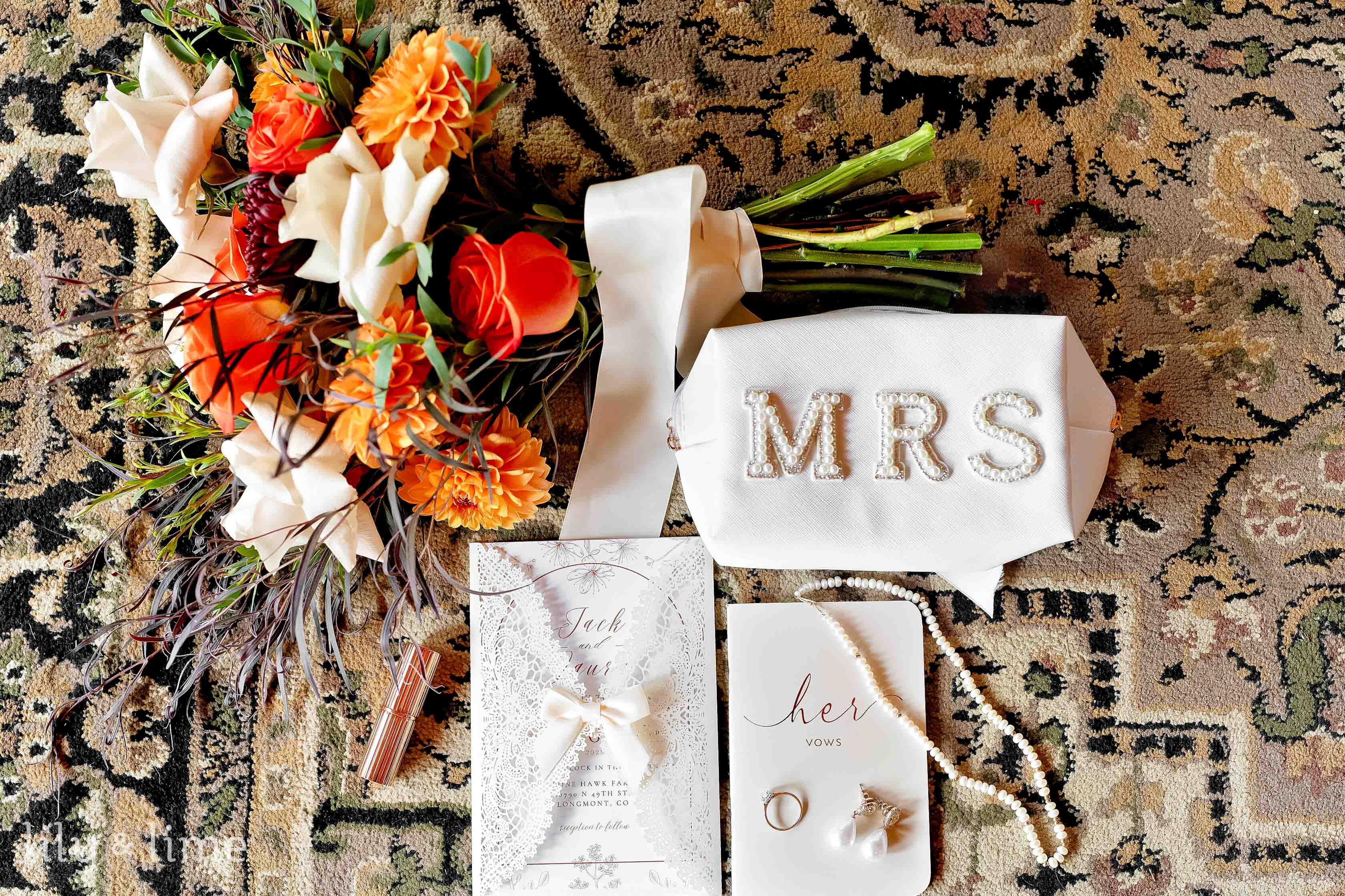Laura and Jack's Denver wedding day was a storybook affair, a perfect culmination of their beautiful journey, captured in exquisite detail from the first light of dawn. The day began with our Denver wedding photographer documenting the quiet moments of anticipation. We captured beautiful wedding detail photos, preserving the elegance of the bridal bouquet, the bespoke invitation suites, their heartfelt vow books, and shimmering bridal jewelry.