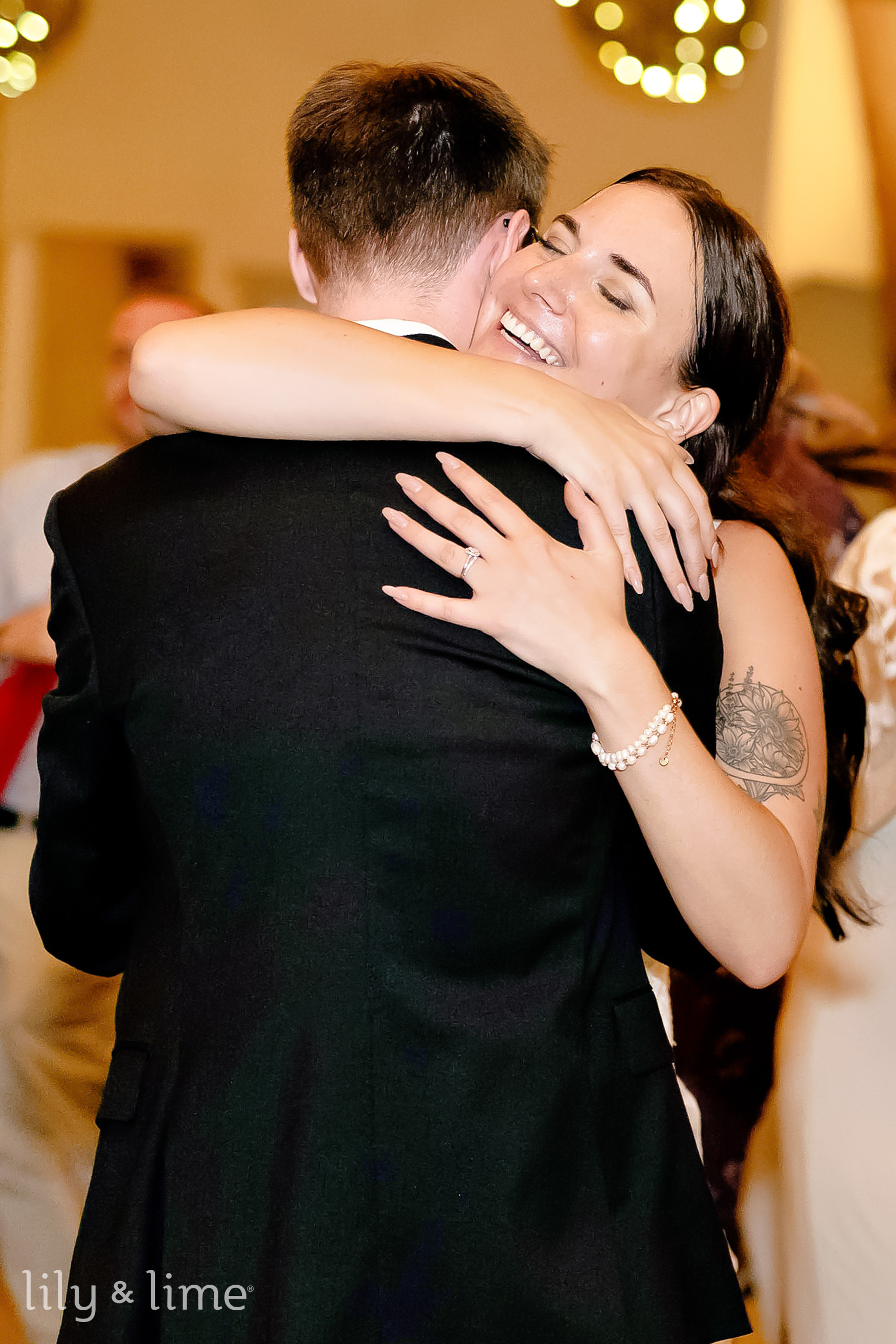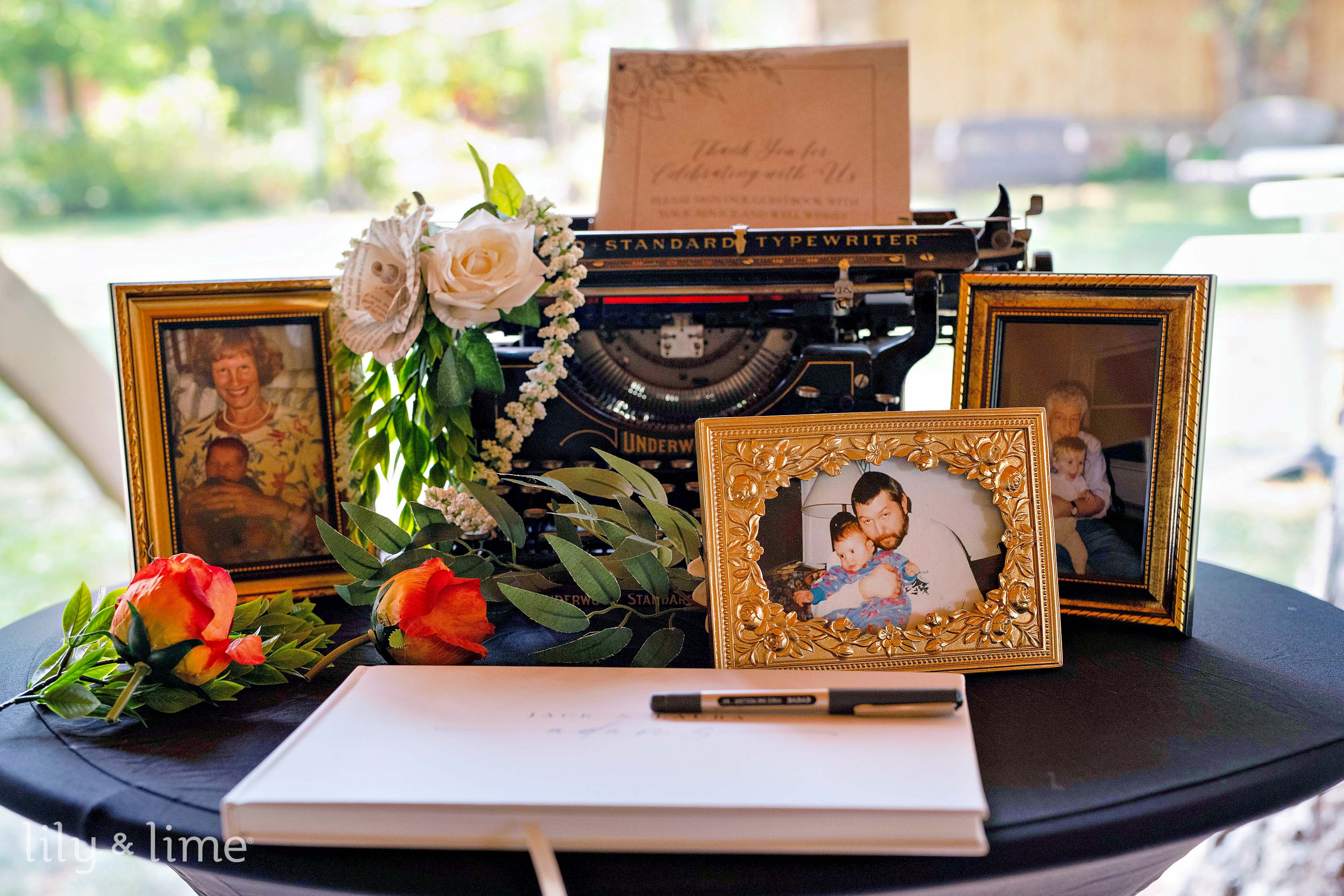 The celebration continued at the elegant indoor reception. The space was transformed with fairy lights, greenery, and lace table linens. A beautiful sweetheart table was the centerpiece, while orange floral details added a pop of seasonal color. A vintage memorial display, complete with a typewriter, added a personal, nostalgic touch. The dessert table was a treat, featuring an elegant single-tier, all-white wedding cake with berry details and a delightful macaroon tower. Key moments, including the couple's first dance, heartfelt toasts, and the joyful cake-cutting, were all perfectly captured. Every element of Laura and Jack's day was a reflection of their personalities. It wasn't just a wedding; it was a uniquely beautiful and heartfelt celebration of their incredible love story.