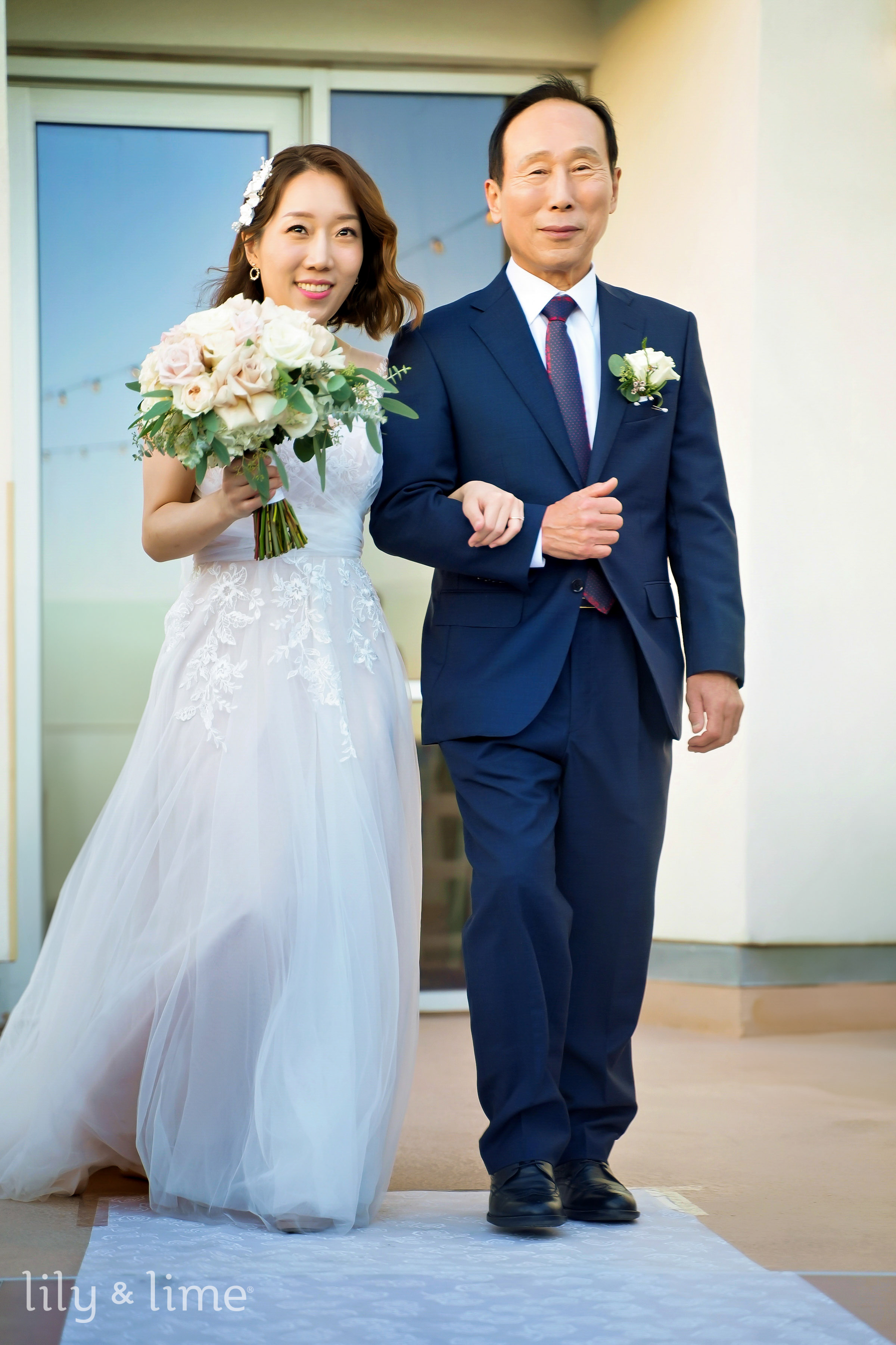 The rooftop ceremony was a spectacle of beauty and emotion. Decorated with the city’s skyline as a backdrop, including the majestic High Roller, the venue was bathed in the sunny glow of a perfect day. The couple's beloved dog made an adorable appearance, adding warmth to the proceedings. After exchanging vows, Jungmi and Haram joined them for touching family wedding portraits, preserving these cherished moments in time.