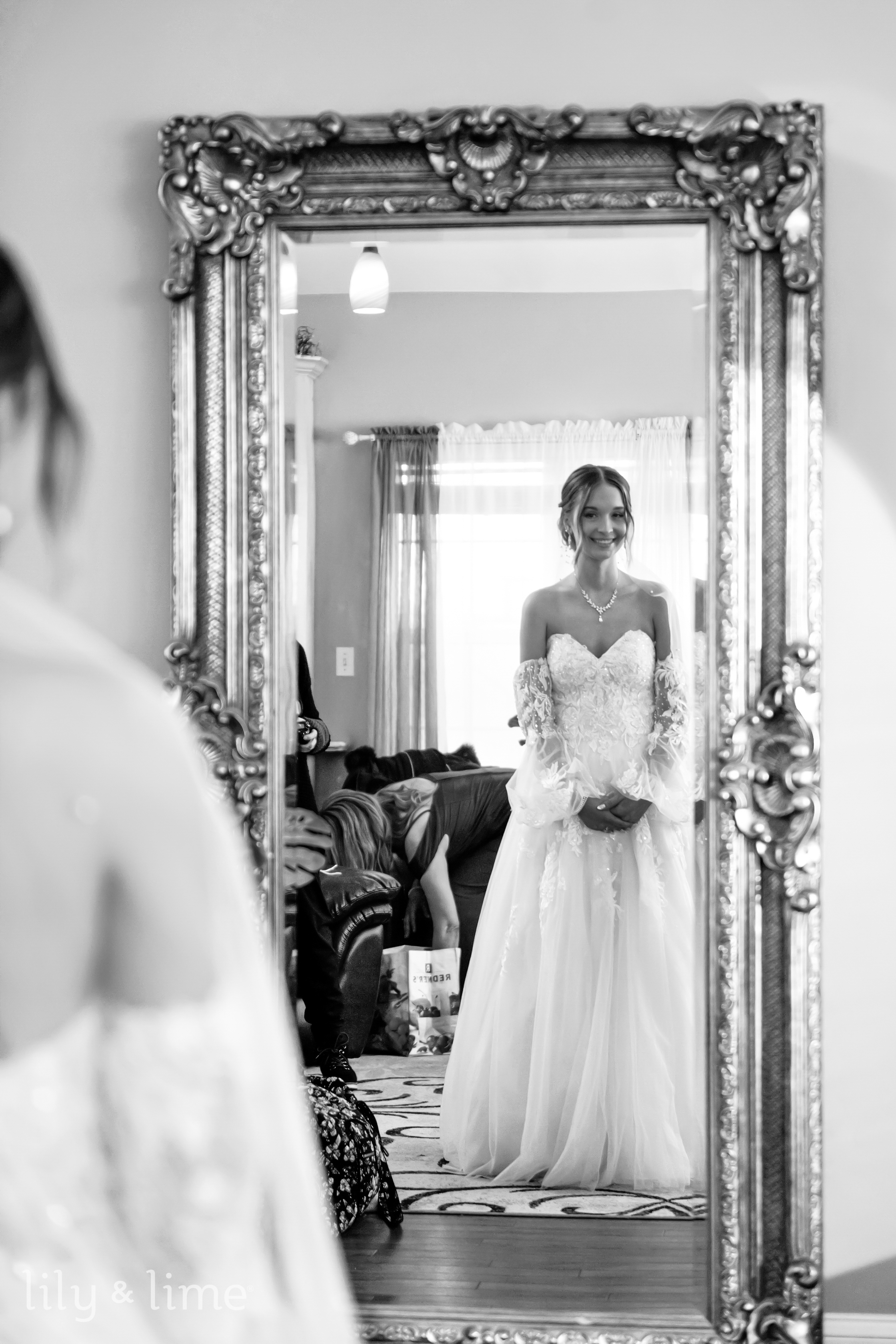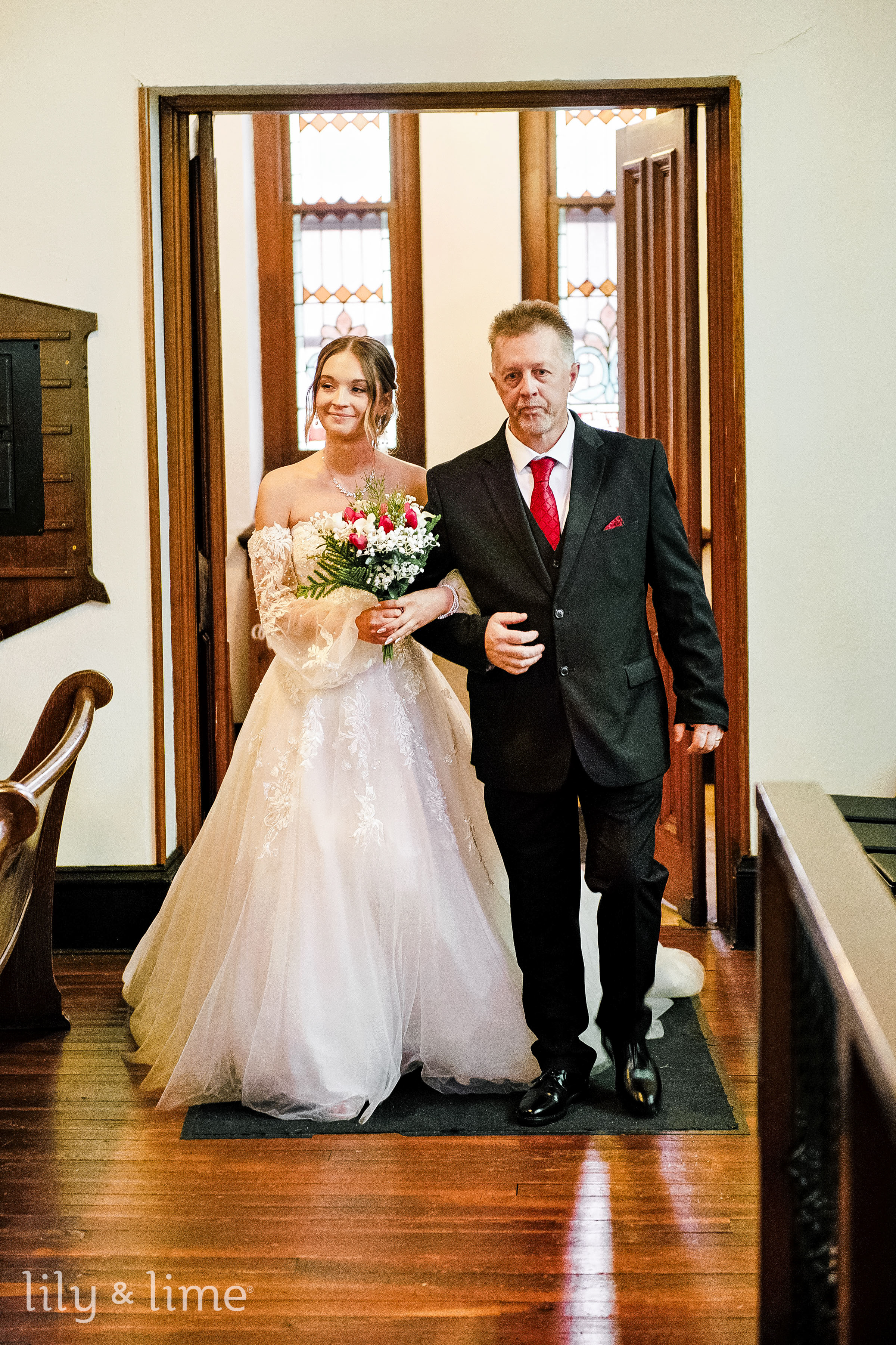 Lucas and Lindsay’s wedding day in Harrisburg was nothing short of magical, a perfect blend of winter charm and heartfelt moments. The day began with the couple getting ready in their respective suites, where our wedding photographers in Harrisburg captured the excitement and anticipation in every detail. Lindsay’s suite was a haven of elegance, with her chic winter wedding dress taking center stage. The long-sleeved gown, adorned with intricate embroidery, paired beautifully with her faux fur shawl, adding a touch of seasonal sophistication. Her bridal look was completed with a graceful bun hairstyle, neutral makeup, and an embroidered fingertip veil. Her winter wedding bouquet, a mix of seasonal blooms, added a pop of color to her ensemble. One of the most touching moments of the morning was Lindsay’s first look with her father, a moment filled with love and emotion.