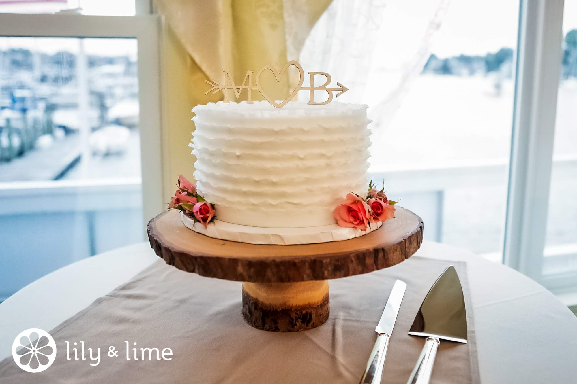 After their delicious New England dinner, the couple and their guests dug into a simple yet sweet wedding cake. The one-tier cake was adorned with roses and a darling cake topper. It was a delectable finish to an enchanting day.