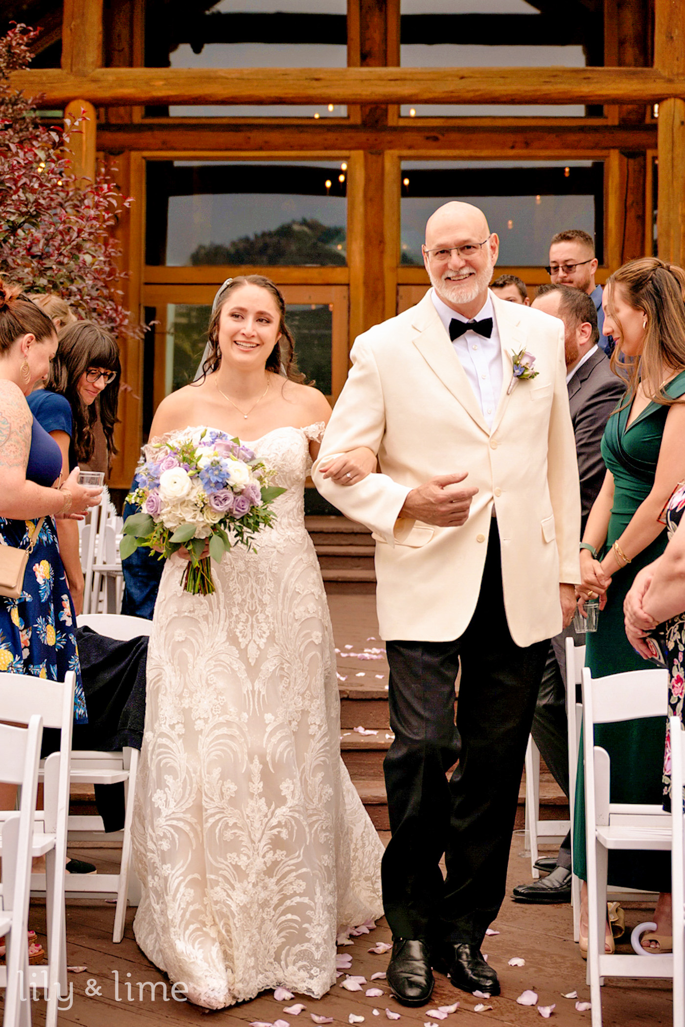 The wedding ceremony in Denver took place in a breathtaking outdoor location with stunning mountain and lake views that only Colorado can provide. The ceremony decor was nothing short of magical, featuring gorgeous wedding aisle decor adorned with pink petals that created a romantic pathway. A rustic A-frame arch served as the focal point, surrounded by towering trees that provided natural grandeur. White and purple flower installations throughout the space tied together their color palette beautifully, creating the perfect backdrop for emotional wedding ceremony photographs that captured every tear, smile, and loving glance.