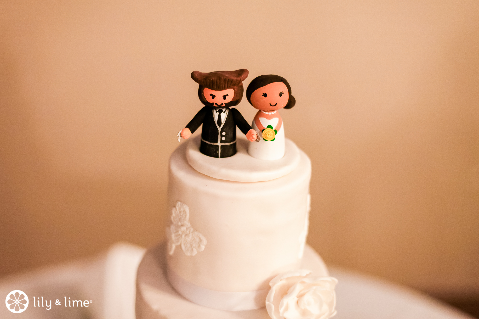 Your cake topper is a great place to add a personal touch. Your favorite cartoon figurines become funny and personal when added to the top of your cake or amidst a tower of wedding donuts. You can select a phrase that means something to both of you, or you can go for a caricature of the bride and groom. There are so many ways to let your cake topper say something special about you.