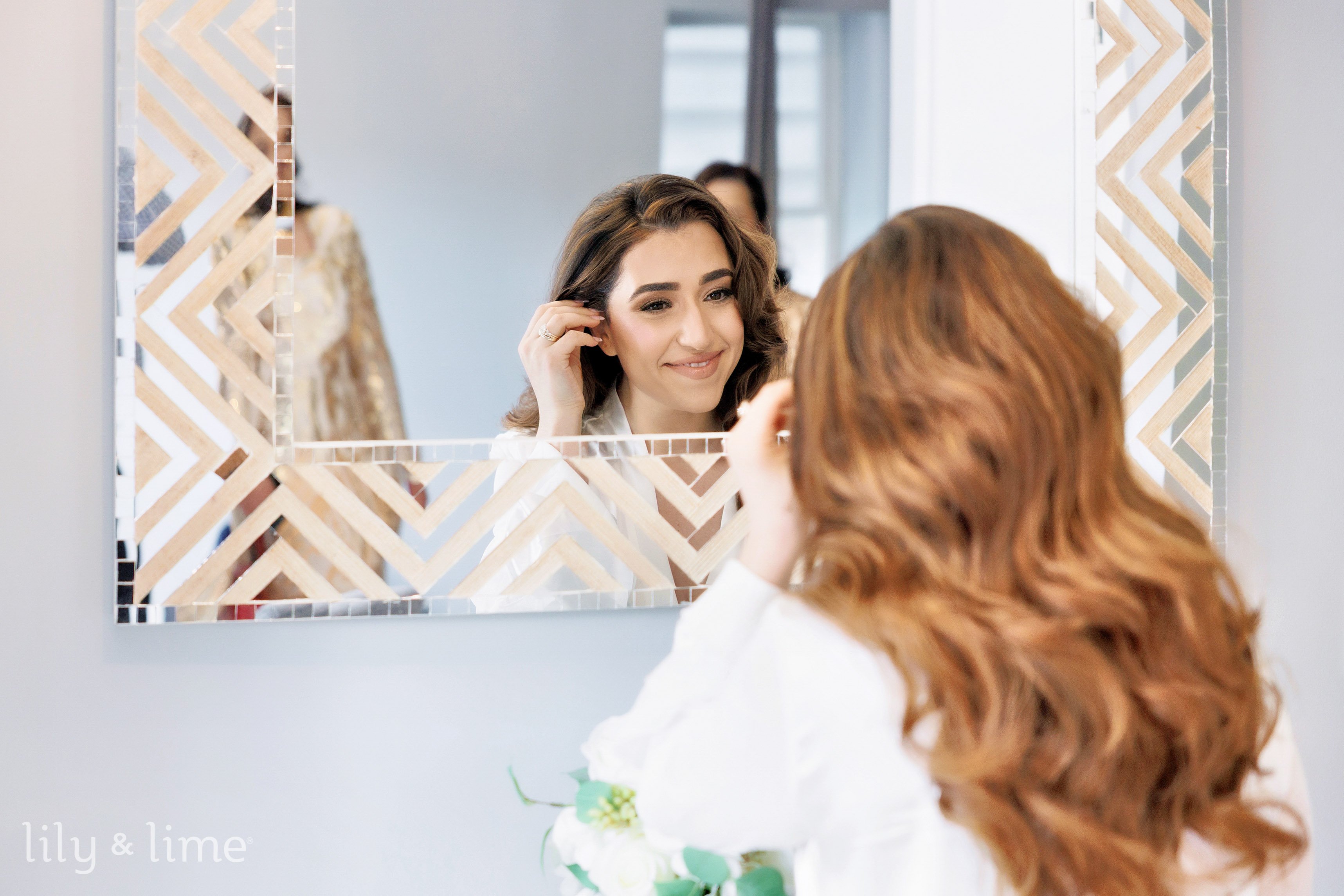 The wedding day of Milad and Sarra in Chicago unfolded like a dream, a beautiful tapestry of love and elegance. The morning began with Sarra immersed in the ritual of becoming a bride. She started her preparations in a soft white bridal robe, her excitement palpable as she transformed into the radiant bride she had envisioned. Her stunning white wedding gown featured a plunging draped neckline and intricate beaded details, a perfect blend of modern elegance and romantic charm. With her hair neatly side-parted and styled open, she adorned herself with a veil that added a layer of timeless beauty. Her white and pink bridal bouquet tied her look together with a delicate pop of color.