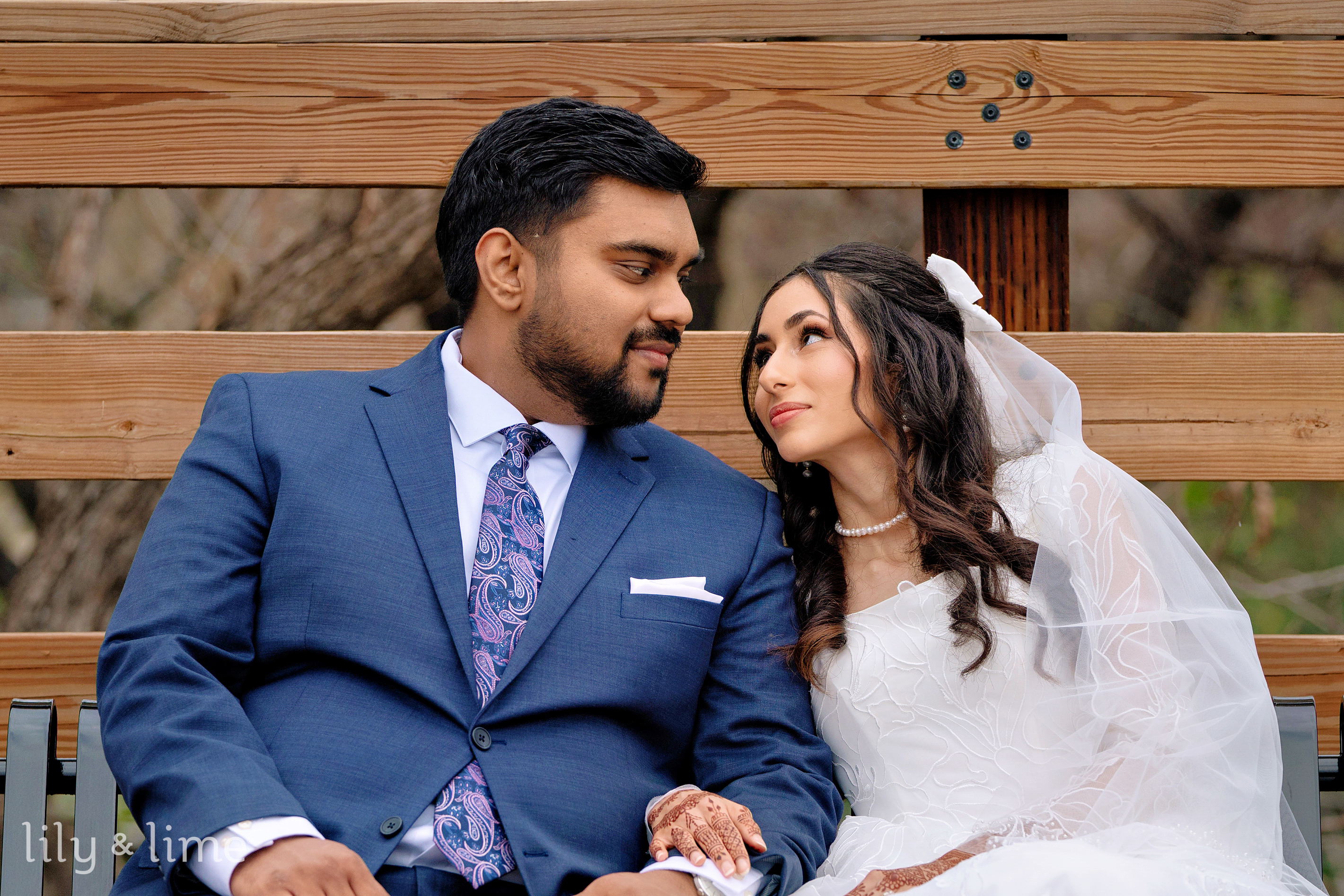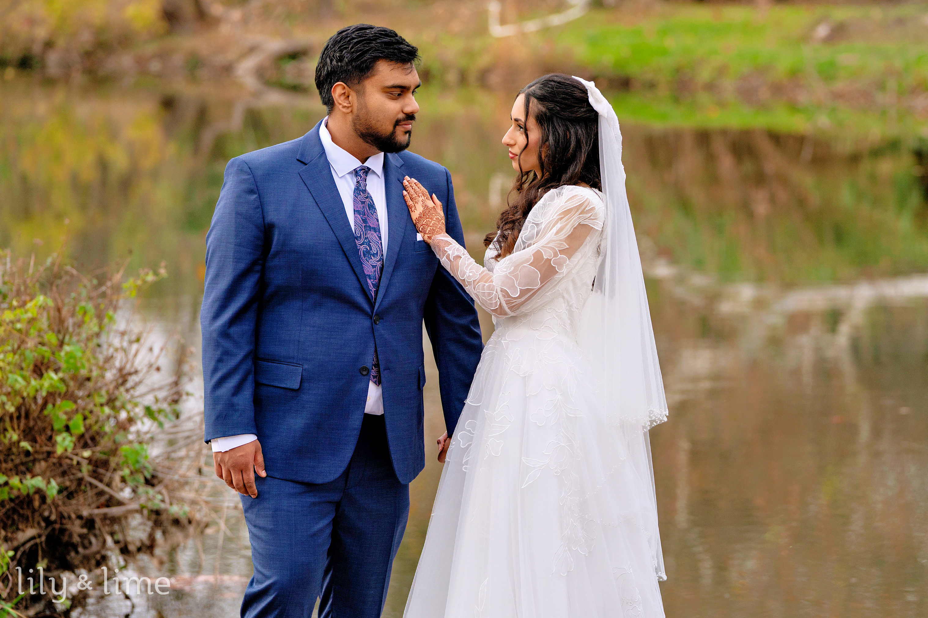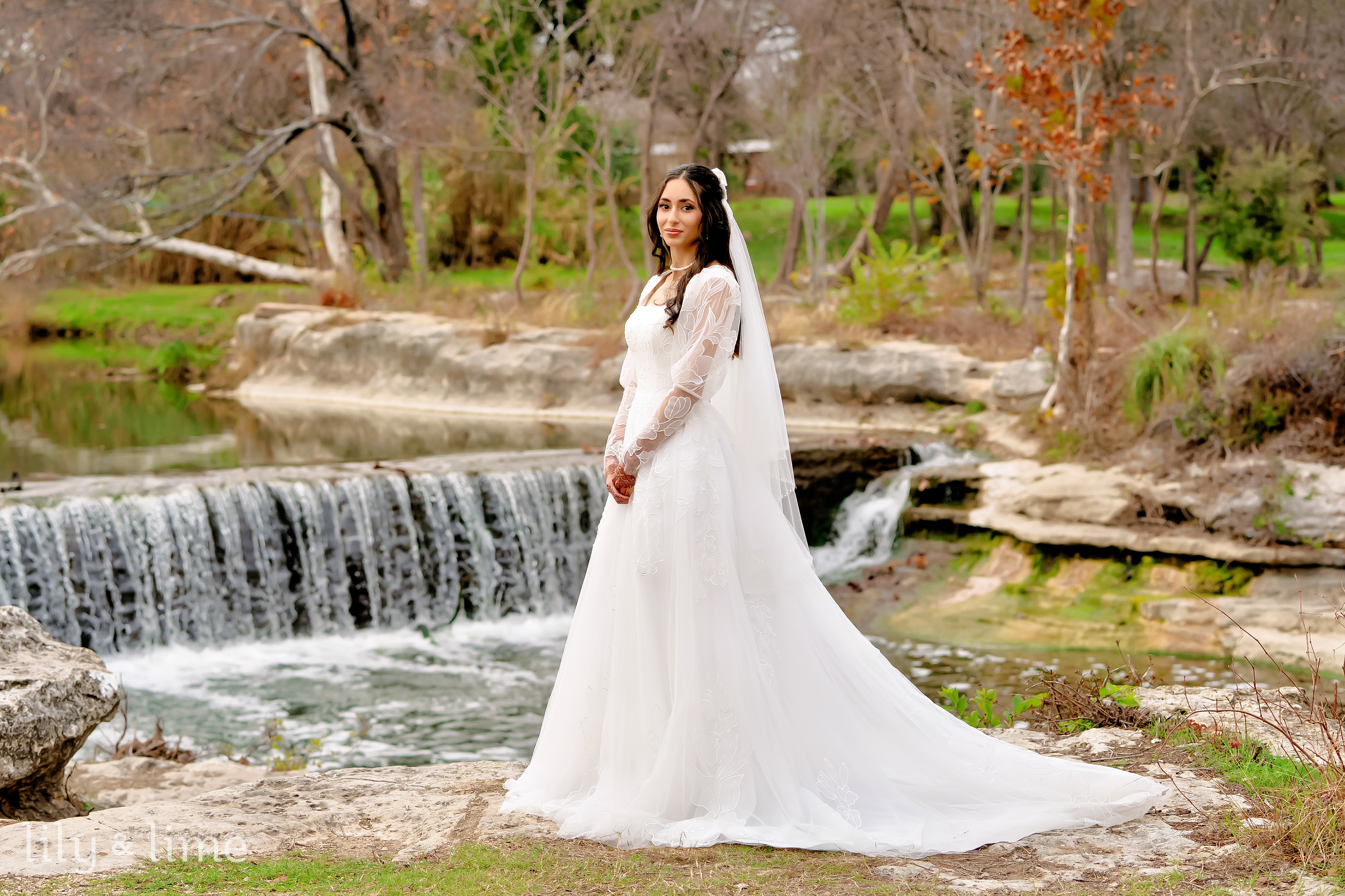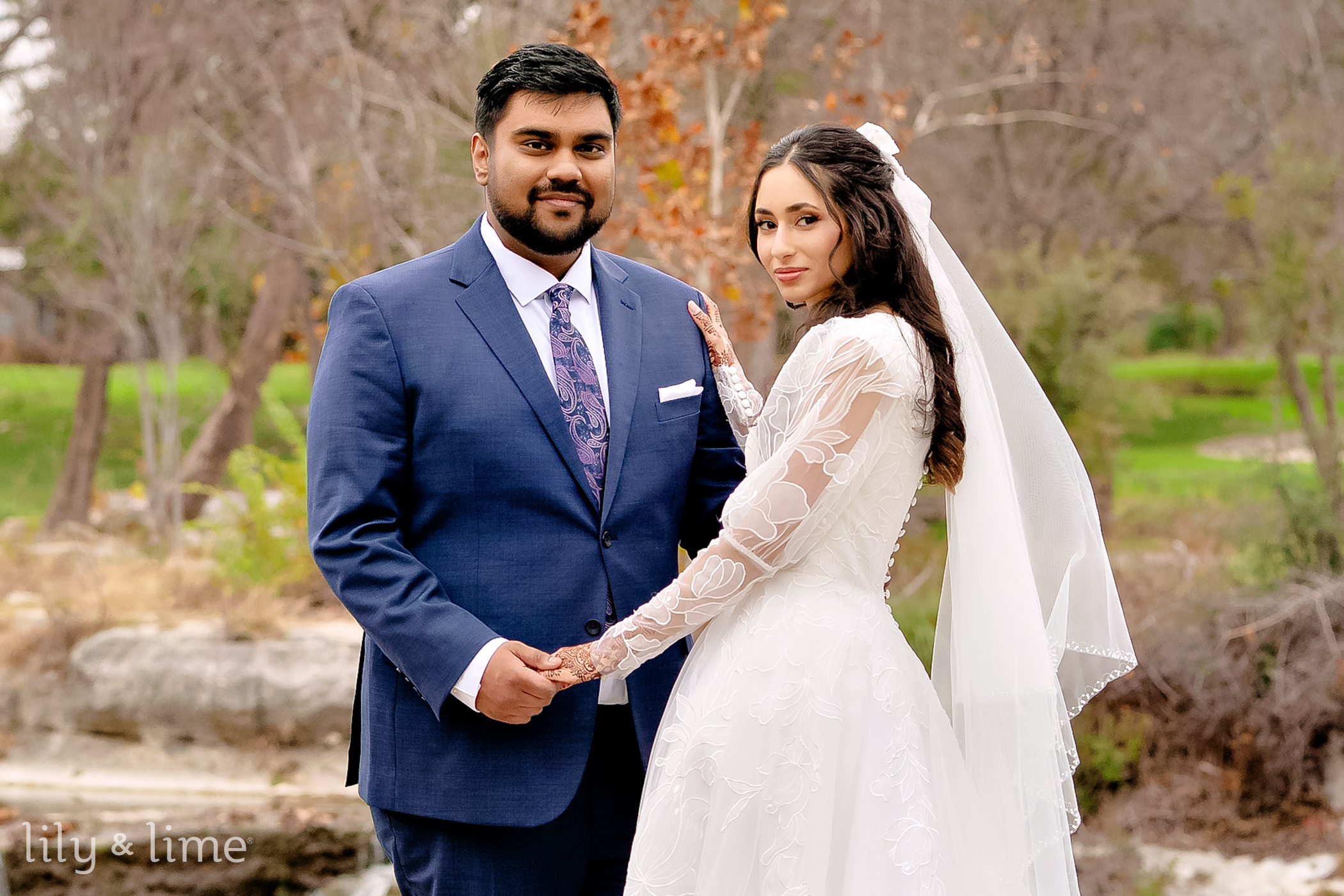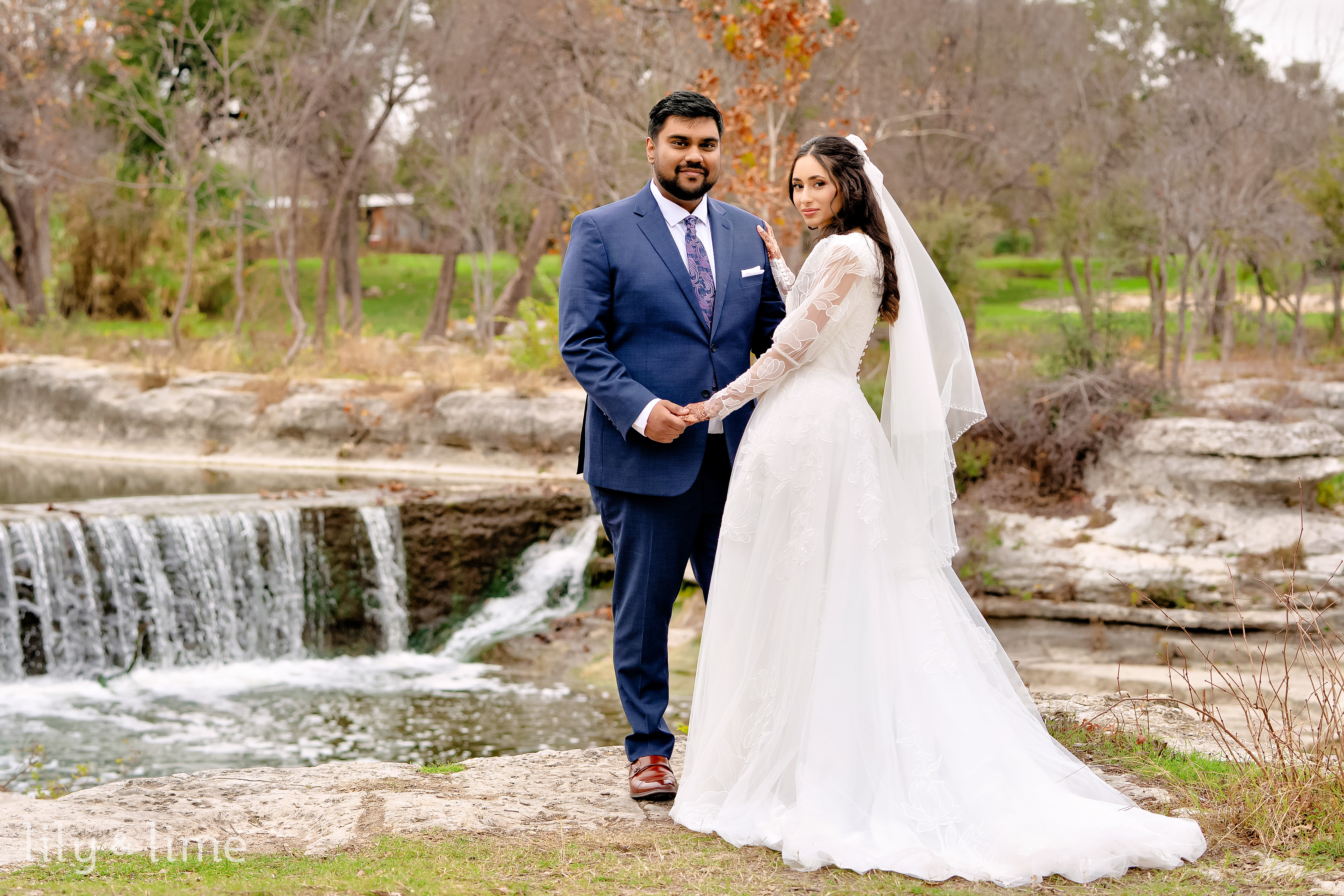 Following their heartfelt ceremony, Nada and Tasrif stole away for some quiet moments together. They opted for beautiful wedding portraits set against a gorgeous natural landscape. The lush greenery and serene natural elements of the Austin scenery provided a stunning, organic backdrop. Our Austin wedding photographer captured the couple’s deep connection, with each photo punctuated by the soft winter light filtering through the trees, creating timeless images of their love.