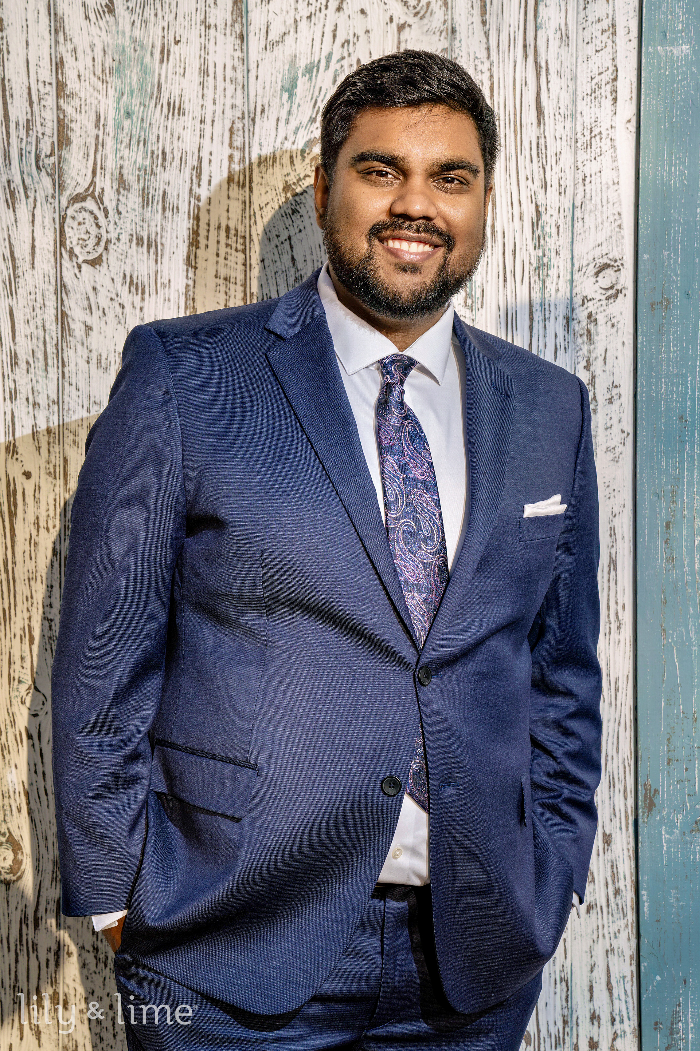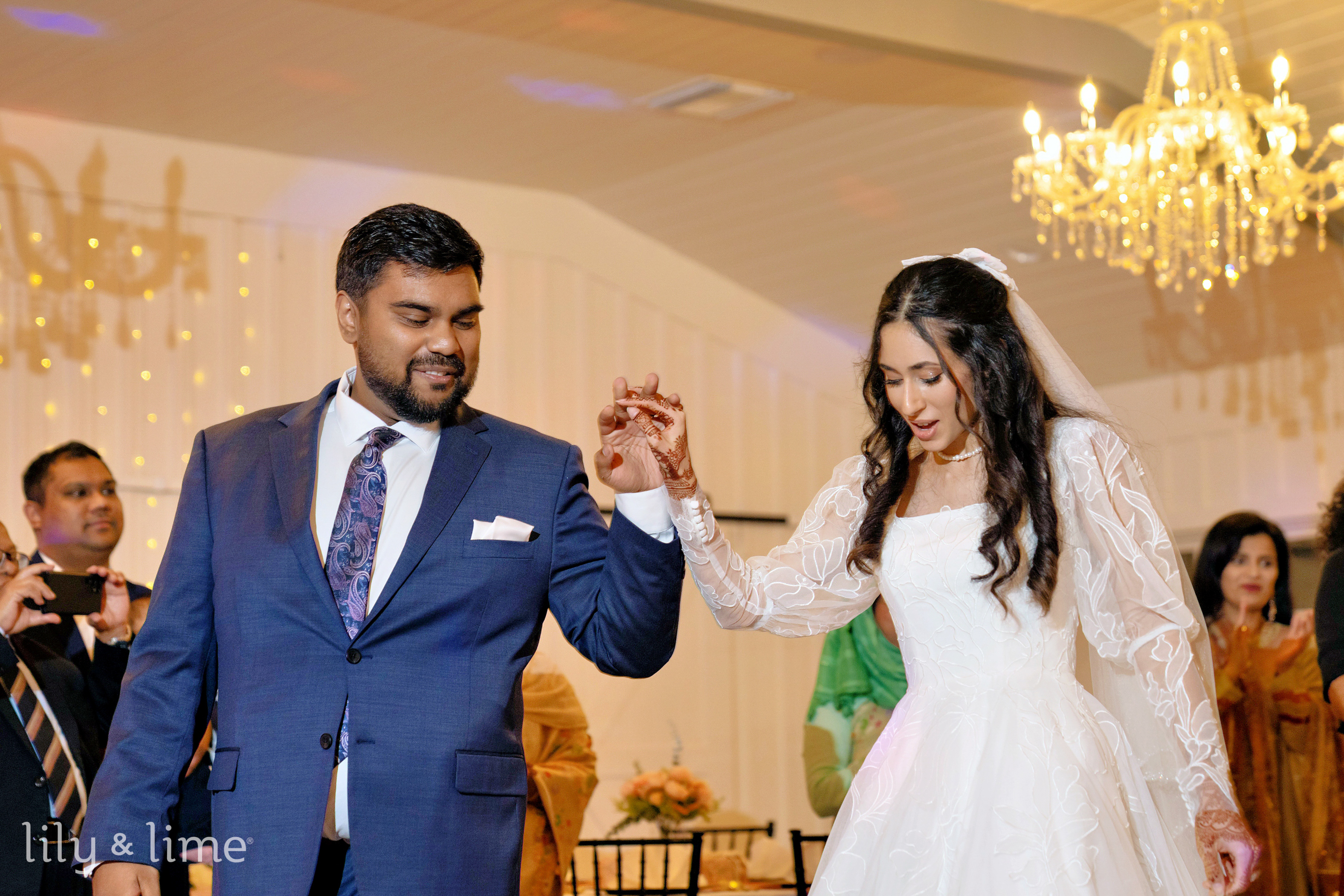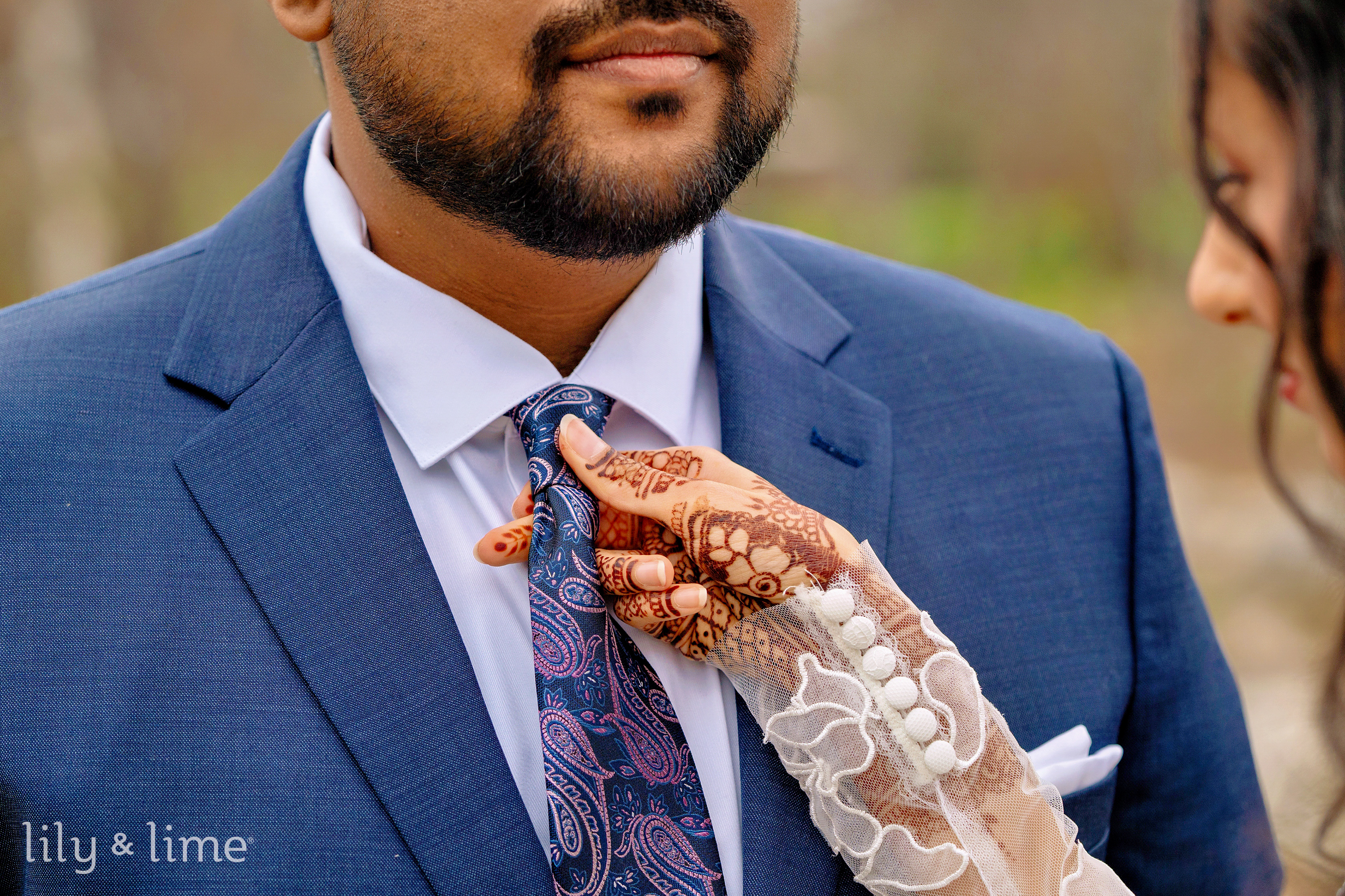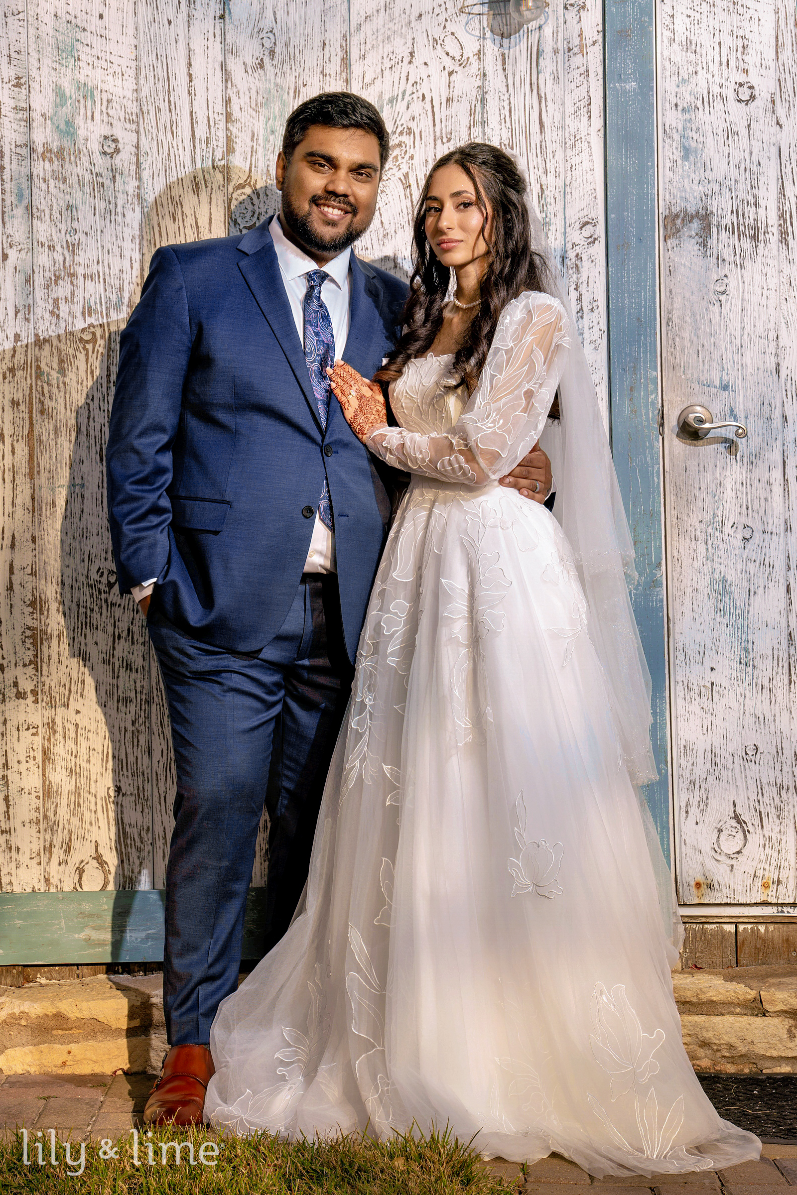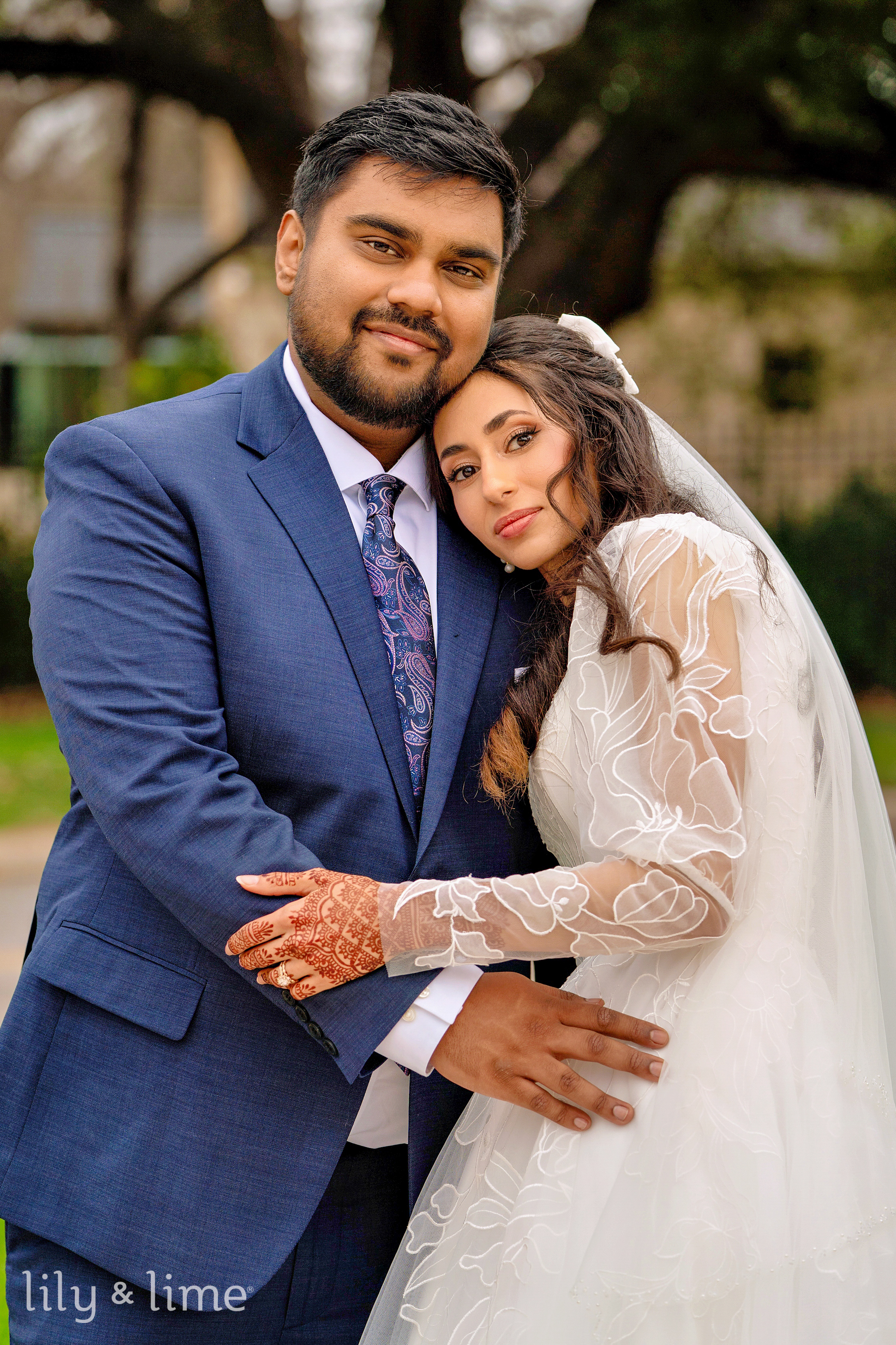 Nada and Tasrif’s Austin wedding day was a story of elegance, warmth, and quiet romance, beginning with moments of calm anticipation. In their respective suites, the couple prepared for their new chapter. The air buzzed with excitement as our photographers captured the beautiful getting-ready photos. Nada transformed into a breathtaking bride, choosing a chic, full-sleeved wedding dress that featured delicate lace sleeves, a sophisticated square neckline, and a classic A-line silhouette. The buttoned-down back added a touch of vintage charm. Her look was perfected with an elegant open hairstyle, a flowing cathedral-length veil, and flawless neutral bridal makeup that highlighted her natural beauty. Meanwhile, Tasrif prepared for his big day, looking completely dapper in a sharp two-piece blue wedding suit. He paired it with a crisp white formal shirt, polished brown formal shoes, a stylish paisley blue necktie, and a neat white pocket square.