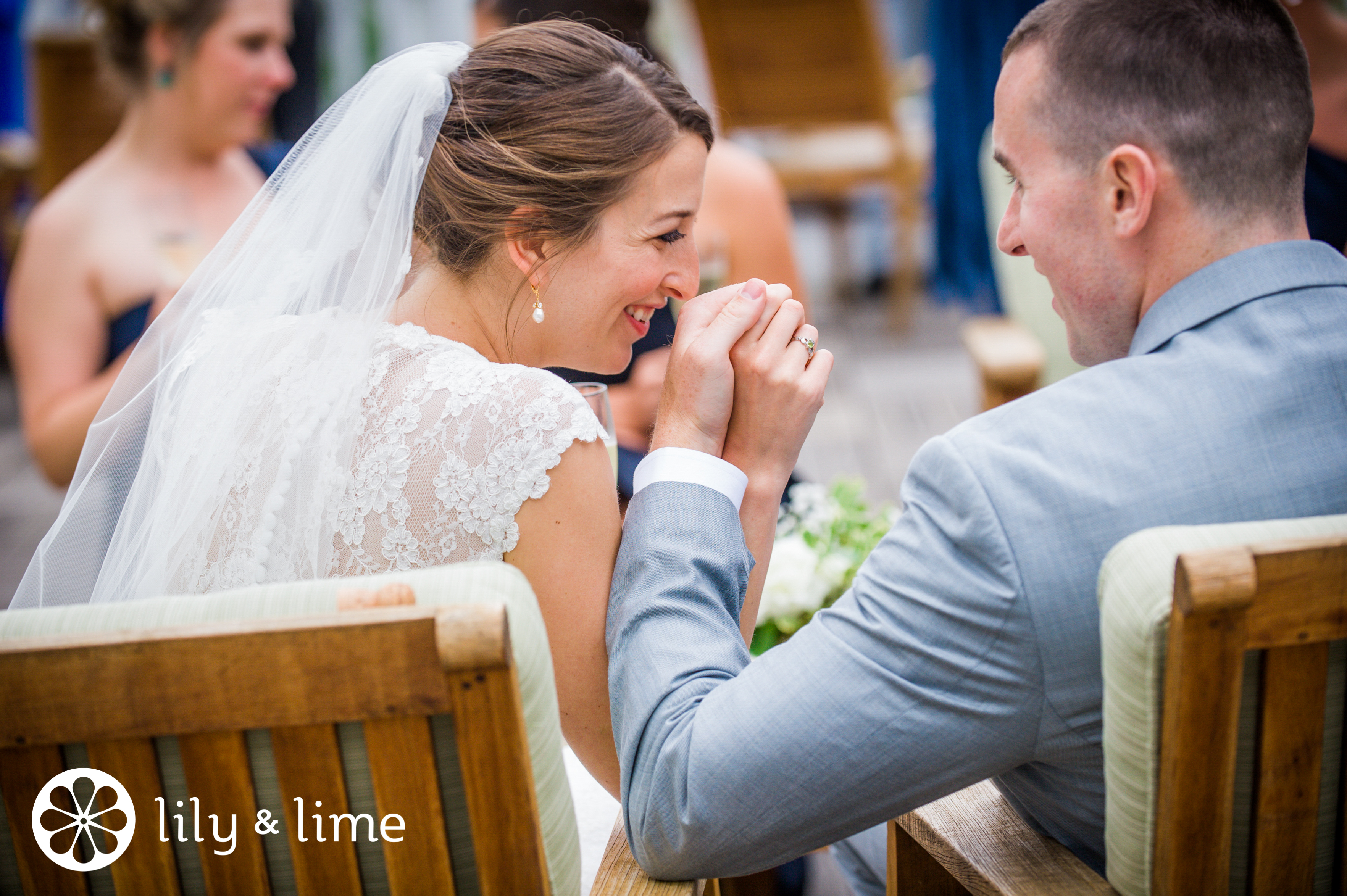The bouquet, the bouquet! You spent all that time picking out the perfect one*, so make sure it’s visible to the camera -- Even if that means handing it over to your groom for a few minutes!