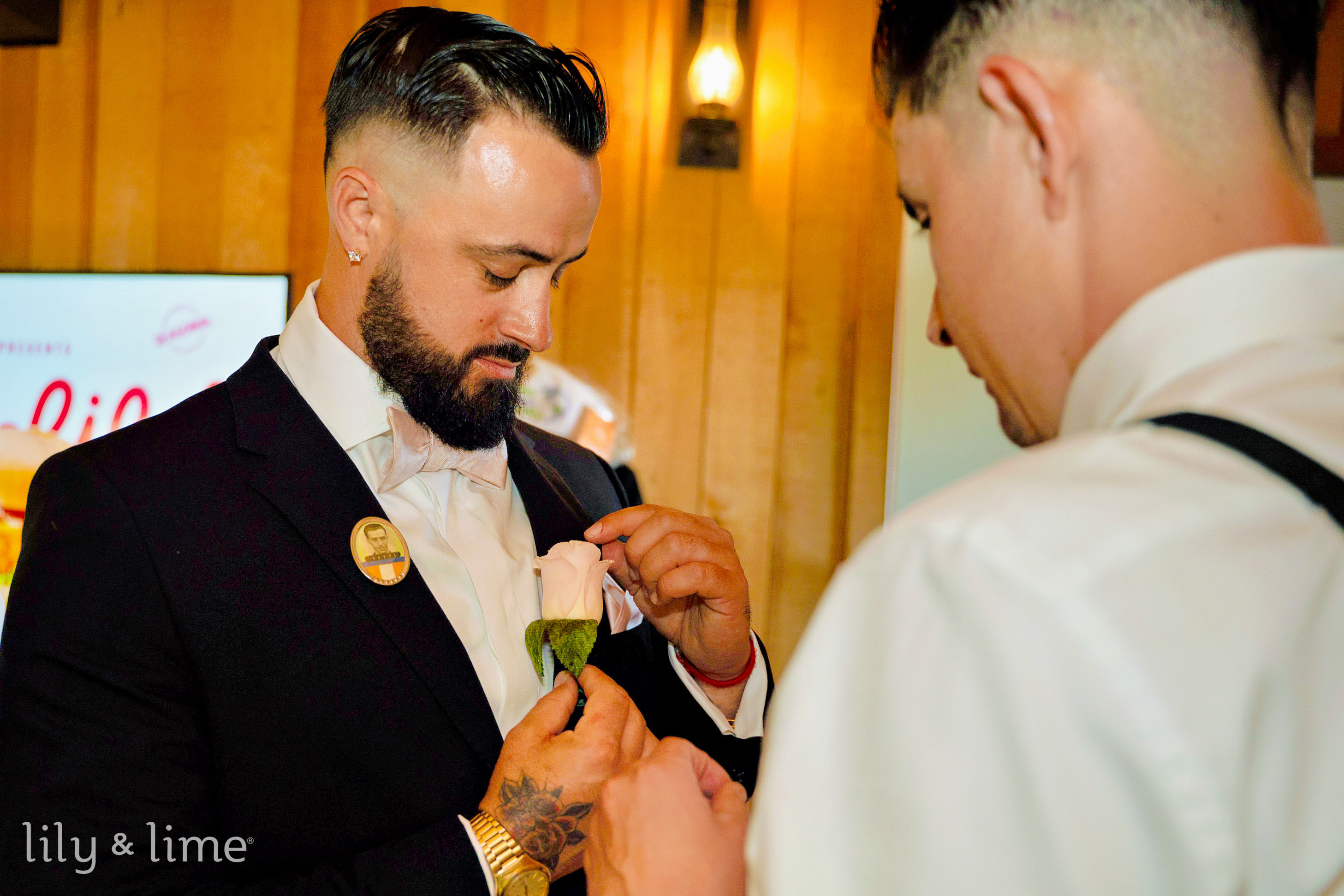 The day began with getting-ready photos capturing the anticipation and excitement in their respective suites. Rebecca’s bridal suite was a hub of joy, with her bridesmaids donning personalized robes, sharing drinks, and laughing together. The photographer’s lens caught every glimmer of emotion, from the intricate detailing of Rebecca’s chic wedding dress to the sparkling custom cufflinks Austin received as a gift. The couple exchanged letters and wedding gifts provided intimate moments that set the tone for this emotional and heartfelt wedding day.
