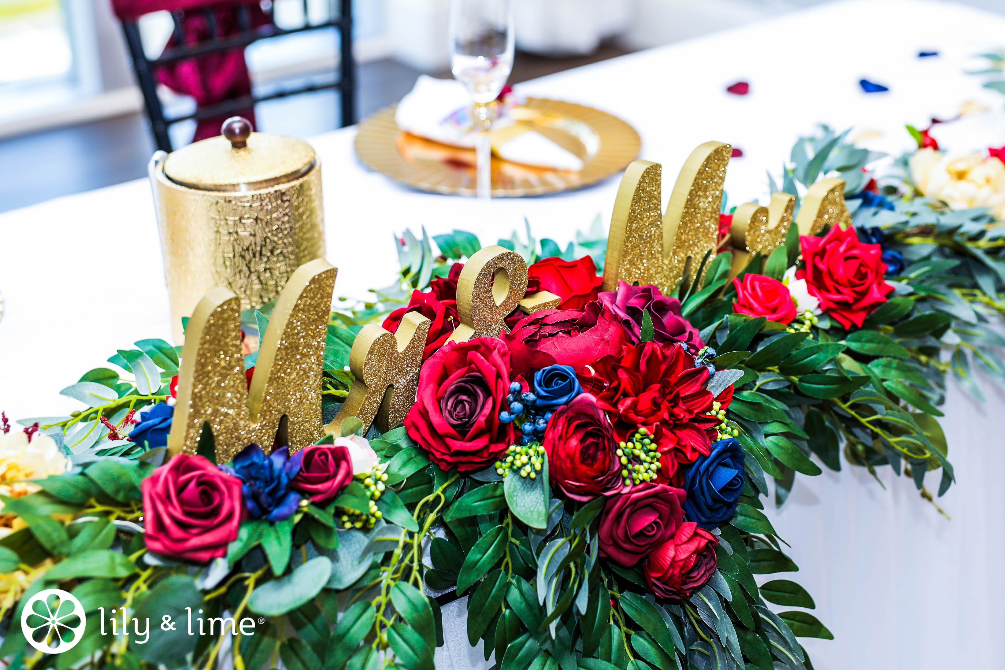 Baroque Couple Wedding Cake Topper: A table topper is another way to drive the message home. Baroque wedding cake toppers can be quite challenging to find, so feel free to scour Etsy, or you can also try DIYing them. Nothing that a bit of classy lettering and gold spray paint can’t solve.
