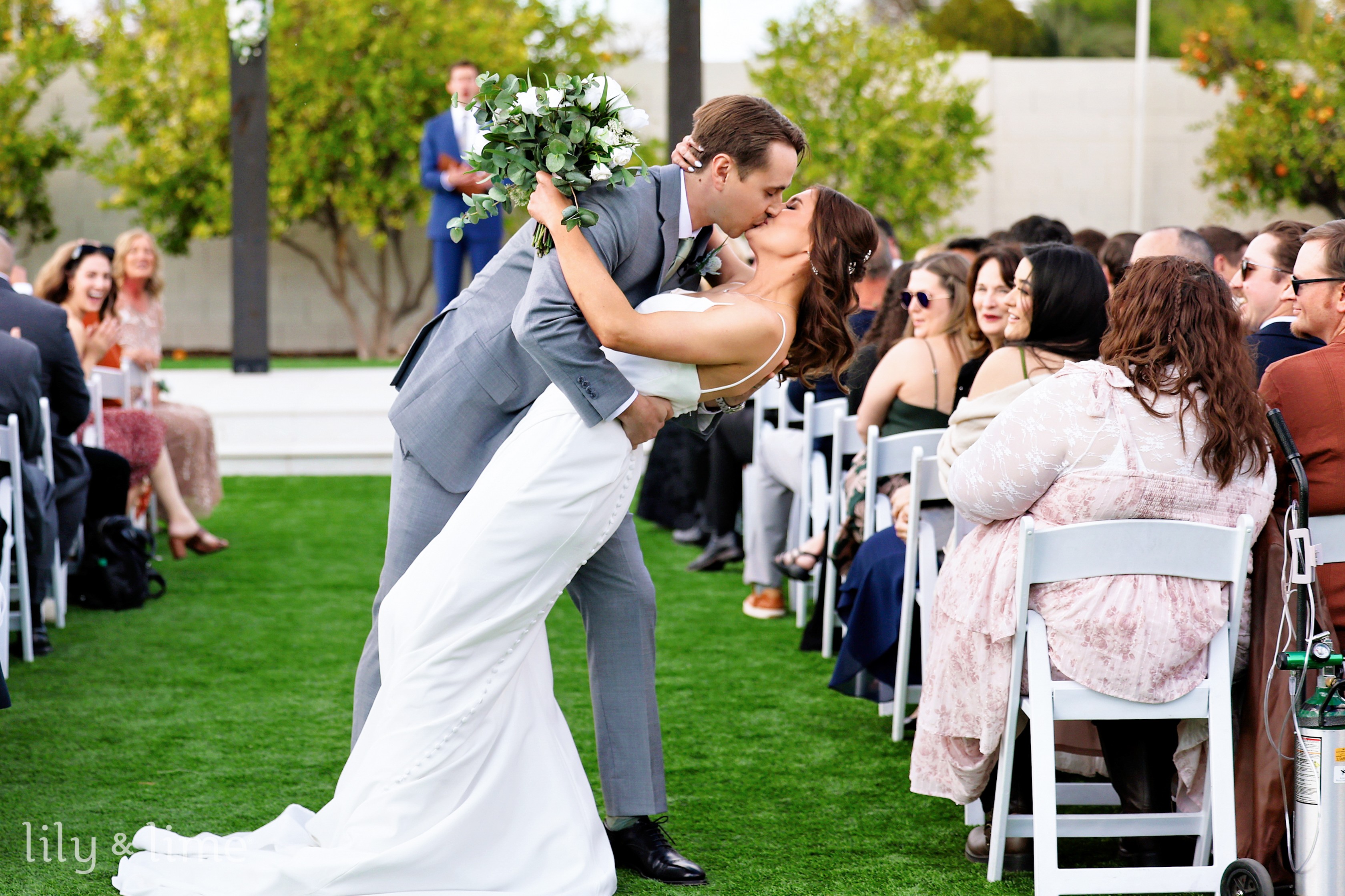 Following the "I dos," Melissa and Cole opted for beautiful wedding group portraits and family portraits. We also captured stunning groomsmen portraits and bridesmaid photographs around the venue's lush grounds. The couple photos were particularly striking, punctuated by the gorgeous natural landscape, where the greenery and nature provided a fresh contrast to the desert setting.