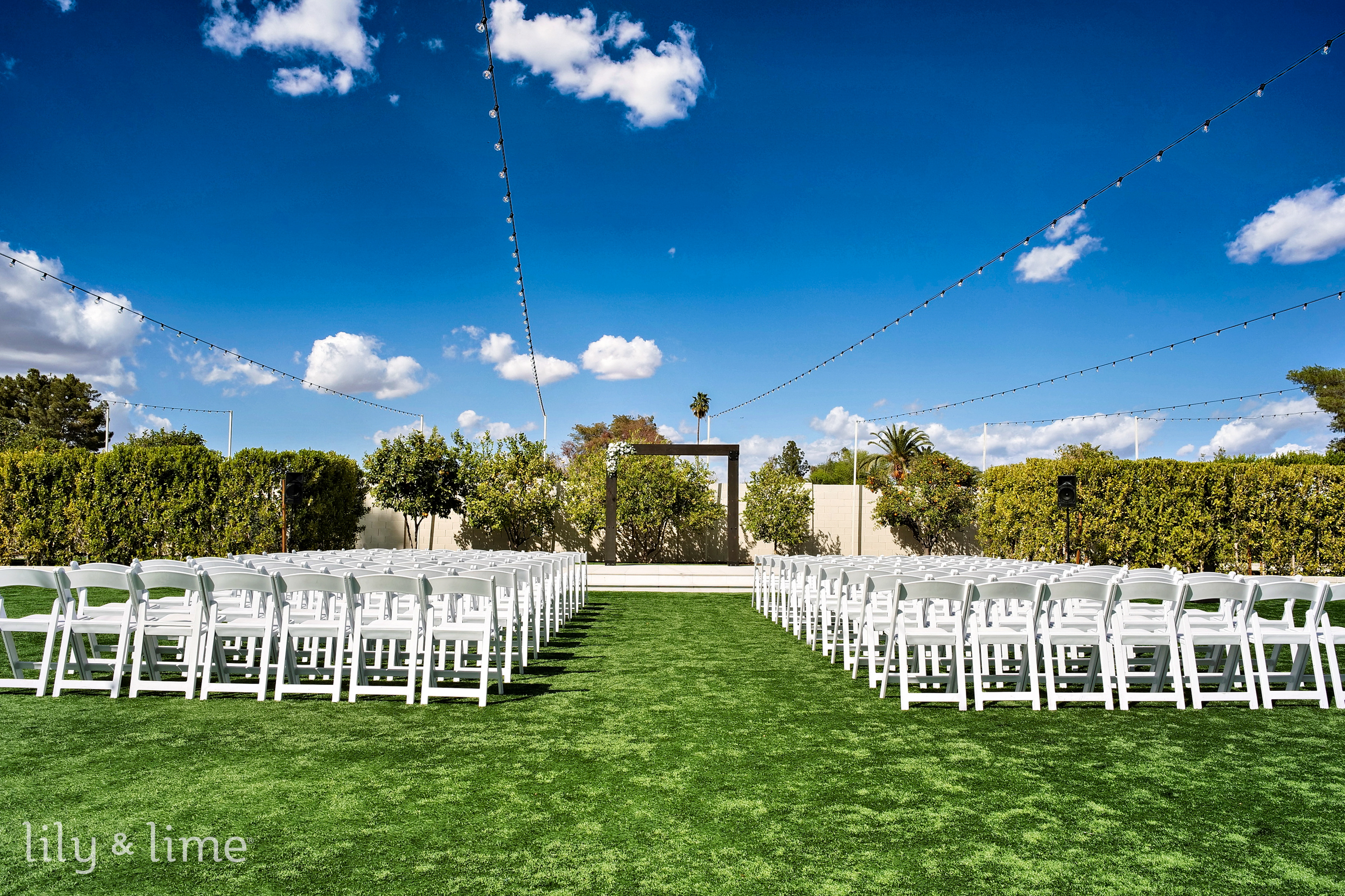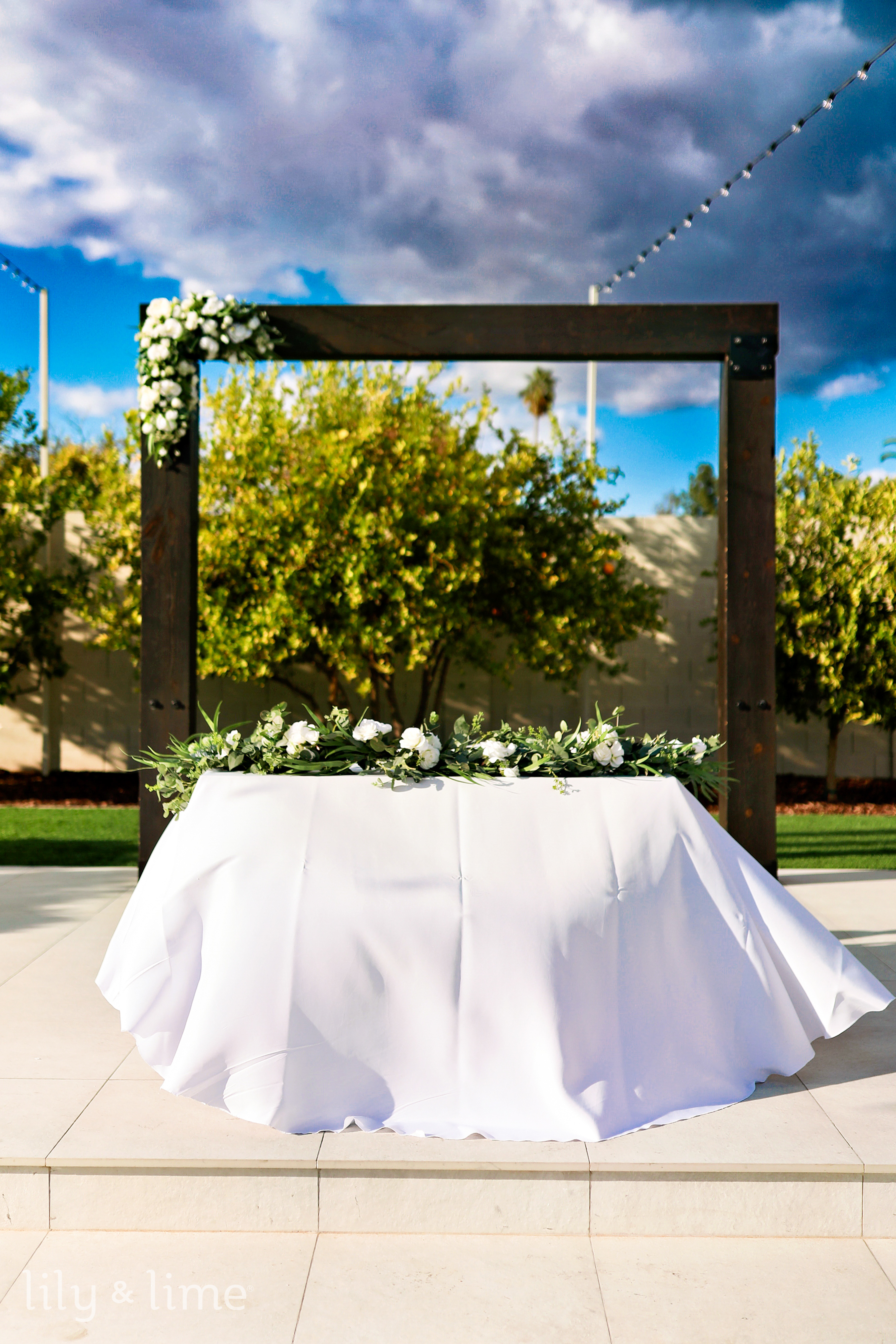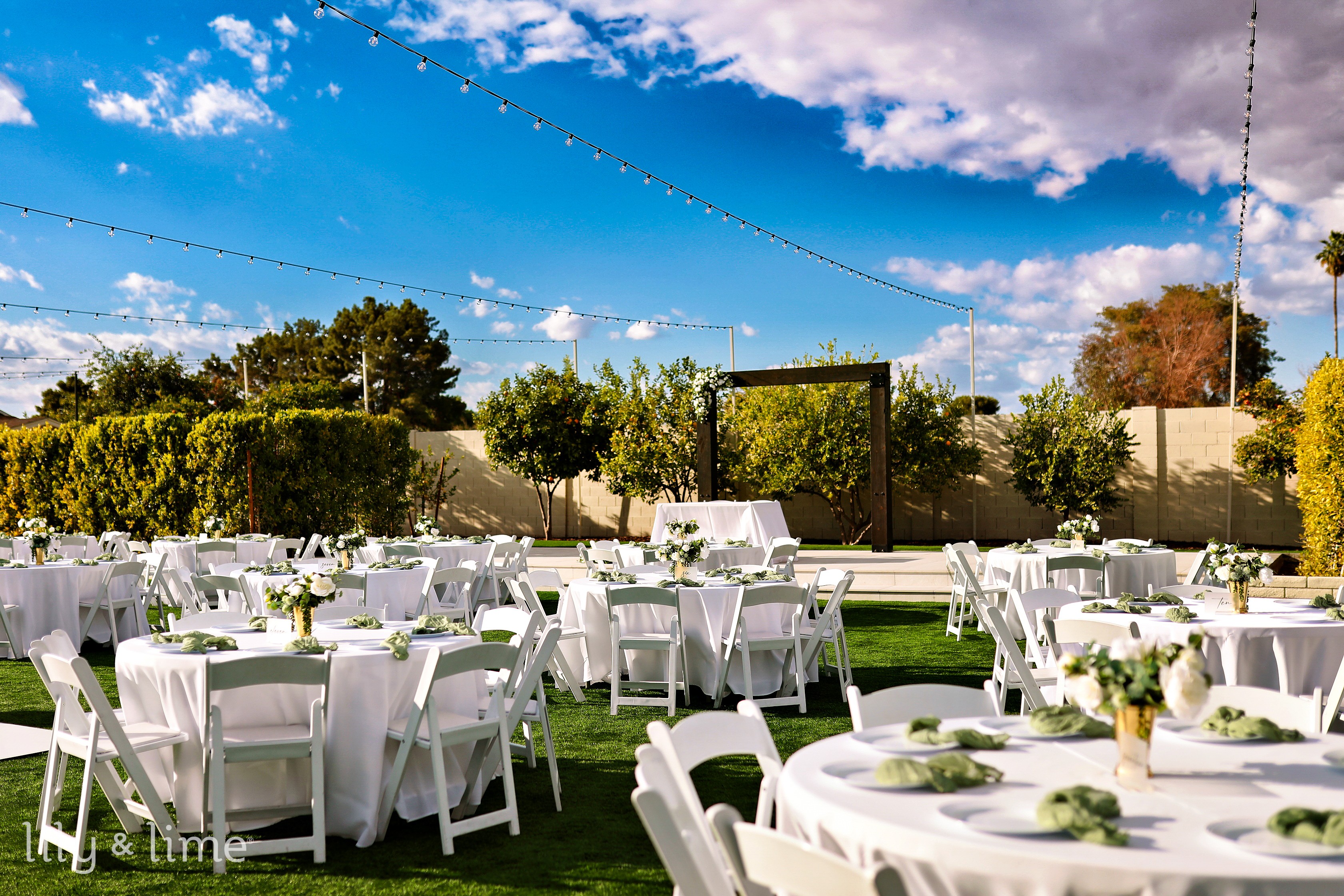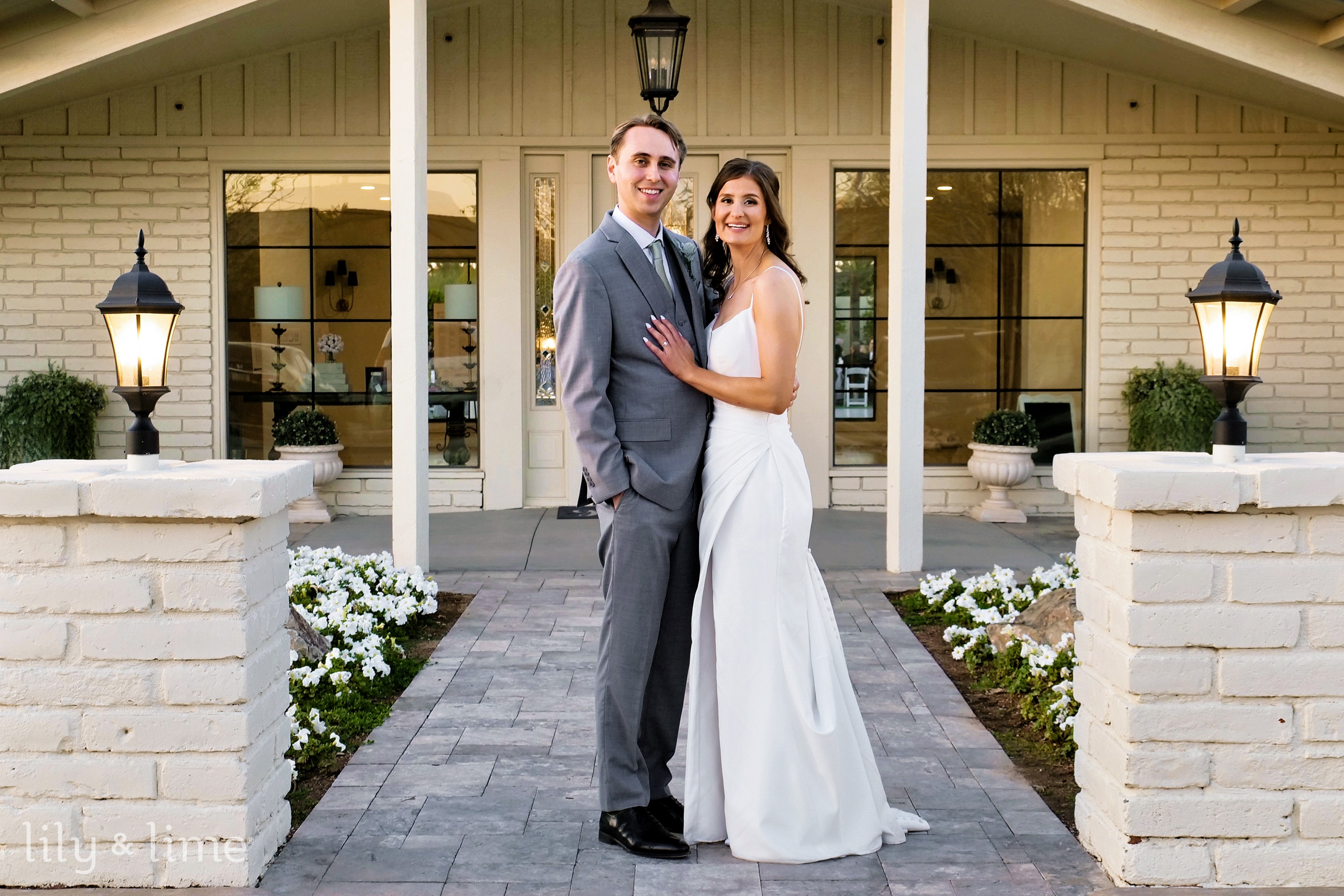 The charm of Gather Estate lies in its thoughtful desert wedding details. As dusk falls, strands of bistro lights crisscross overhead, casting a warm, romantic glow over the reception area. The property features a modern, white-washed house that serves as a chic focal point, offering a clean, contemporary contrast to the organic surroundings. It is a space that feels both homey and luxurious, perfect for couples who want their wedding to feel like a relaxed, yet elegant, dinner party under the stars.