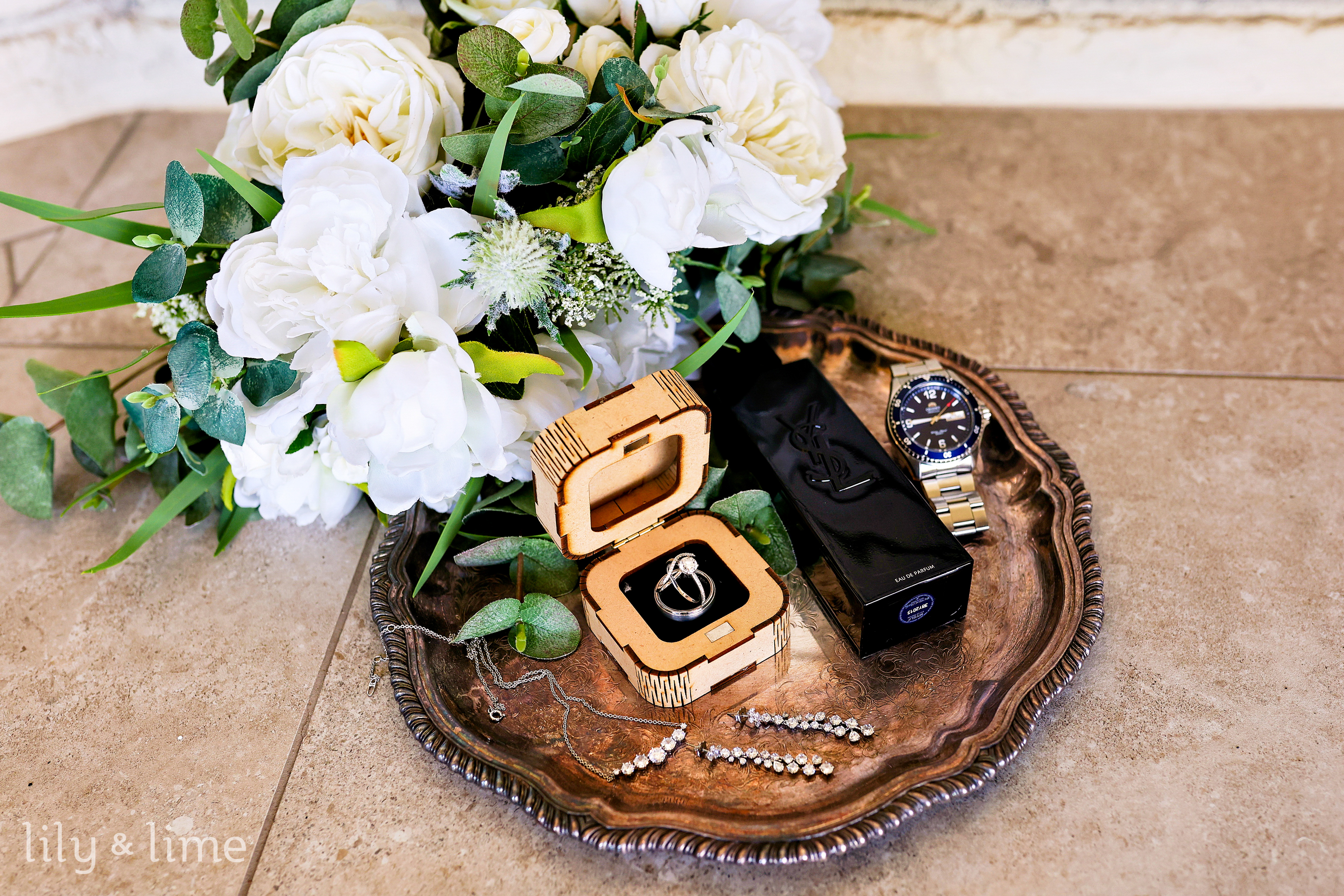 The day began in separate suites, buzzing with excitement. We captured beautiful, elegant wedding details, including Melissa's pearl bridal earrings, chic wedding shoes, and stunning ring photos that glittered against the light. The elegant white invitations set a tone of classic simplicity. In the bridal suite, Melissa and her bridesmaids relaxed in beautiful getting-ready robes, sharing laughs and champagne. A particularly touching moment unfolded as Melissa got ready with her mother, creating beautiful mother-daughter wedding portraits that spoke of generations of love. Meanwhile, the groom and his groomsmen prepared in their own suite. The stunning groomsmen portraits revealed the fun moments the men spent together, easing pre-wedding jitters with camaraderie.