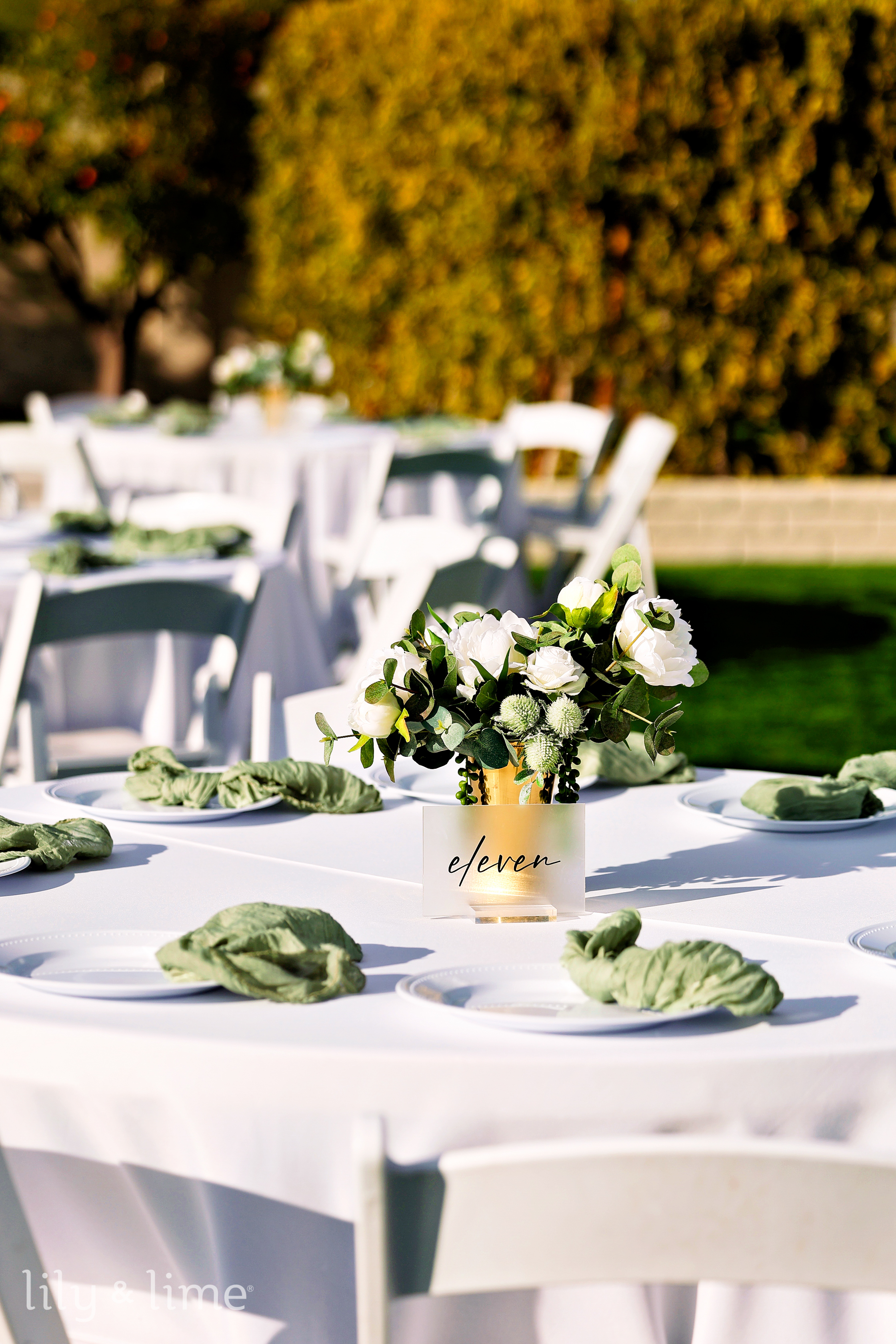 The celebration continued with an afternoon reception in an elegant setting. The outdoor wedding reception was a visual delight, featuring white wedding sign ideas and charming dog wedding details that honored their furry friend. The tables were adorned with greenery centerpieces and round wedding table decor ideas, while wedding bar signs guided guests to refreshments. A beautiful food display invited guests to indulge, and a classic Jenga-themed guestbook station added a playful touch.
