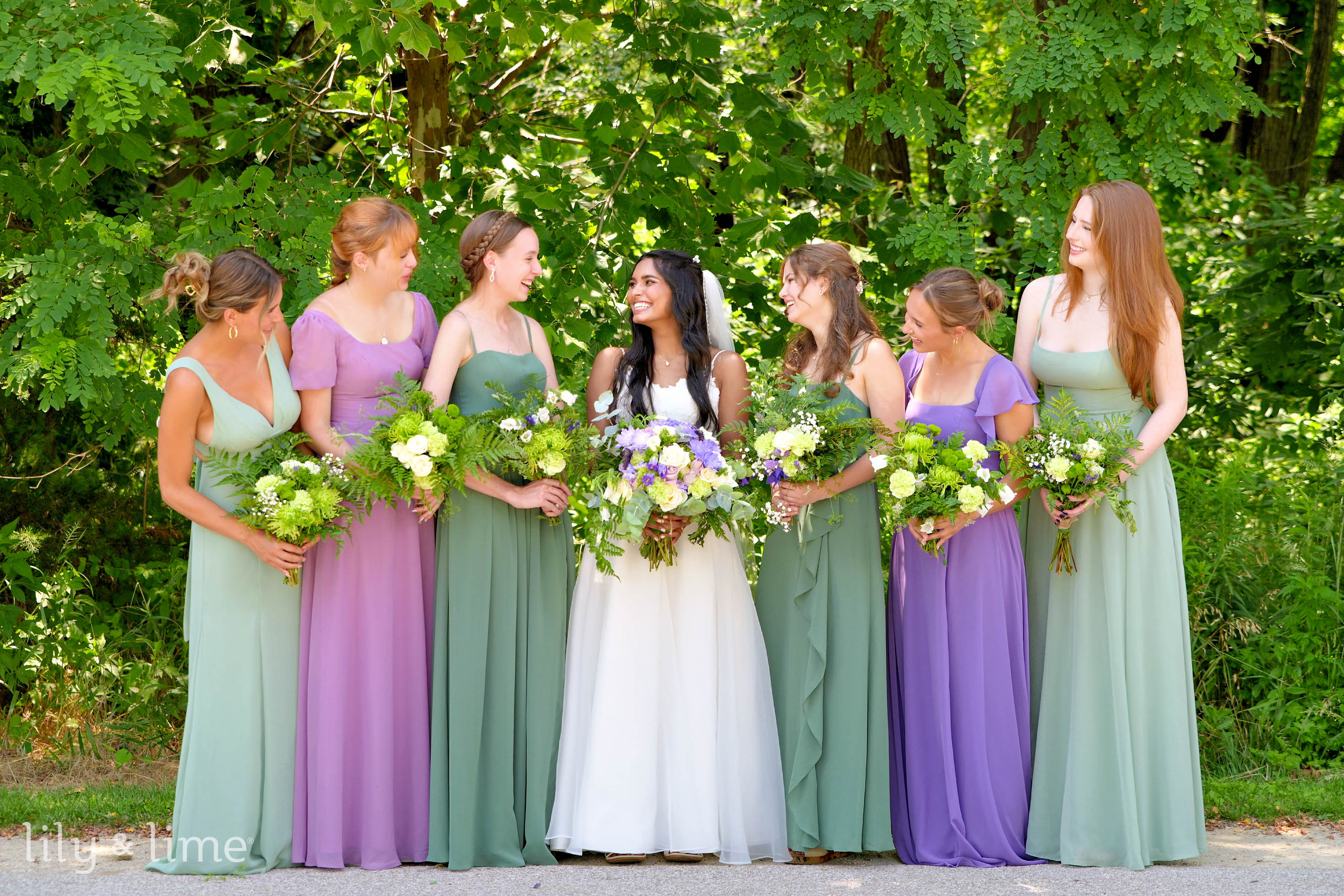 After the ceremony, group portraits brought together family and friends, with groomsmen and bridesmaids posing against the venue’s natural, picturesque backdrops. The highlight, however, was Ruth and Jack’s couple photos. Framed by verdant greenery, they moved effortlessly between intimate moments and grand shots, showcasing the Indianapolis landscape in perfect symmetry with their love.