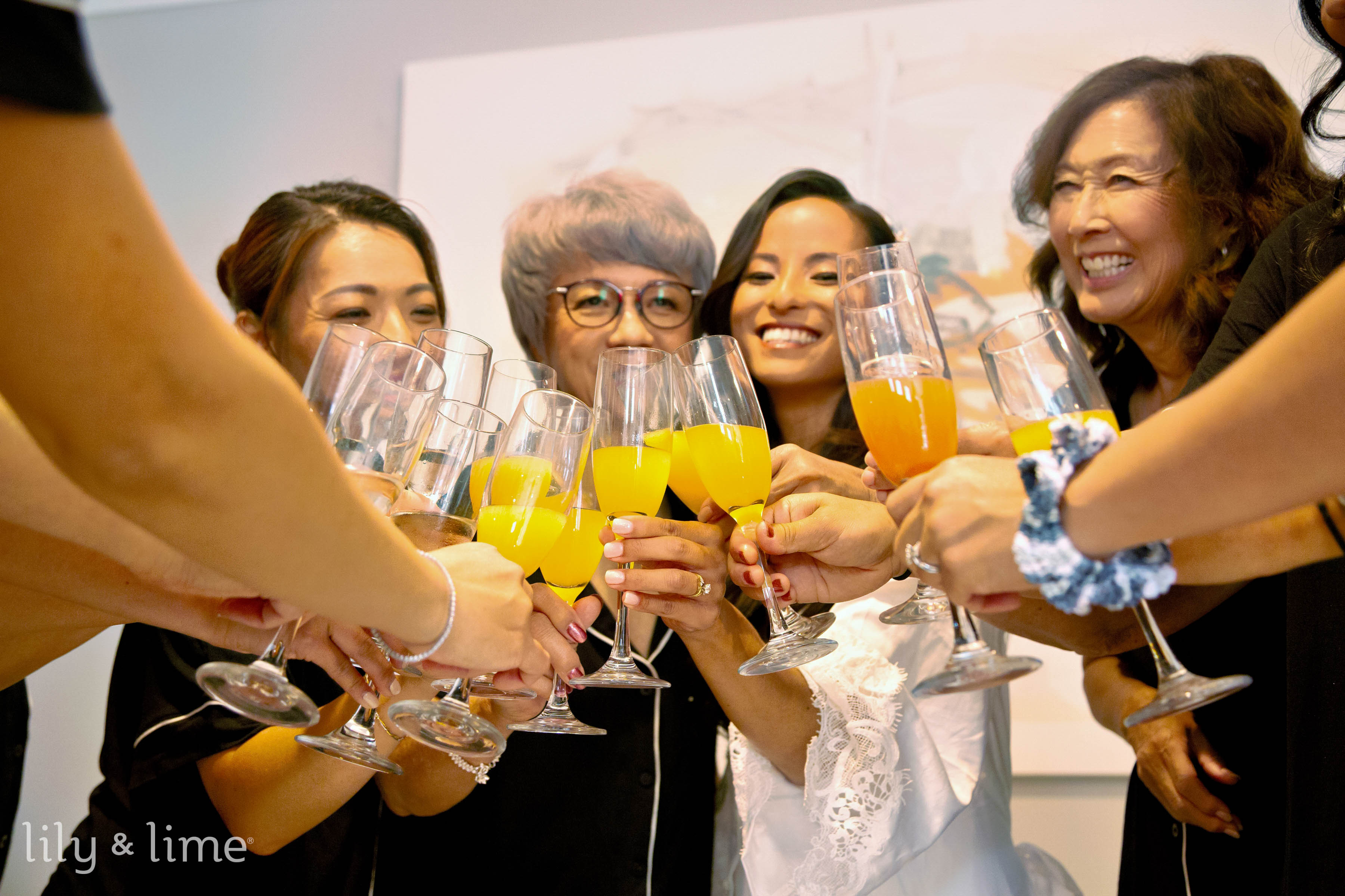 The wedding day of Ryan and Carol in San Diego was a breathtaking affair, filled with personal touches and palpable emotion from start to finish. The day began with our San Diego wedding photographer capturing beautiful getting-ready photos as the couple prepared in their respective suites. We documented the exquisite wedding day details that told their story: the sparkling rings, elegant invitations, and the groom’s dapper accessories, each element a testament to their thoughtful planning. In the bridal suite, Carol and her bridesmaids shared drinks and laughter, creating unforgettable memories in their matching black pajamas. Meanwhile, the groom and his groomsmen shared their own fun moments, their camaraderie evident in the stunning portraits taken before the main event.