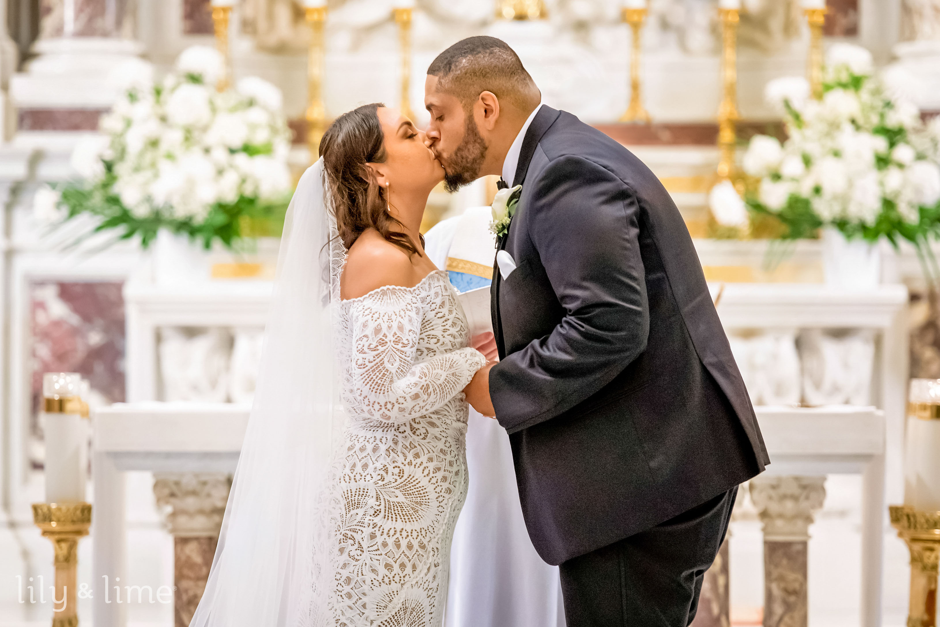 The couple shared an emotional first-look session before the ceremony, capturing intimate moments that spoke volumes of their love. This moment paved the way for the wedding ceremony, which was set in the majestic church adorned with white florals and greenery. The venue’s stunning architecture added depth and charm to the ceremony photos, while the heartfelt emotions exchanged during the vows made each captured frame truly poignant.