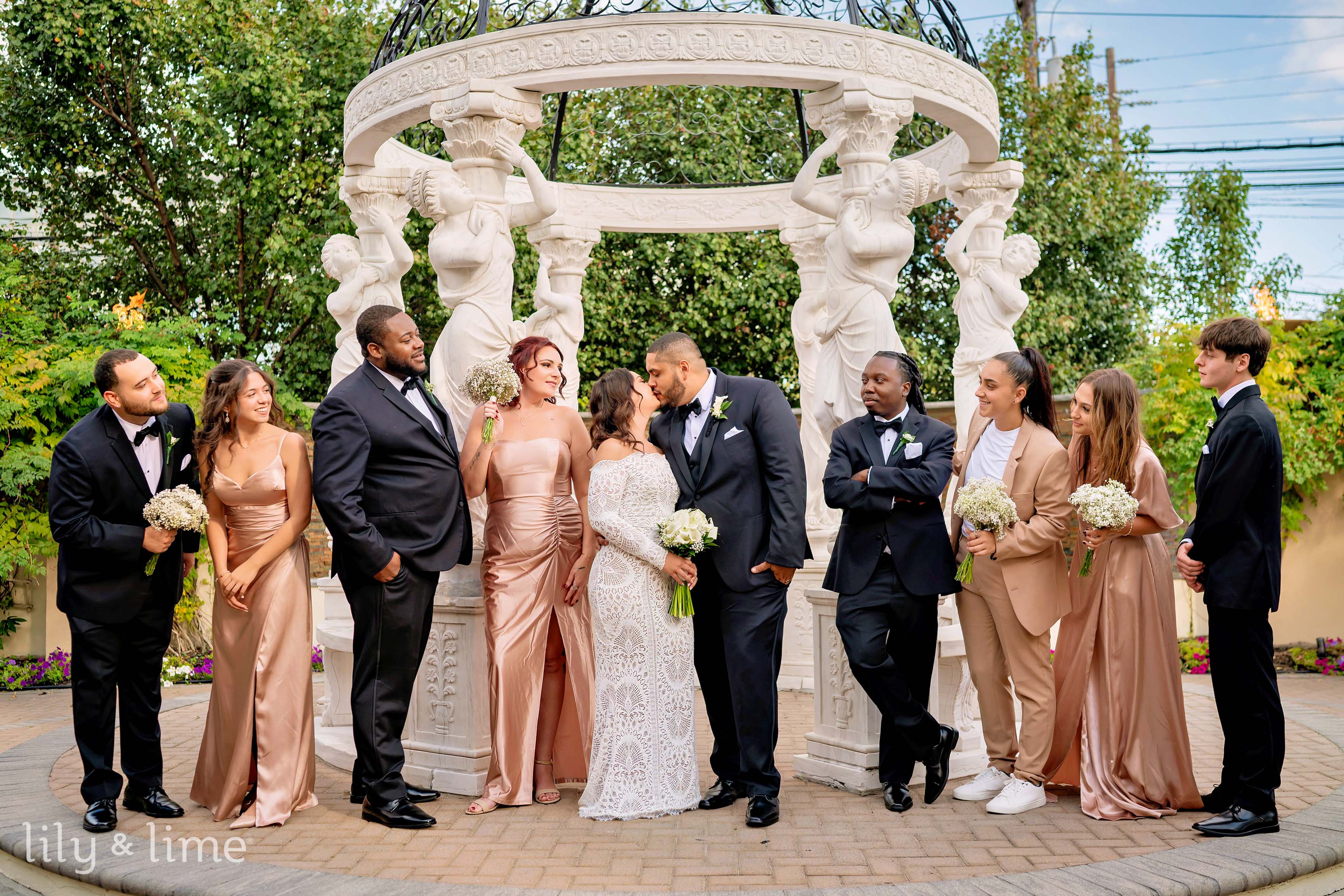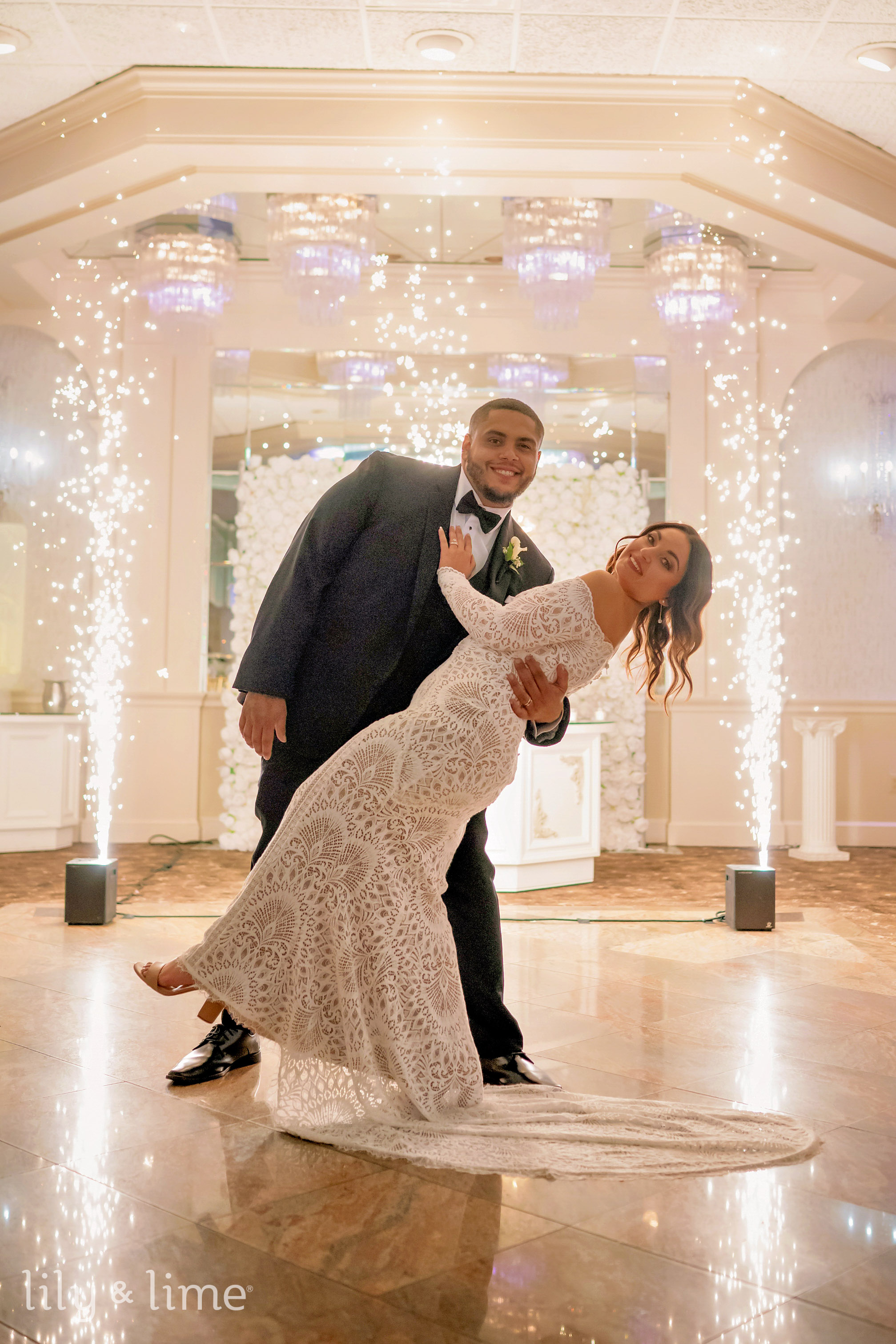 For their reception, the couple selected 122 Moonachie Ave, home of The Graycliff, an extraordinary venue that seamlessly marries grandeur with versatility. The property offers several beautifully designed spaces, each with its own distinctive aesthetic. The Grand Ballroom, with its polished flooring, luxurious chandeliers, and stunning gazebos, exudes both elegance and romance. Meanwhile, the lush outdoor areas and the Grecian-style gazebo provide a picturesque setting for first-look photos or evening portraits. The modern yet welcoming interiors adapt effortlessly to creative décor and lighting, allowing Samantha and Daniel to craft a reception that felt both intimate and spectacular. This venue’s meticulous attention to design provided an unforgettable backdrop for their celebration.