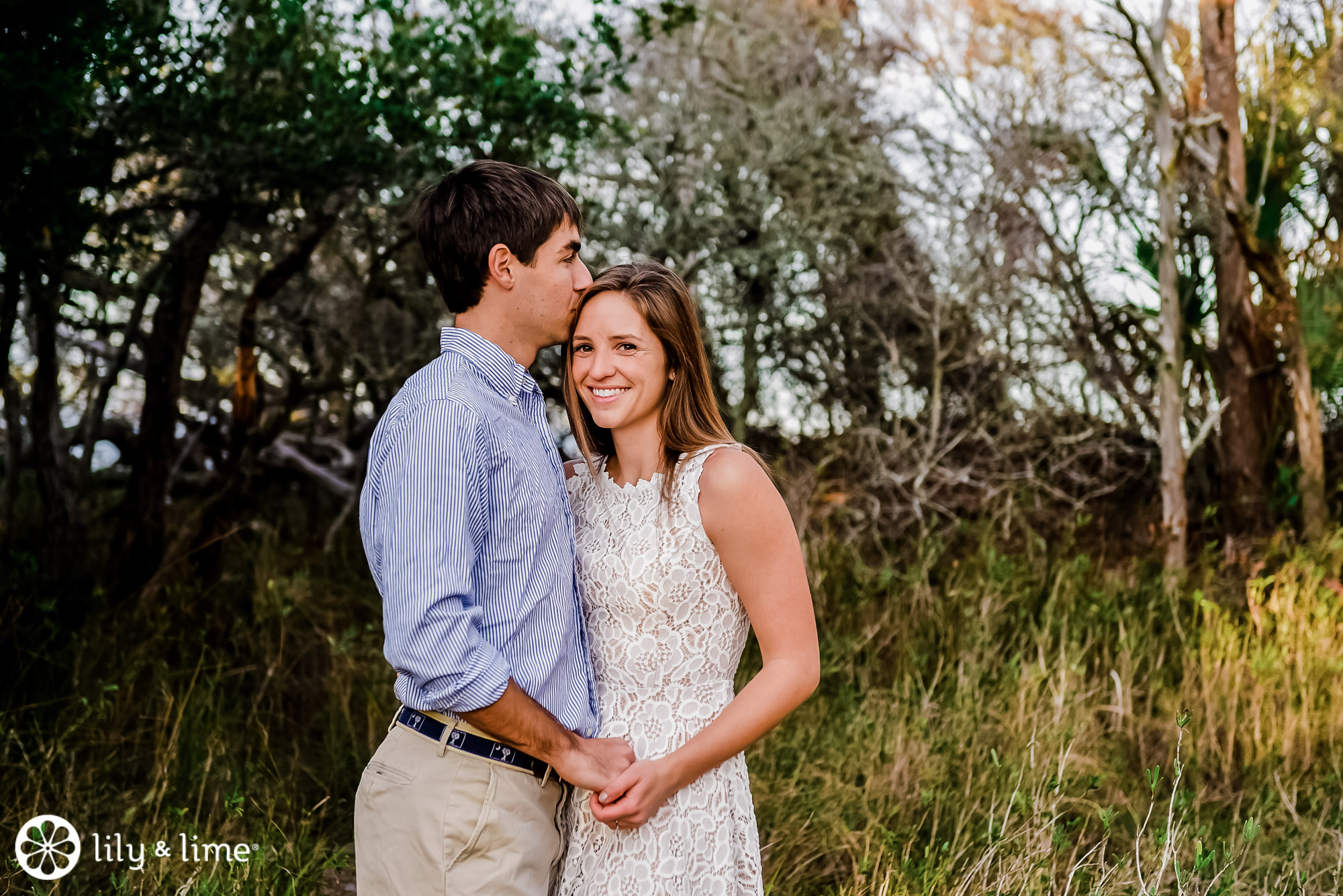 The duo kept it casual and cozy (they donned something warmer for those fall temps!) for their November stroll down the beach. Sarah paired a cozy vest with a sharp white shirt while Connor wore a collared shirt topped with a blue flannel to keep him warm. First, they posed on the beach in front of the natural foliage before getting some lovely shots in front of the water. Of course, they couldn’t pass up a couple snaps with the lighthouse in the background!
