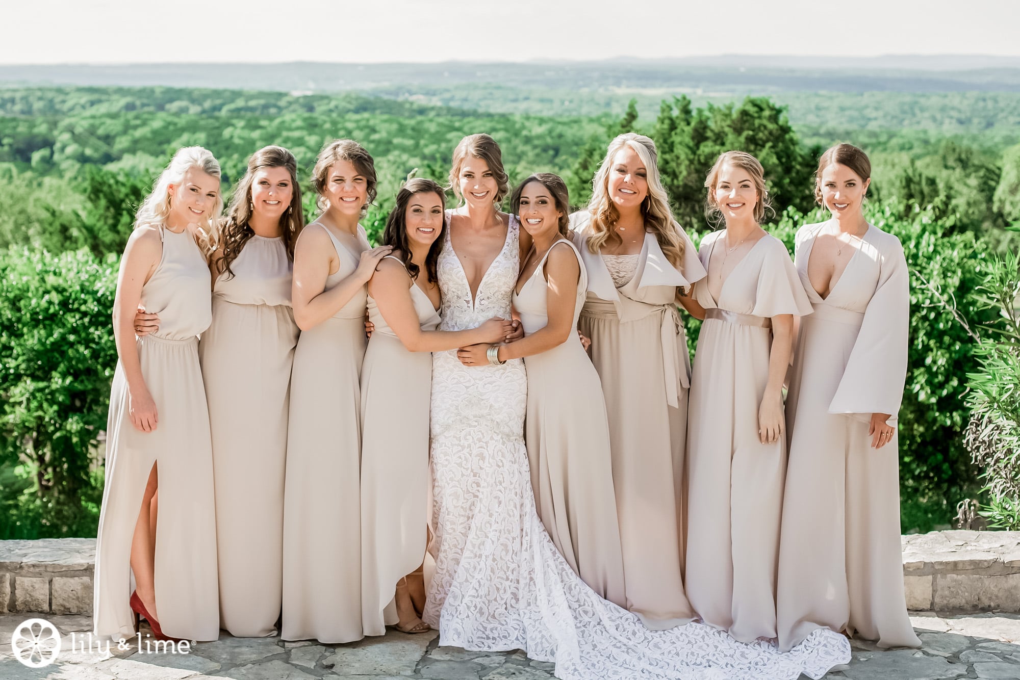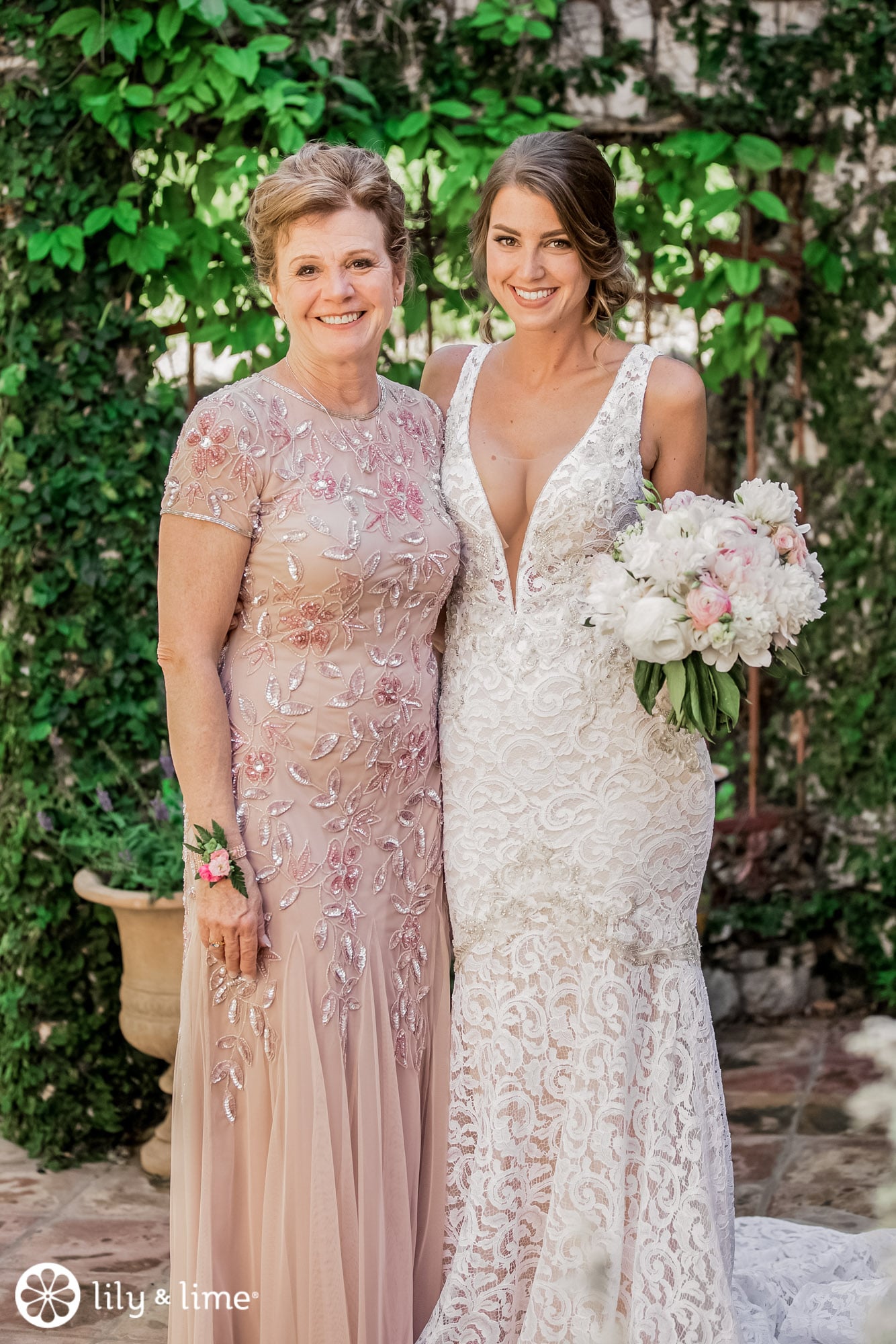 The day at Rancho Mirando started with Sarah getting ready. Her sister helped her into her dress, a sweet moment captured by their wedding photographer. The bridesmaids wore nude dresses in different silhouettes, offering each of the bridesmaids an opportunity to show her personal style while keeping the wedding party looking cohesive.