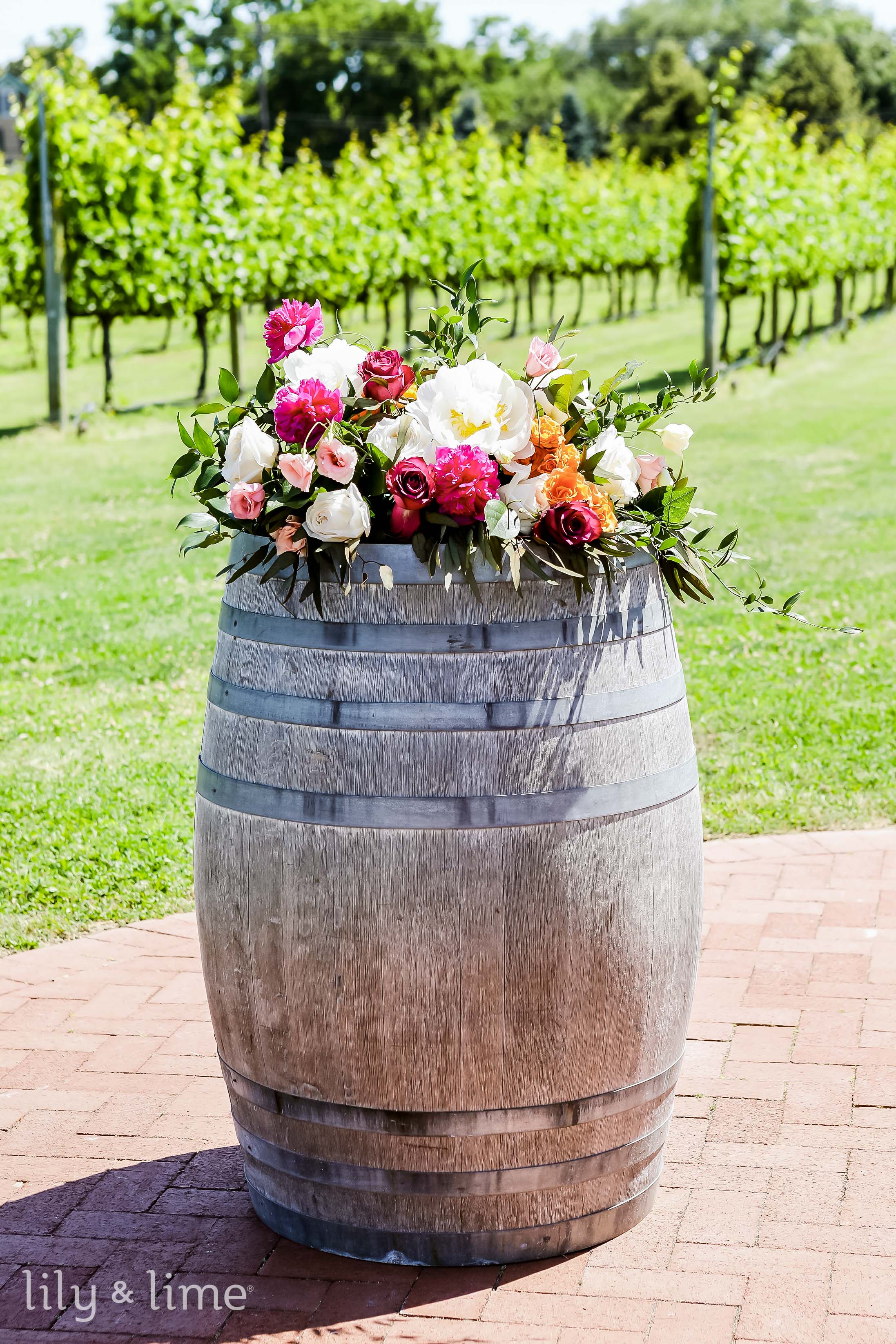 Speaking about rustic chic weddings, wine barrels in weddings can go beyond just winery or vineyard weddings. Rustic weddings are currently a hot trend, and among all the decorations, wine barrels stand out as truly unique and visually appealing pieces. Their vintage design brings a laid-back atmosphere to the entire event, making them immensely popular. Whether you want to infuse wine wedding details in your celebration or simply want to serve tasty wedding drinks in barrel cups, wine barrels can be a part of your wedding without taking over the rest of the details.