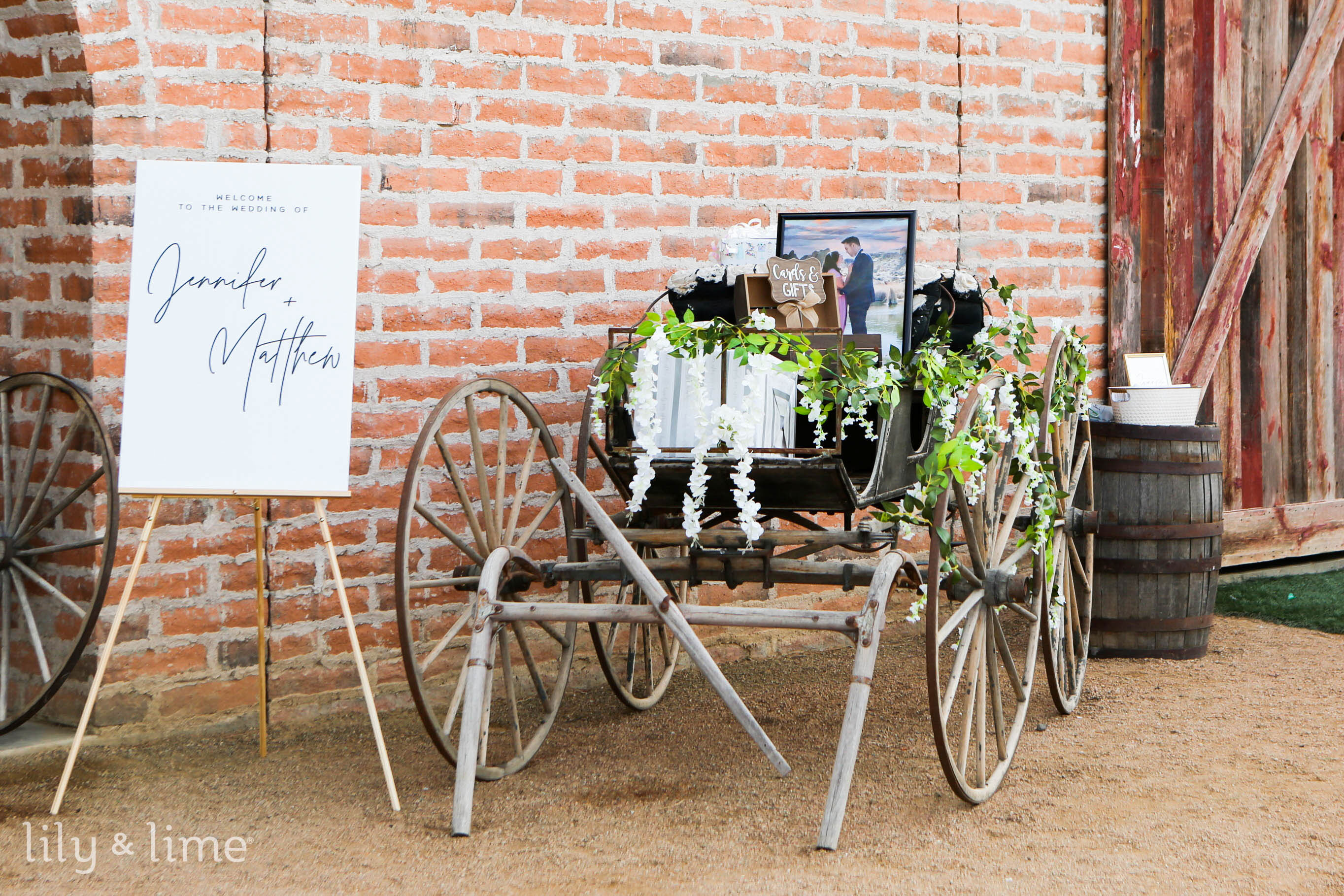 Create a charming wedding gift station where guests can leave their gifts and well wishes. Set up barrels with rustic décor and a sign inviting guests to contribute to the couple's happiness. It can become a central point of love and support, allowing guests to express their love and create lasting memories for the newlyweds.