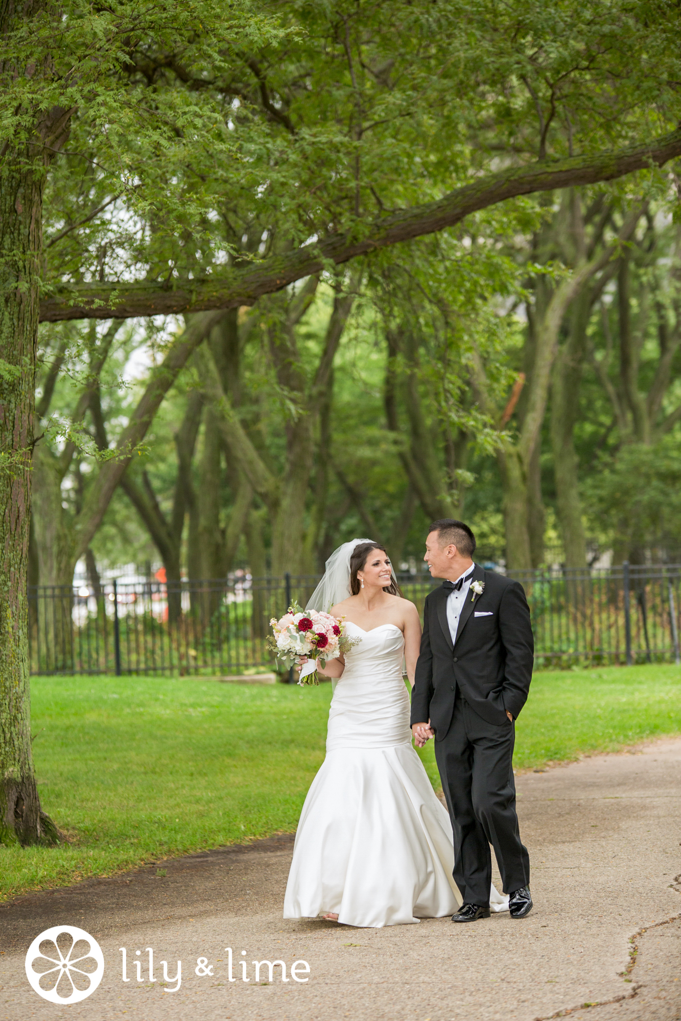 The couple’s wedding photos still shined despite the hazy atmosphere. With an overcast sky comes softened light, with no need to work around the harsh shadows created by direct sunlight! Lake Michigan and the Chicago skyline are iconic enough to withstand any fog, mist or rain.