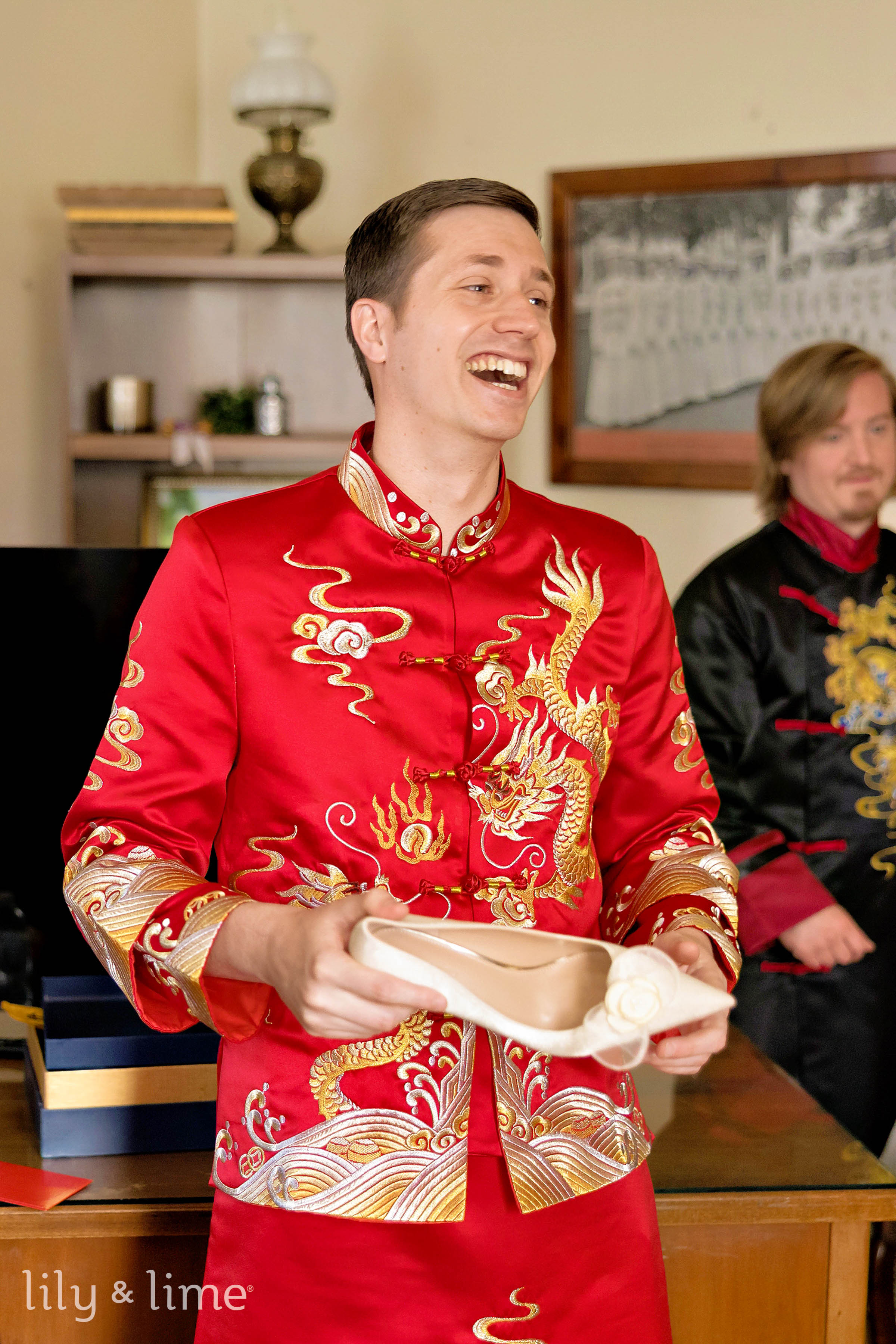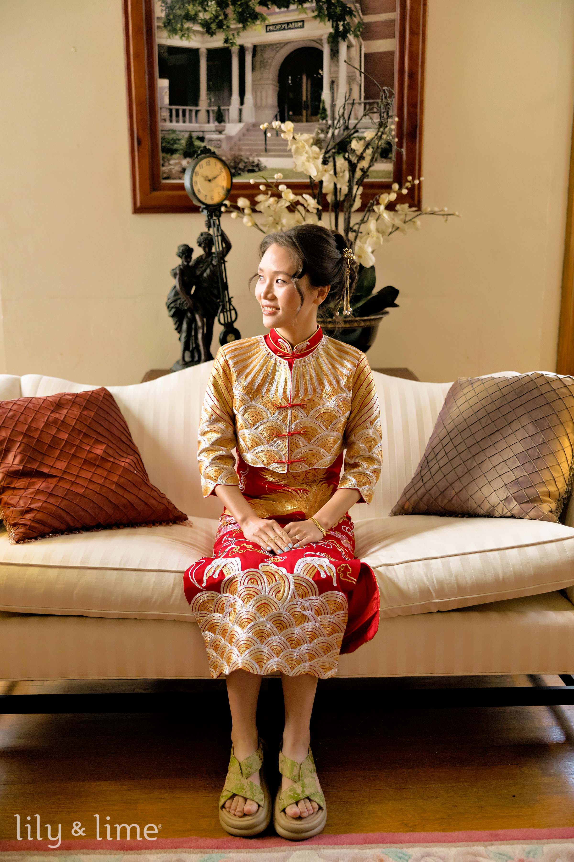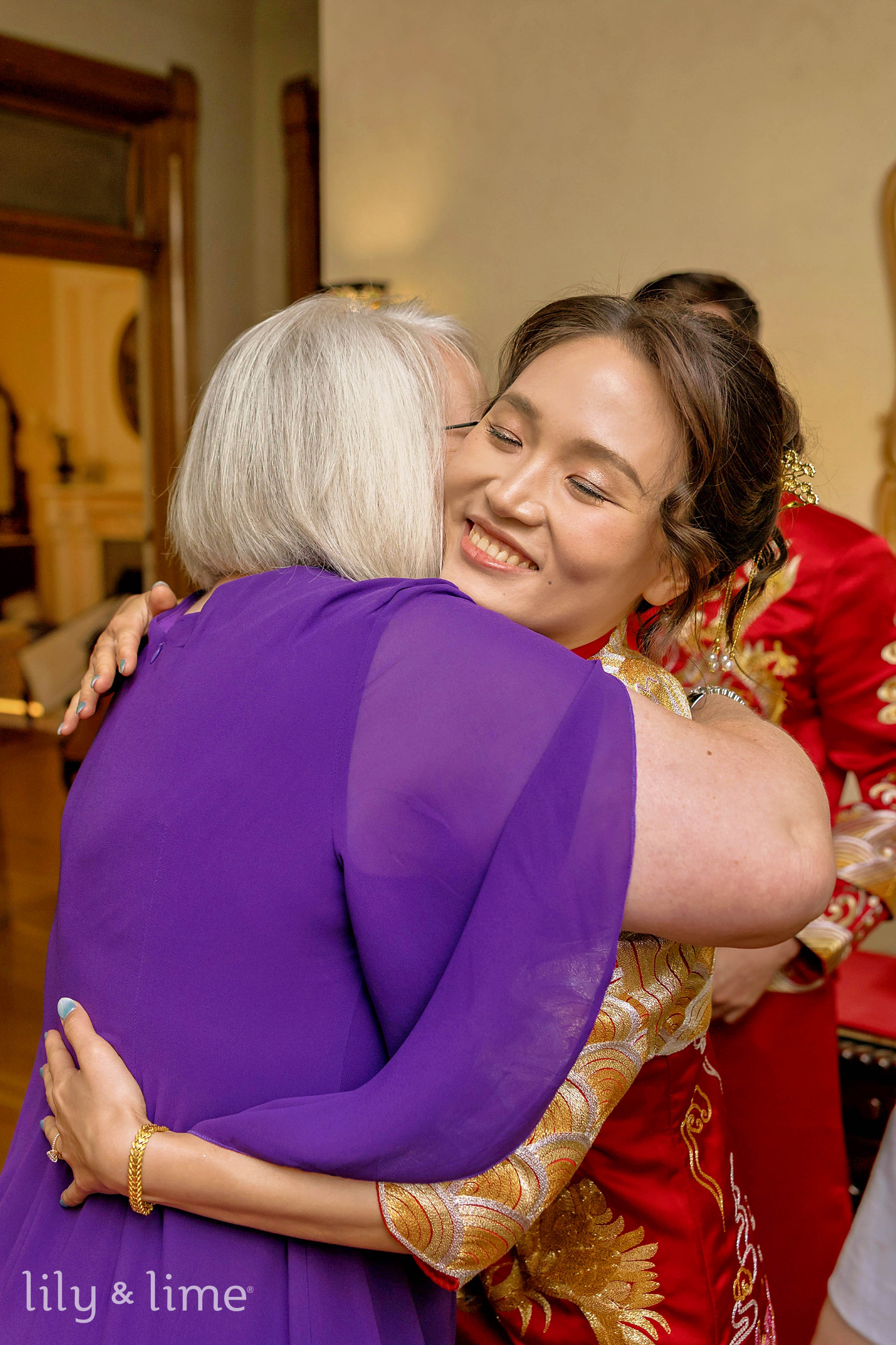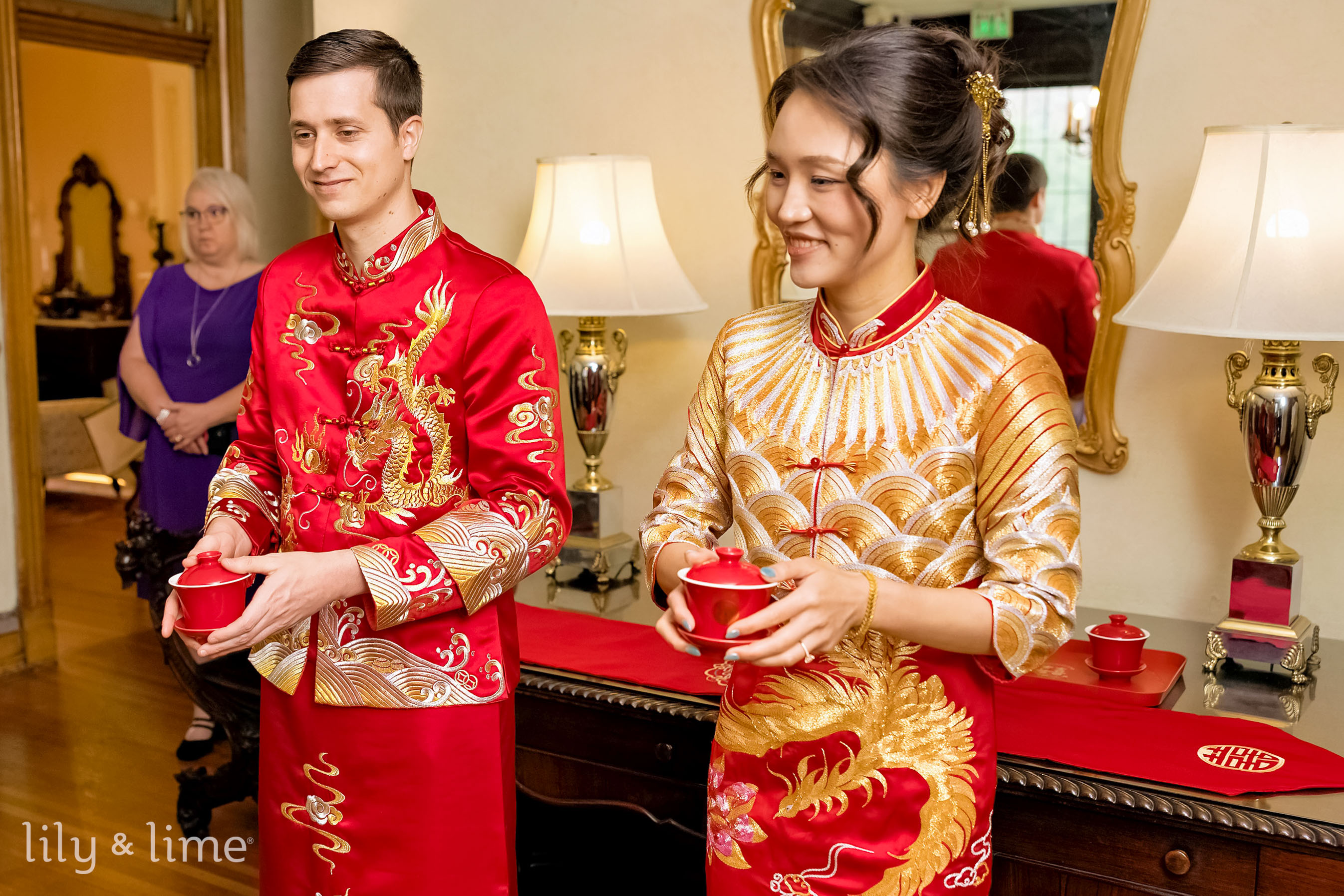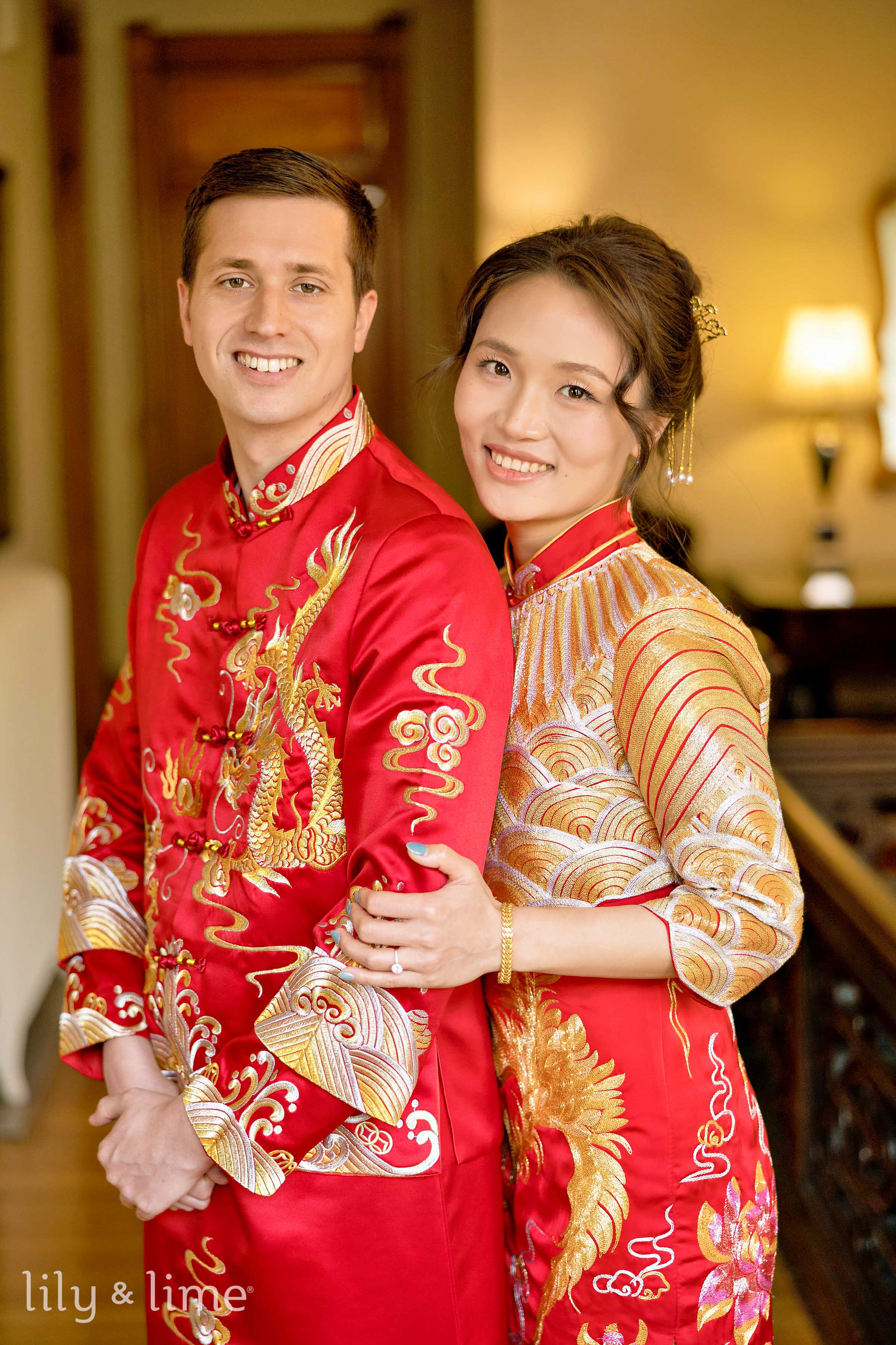 The day’s events began with a traditional Chinese tea wedding ceremony, a heartfelt tribute to Siqi and Sam’s cultural heritage. Dressed in breathtaking traditional Chinese attire, the couple radiated sophistication and grace. Siqi’s red and gold embroidered dress symbolized luck and happiness, while Sam wore a matching outfit adorned with intricate details. This intimate ceremony was a deeply moving affair, with the couple honoring their loved ones through the timeless and symbolic tea ritual.