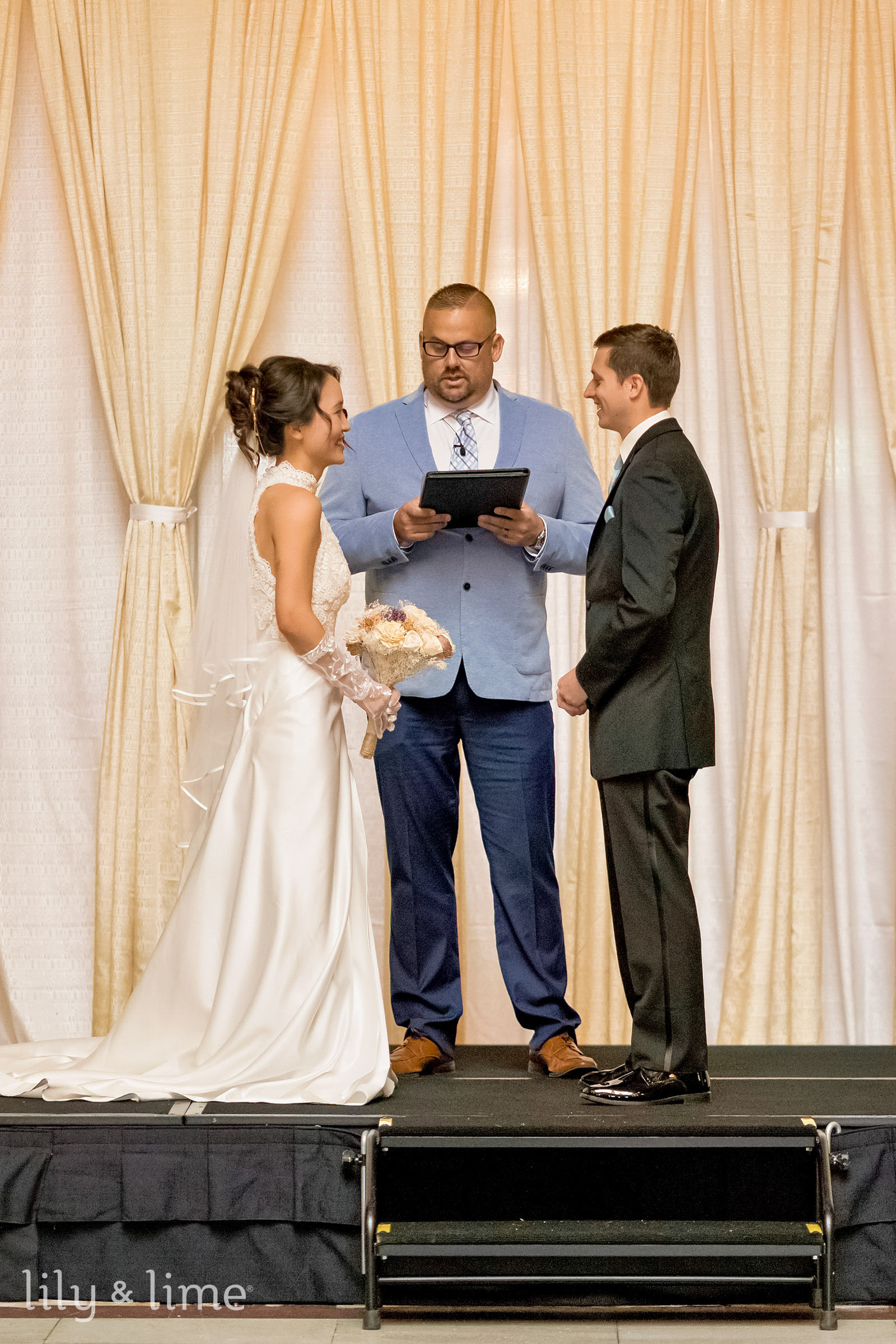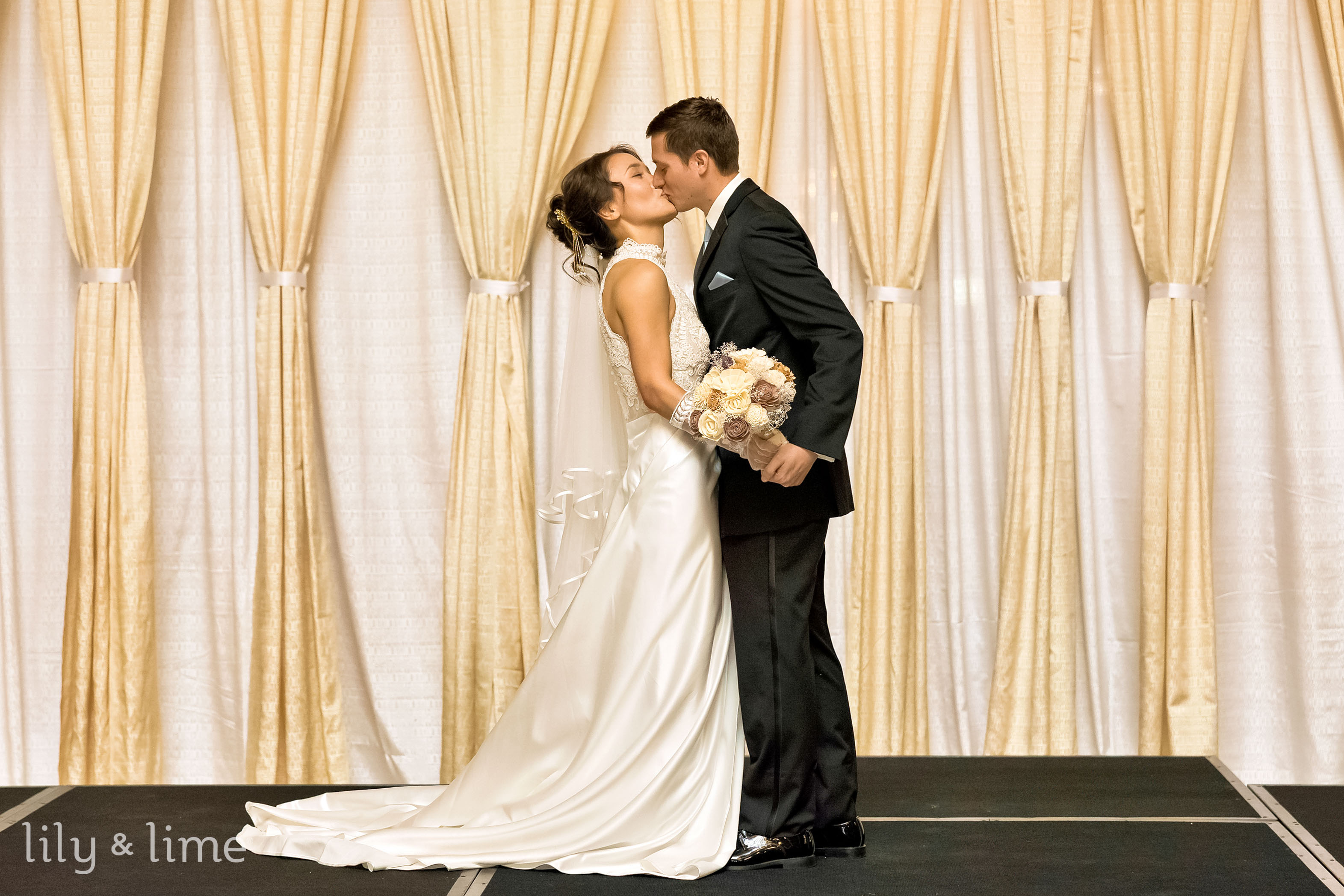 The formal ceremony took place in a ballroom venue adorned with exquisite drapery and shimmering crystal chandeliers. The setting was enchanting and provided a stunning ambiance for this emotional event. Family and friends gathered in an intimate circle of love, witnessing heartfelt vows exchanged amidst the grandeur of the beautifully styled venue. The unique details of the couple’s Indianapolis wedding photography shone through here, as every smile, touch, and tear was expertly captured for eternity.