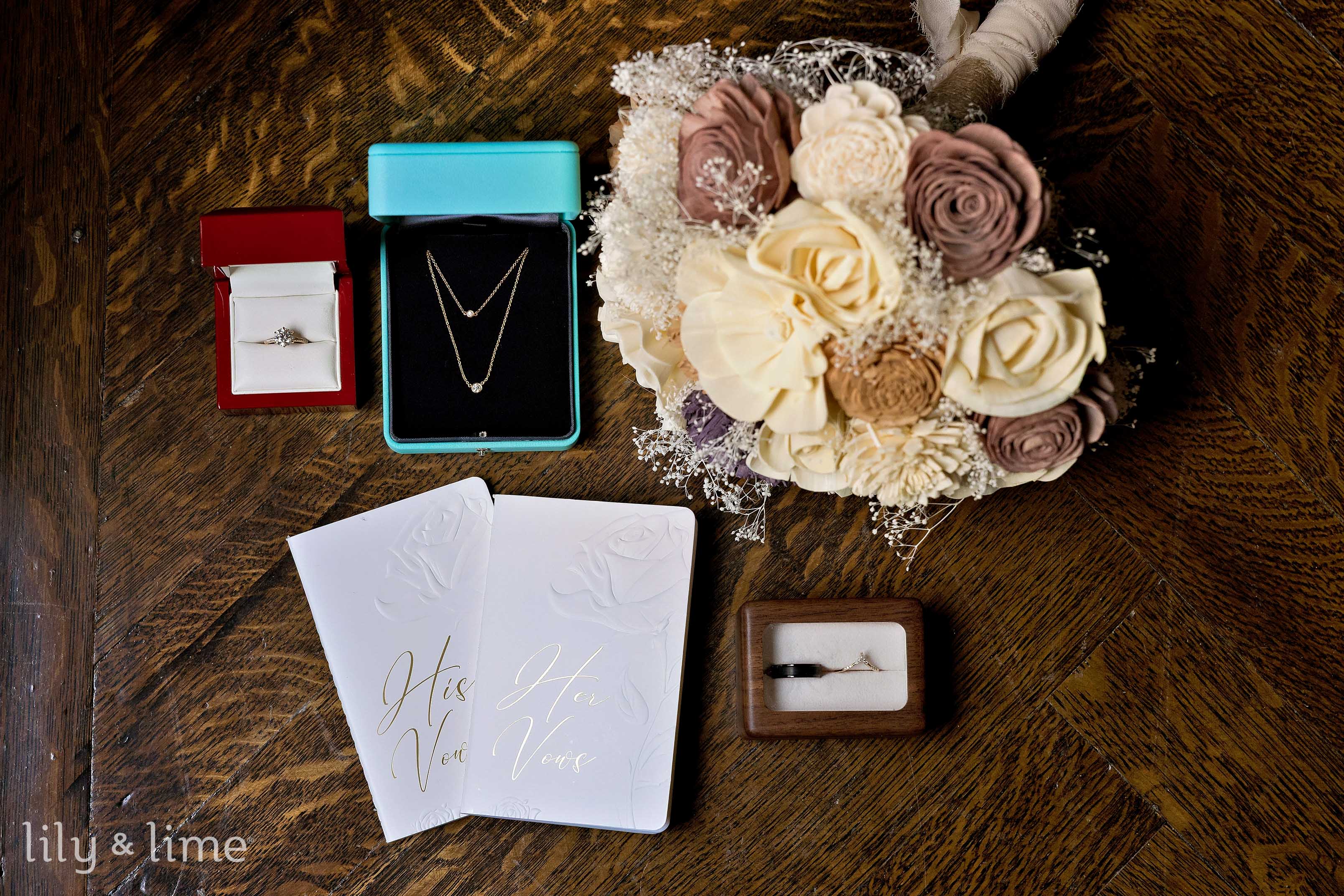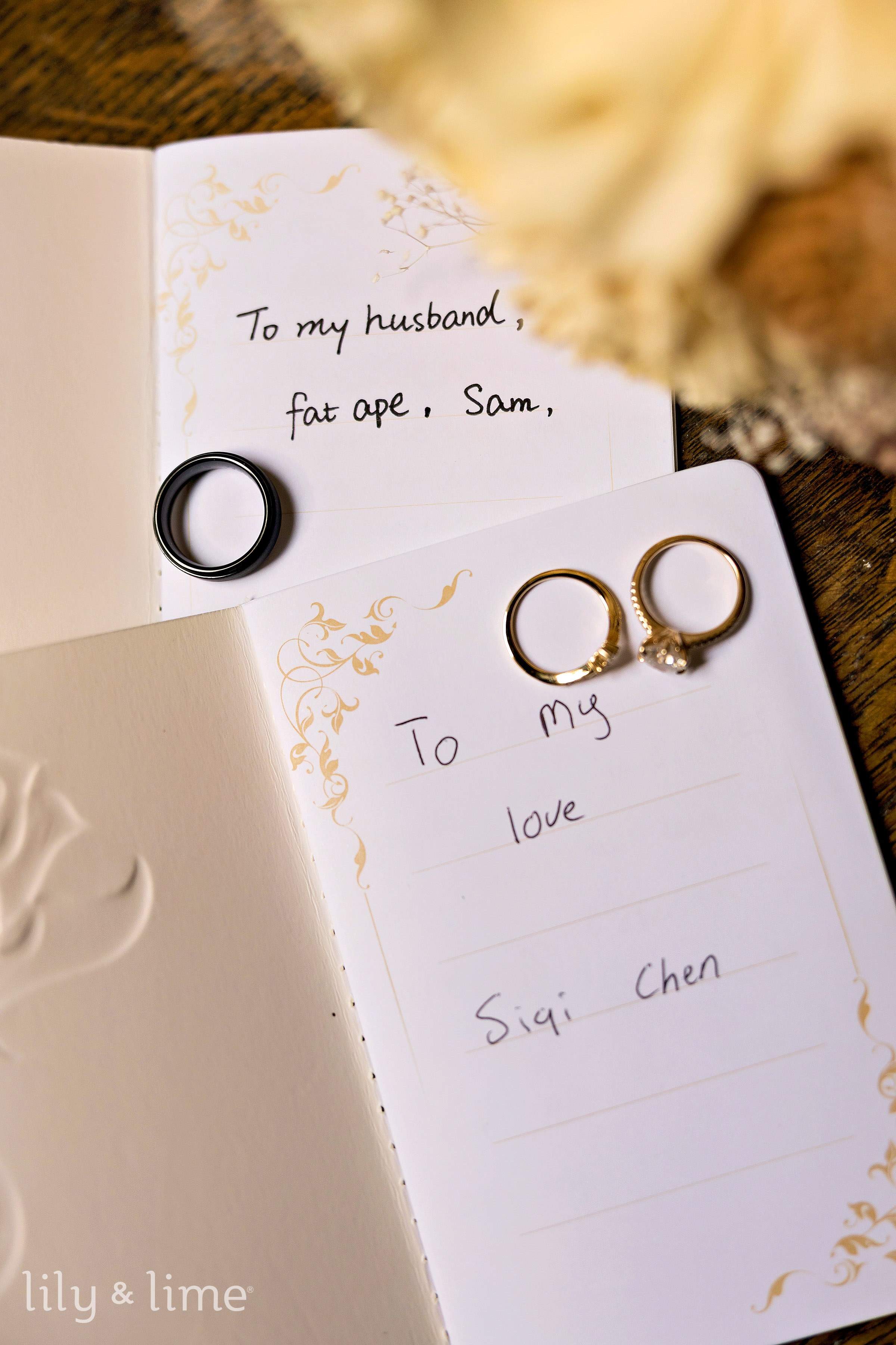 Siqi and Sam’s wedding day in Indianapolis was a celebration infused with love, elegance, and personal touches that made it truly memorable. The day began with the couple getting ready in their respective suites, surrounded by an atmosphere of excitement and anticipation. The early hours were marked by the capture of exquisite detail shots, showcasing their Tiffany and Co. wedding rings, his and her vow books, sparkling bridal jewelry, and the bride’s wedding dress displayed perfectly for bridal portrait photos. These moments set the tone for the day, highlighting the attention to detail that was woven into every aspect of this beautiful event and reflecting the expertise of wedding photographers in Indianapolis.