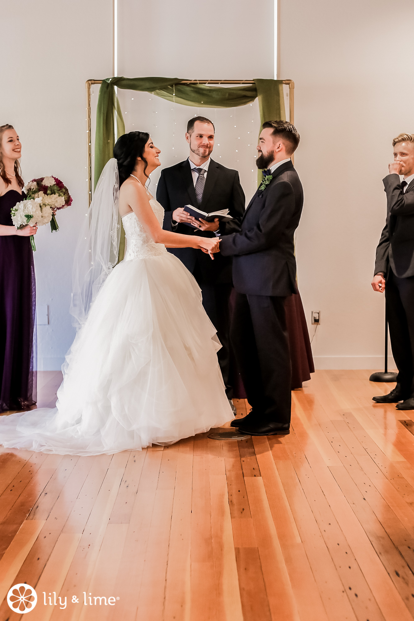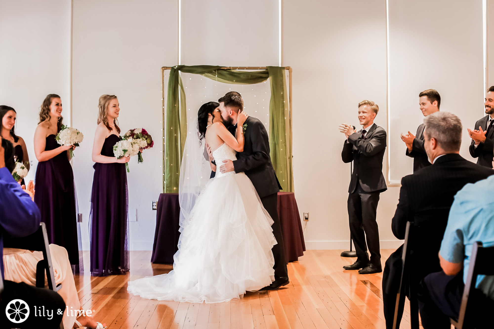 A simple, modern ceremony set up was the perfect spot to exchange vows. The same space later transformed into the reception location for the couple.