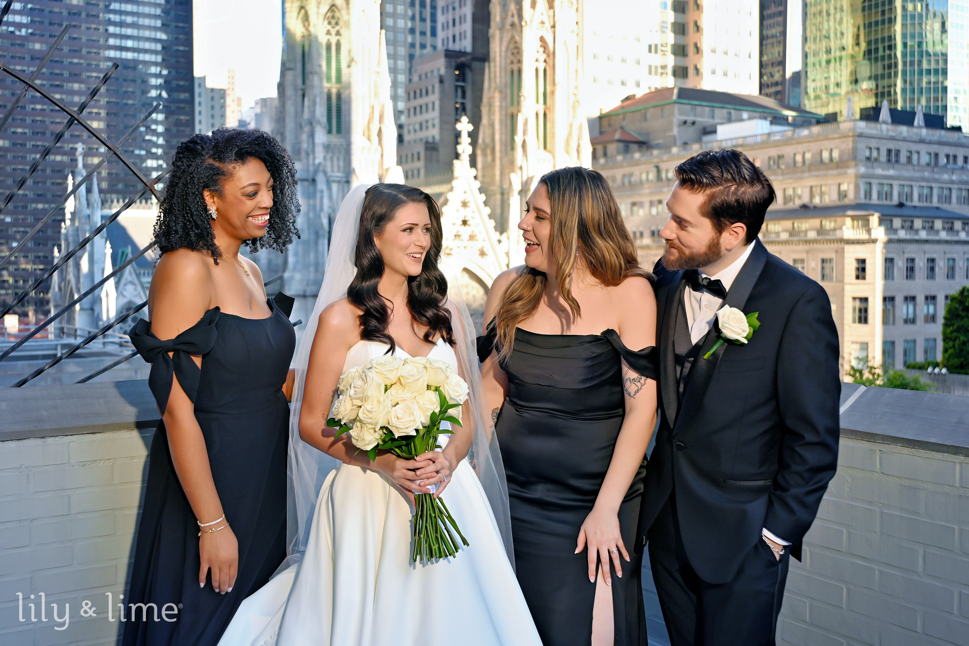 After the ceremony, Stephanie and Alex took time for group portraits and family photos. The groomsmen and bridesmaids posed for stunning portraits around the venue, their attire and the decor blending seamlessly to create picture-perfect moments. The couple’s portraits were a highlight of the day, with New York’s iconic architecture serving as a breathtaking backdrop. From the grandeur of the city skyline to the intimate corners of the venue, every shot was a testament to their love and the beauty of the day.