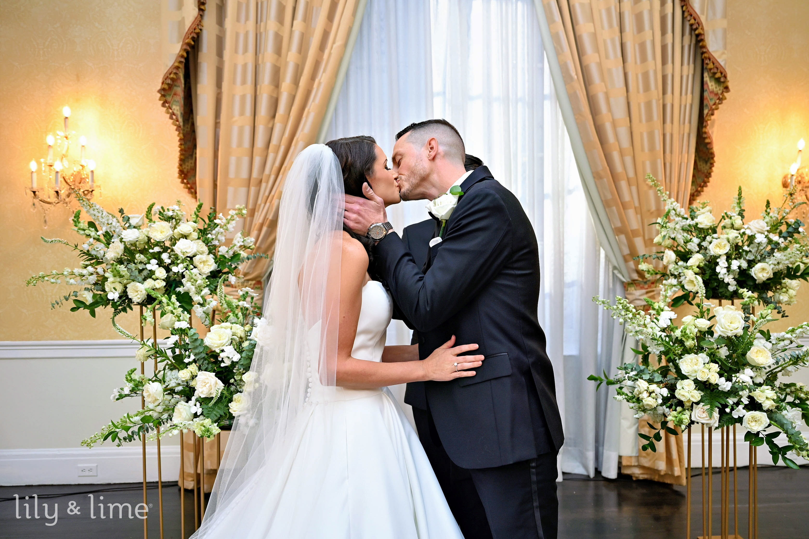 The ceremony took place in a stunning indoor venue adorned with vintage wedding details. Crystal chandeliers sparkled overhead, casting a warm glow on the lush floral installations that framed the altar. The decor was a harmonious blend of timeless elegance and modern sophistication. As Stephanie walked down the aisle, emotions ran high, and the ceremony photographs captured every tear, smile, and heartfelt vow exchanged between the couple.