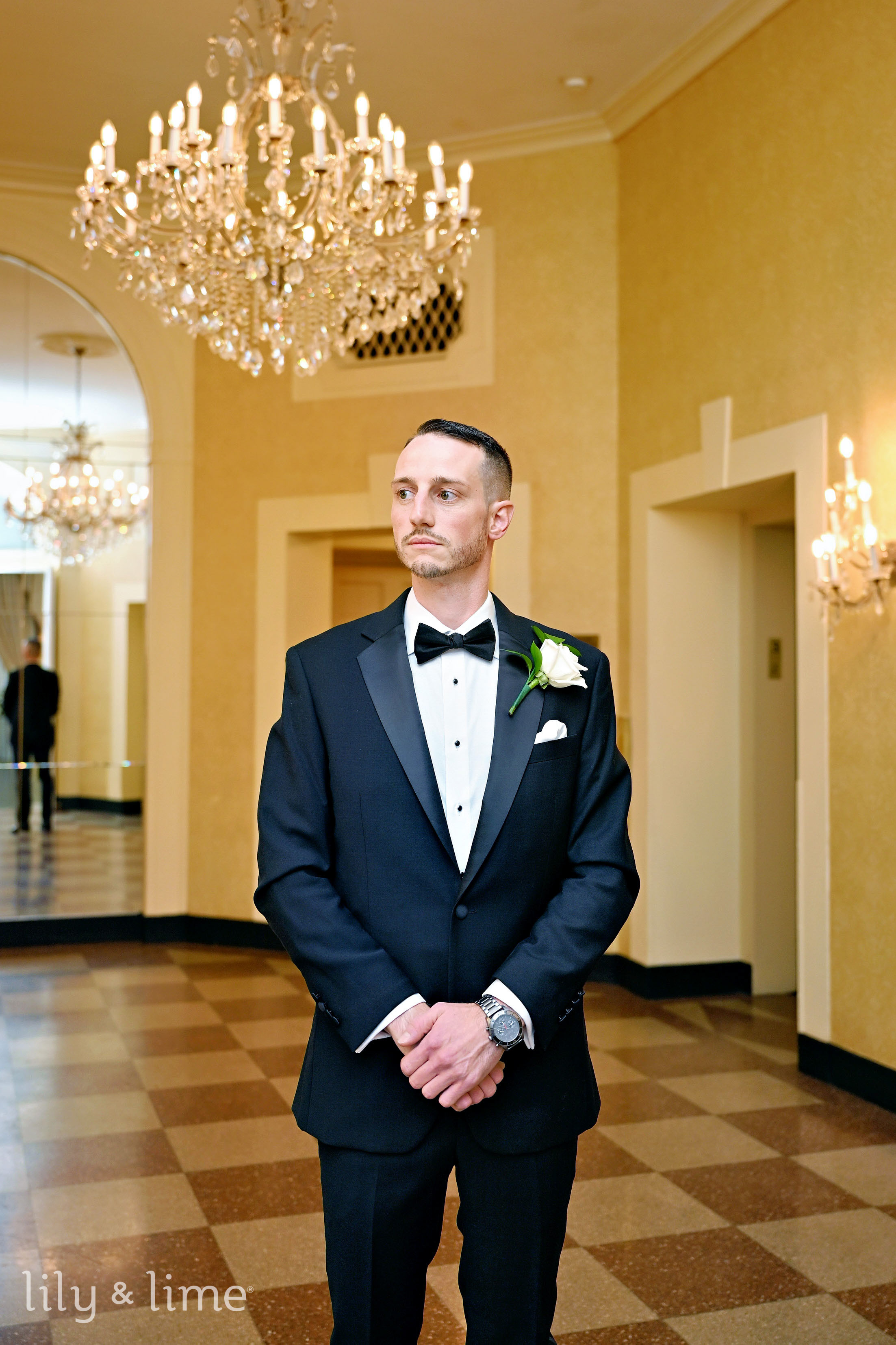 In her bridal suite, Stephanie and her bridesmaids shared laughter and joy as they prepared for the big day. Dressed in beautiful getting-ready robes, they toasted to the bride, creating memories that would last a lifetime. The bridesmaid portraits were a perfect blend of fun and elegance, showcasing their bond. Meanwhile, Alex and his groomsmen enjoyed their own moments of camaraderie in their suite. The groomsmen portraits captured the lighthearted energy and excitement of the day, with the men sharing laughs and toasts before donning their stylish black wedding suits.