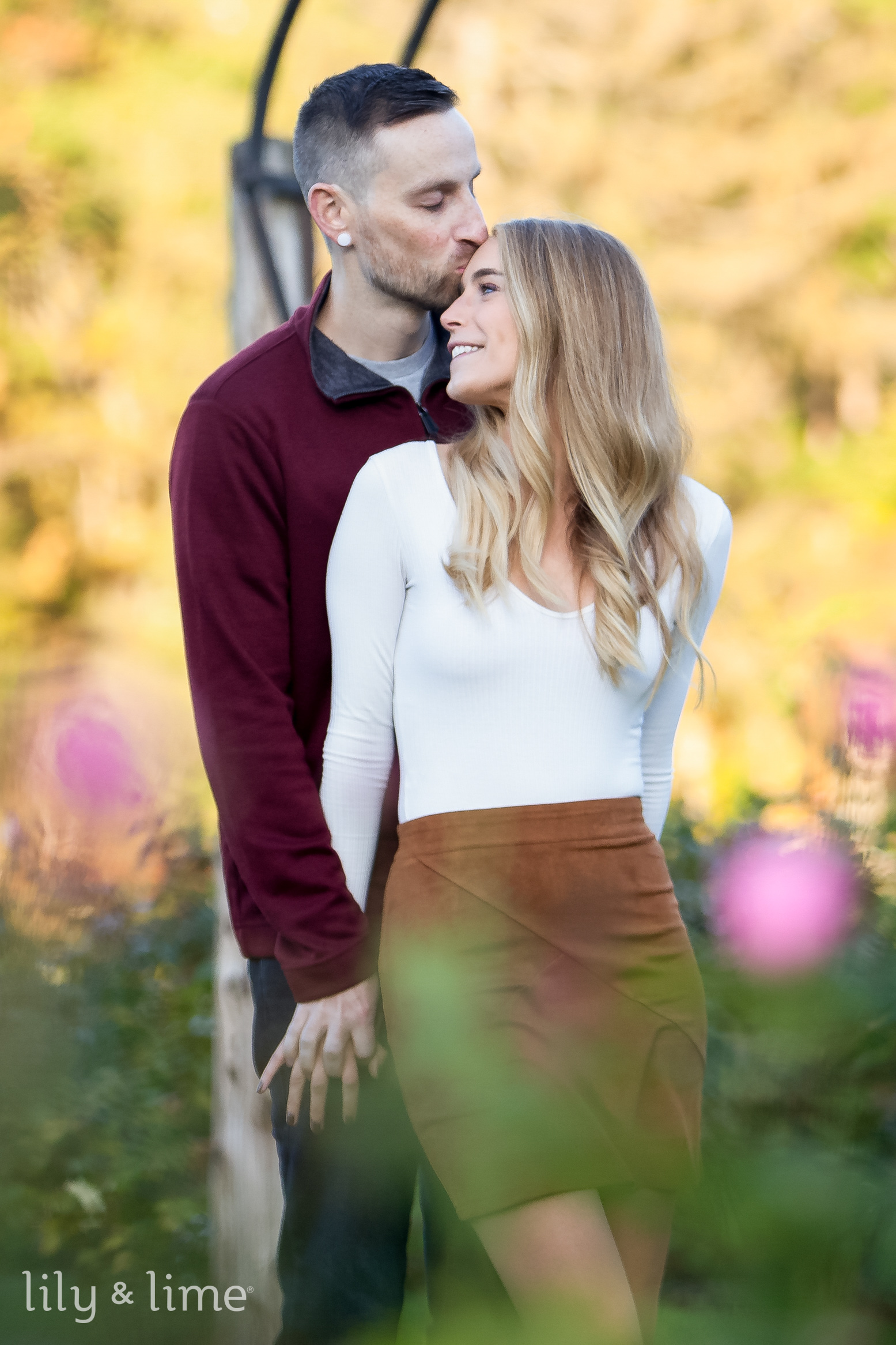 We cannot talk enough about beautiful love stories. At Lily and Lime, we are big fans of love and love stories. Considering that we spend all of our time either talking about wedding inspiration that we can use or covering stories of the amazing people we meet and telling their even more amazing stories, it is only natural for us to have a soft corner for love stories. We love watching two souls coming together. We love beautiful weddings, and we love engagement session photos too. What we love the most, however, are these engagement photo sessions! Our photographers meet beautiful couples, and we love that we can be a part of their love stories from the moment they take their “first step” after the engagement as their engagement photo session, and then they tie the knot with their soulmates. It warms our hearts to know that we are a part of some of the best love stories. The love story of Lindsay and Timothy is nothing less than beautiful and photo-worthy smiles. Their outdoor Hartford engagement photo session was beautiful, charming, and delicately romantic. Surrounded by the beauty of the season, their fall engagement photo shoot is sprinkled with warm tones and undeniable smiles! It was easy to see that these two were meant for each other. Looking at their engagement photos we knew these two were head over heels for each other, and could not wait for their wedding day!
