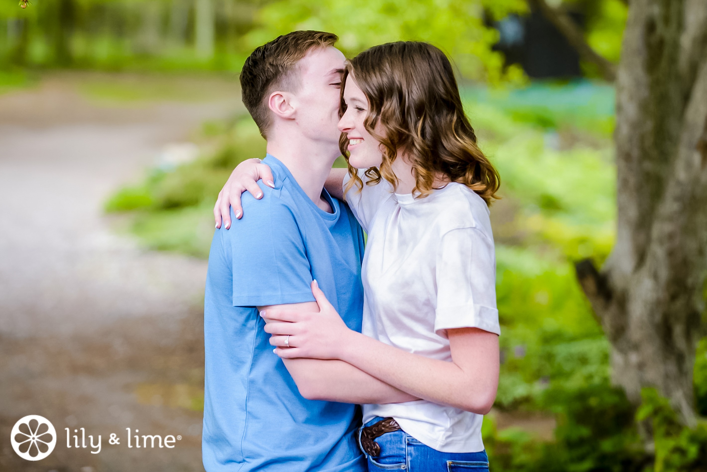 The engagement photography session at Lyndale Peace Garden of this gorgeous couple started early when the light sunbeams fell on them, and the sun-kissed couple explored the gorgeous grounds filled with camera-worthy settings. Without missing a single photo opportunity, Megan and Jack carefully brought in the intricate details of this photo spot. The exclusive couple portraits of Megan against the cherry blossom blooms became one of the most loved highlights of this summer engagement photoshoot. The detailed shots that ranged from stealing a kiss under the twining branches of the cherry blossoms to the ones where they laid down against each other in the vibrant flower beds of this peaceful garden setting, the engagement album was getting filled with memorable keepsakes.