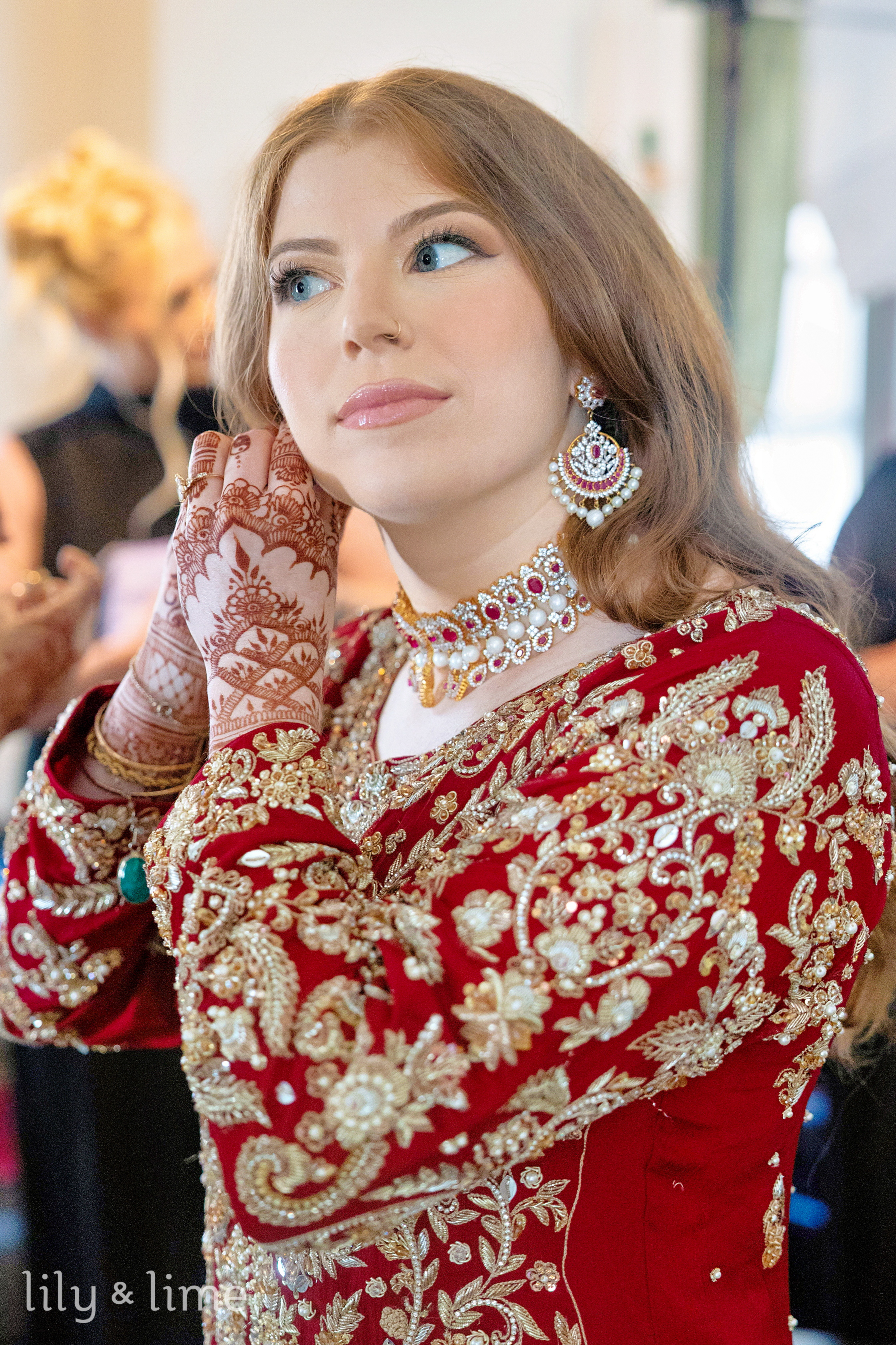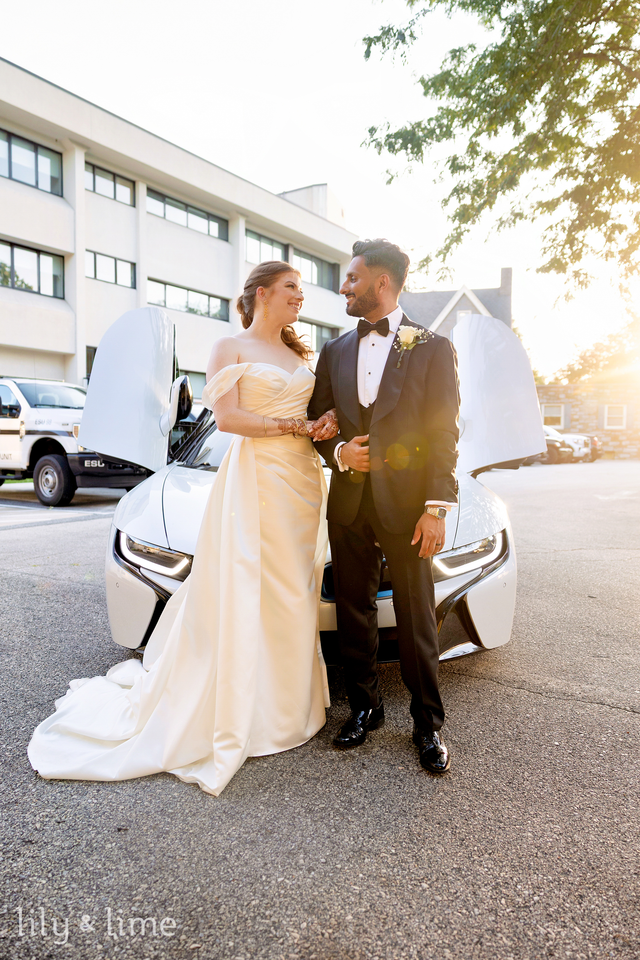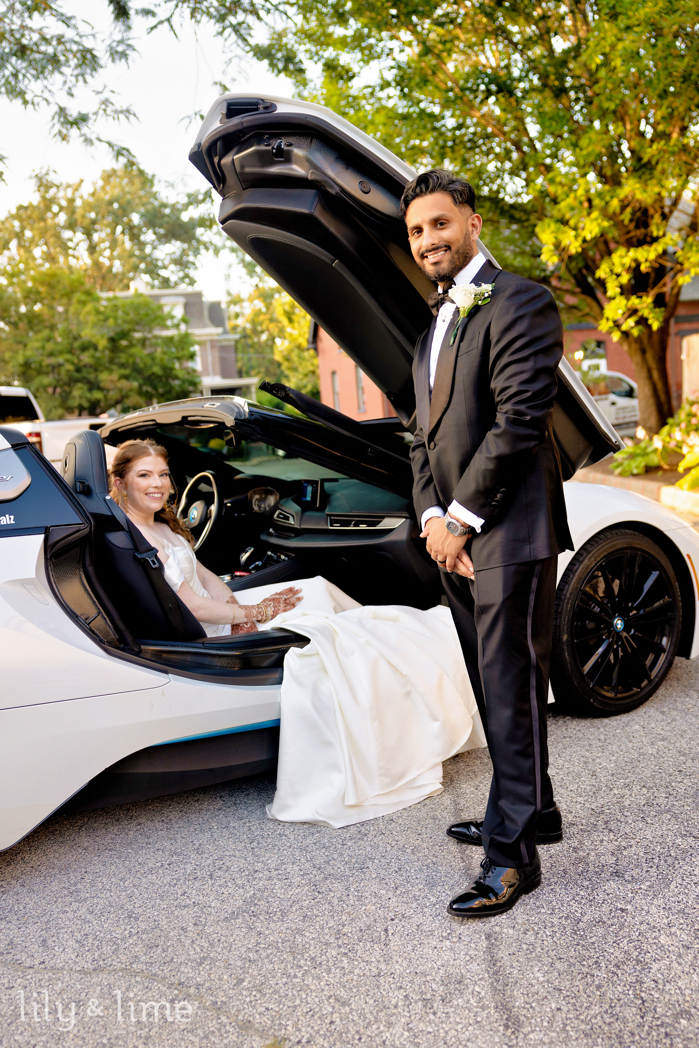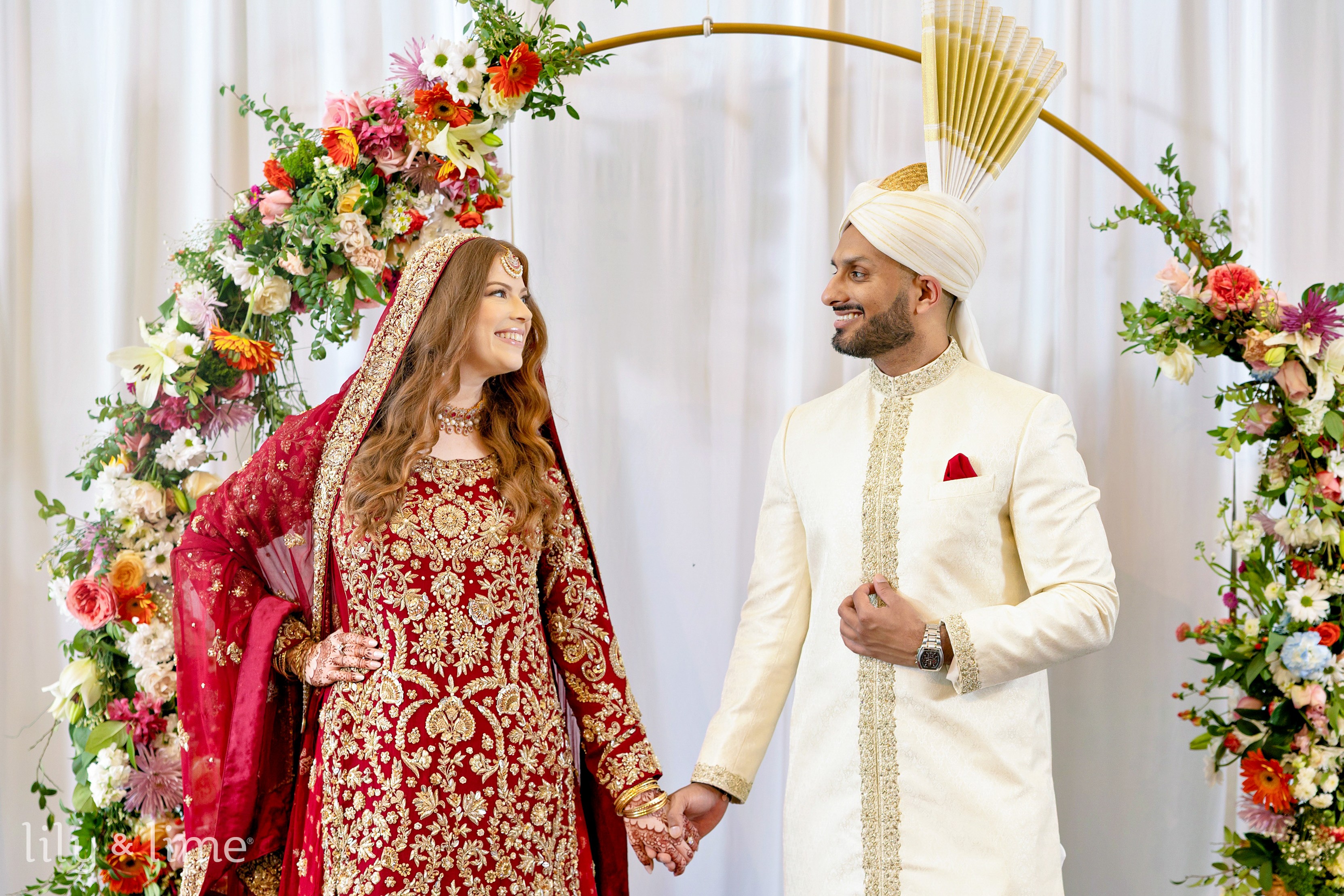 The wedding of Tierney and Bilal was a stunning blend of culture, elegance, and heartfelt emotion, set against the vibrant backdrop of Philadelphia. The day began with a sense of joyful anticipation, beautifully captured through getting-ready photos in their respective suites. The wedding details were nothing short of breathtaking, from Tierney’s rich red Indian lehenga to the intricate patterns of her hennaed hands and her dazzling gold jewelry. Bilal’s sharp two-piece black wedding suit, paired with a crisp white shirt and sleek black bowtie, was laid out in perfect readiness, adding to the anticipation of the day.